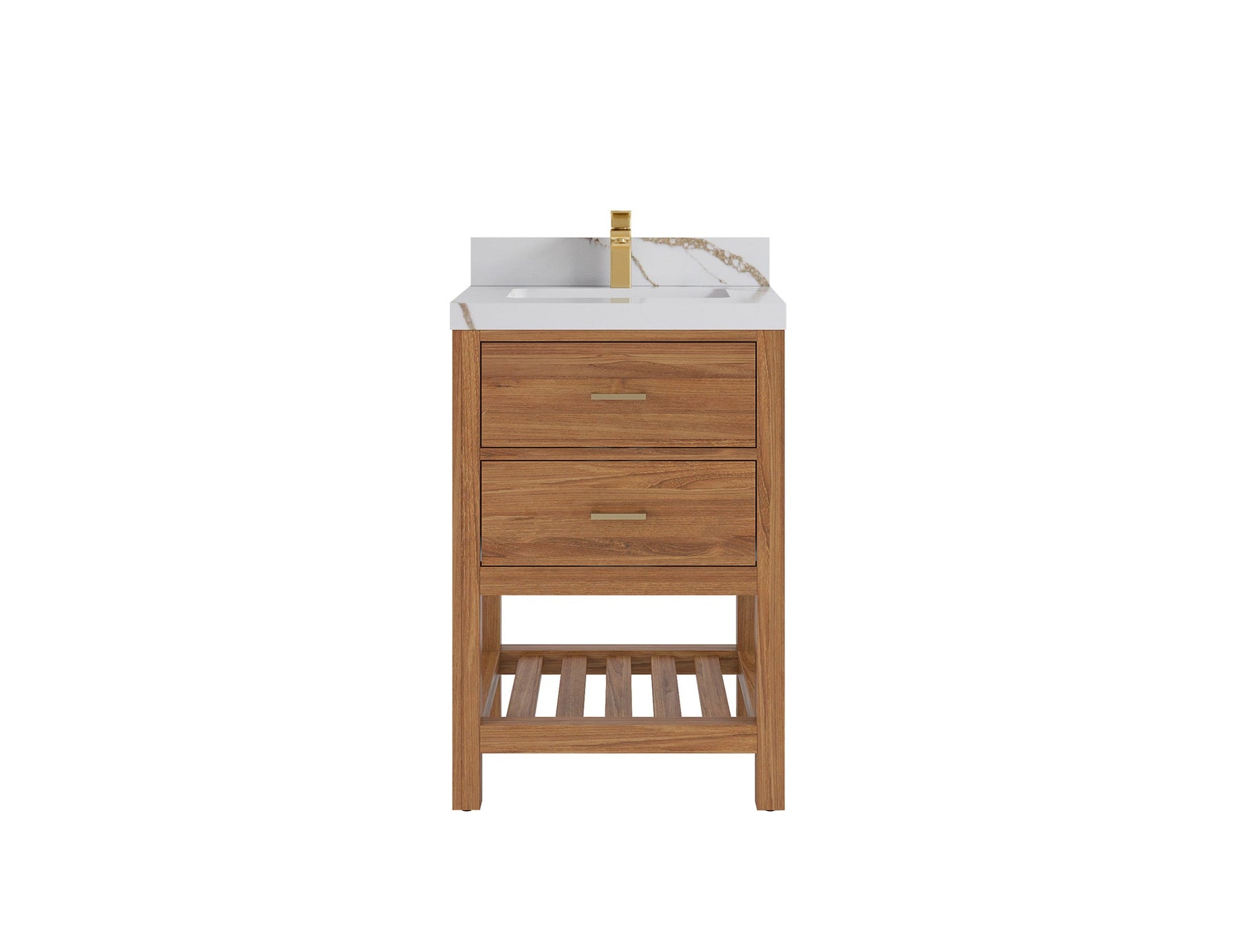 Parker Teak Wood 24 in. W x 22 in. D Single Sink Bathroom Vanity | Golden Teak