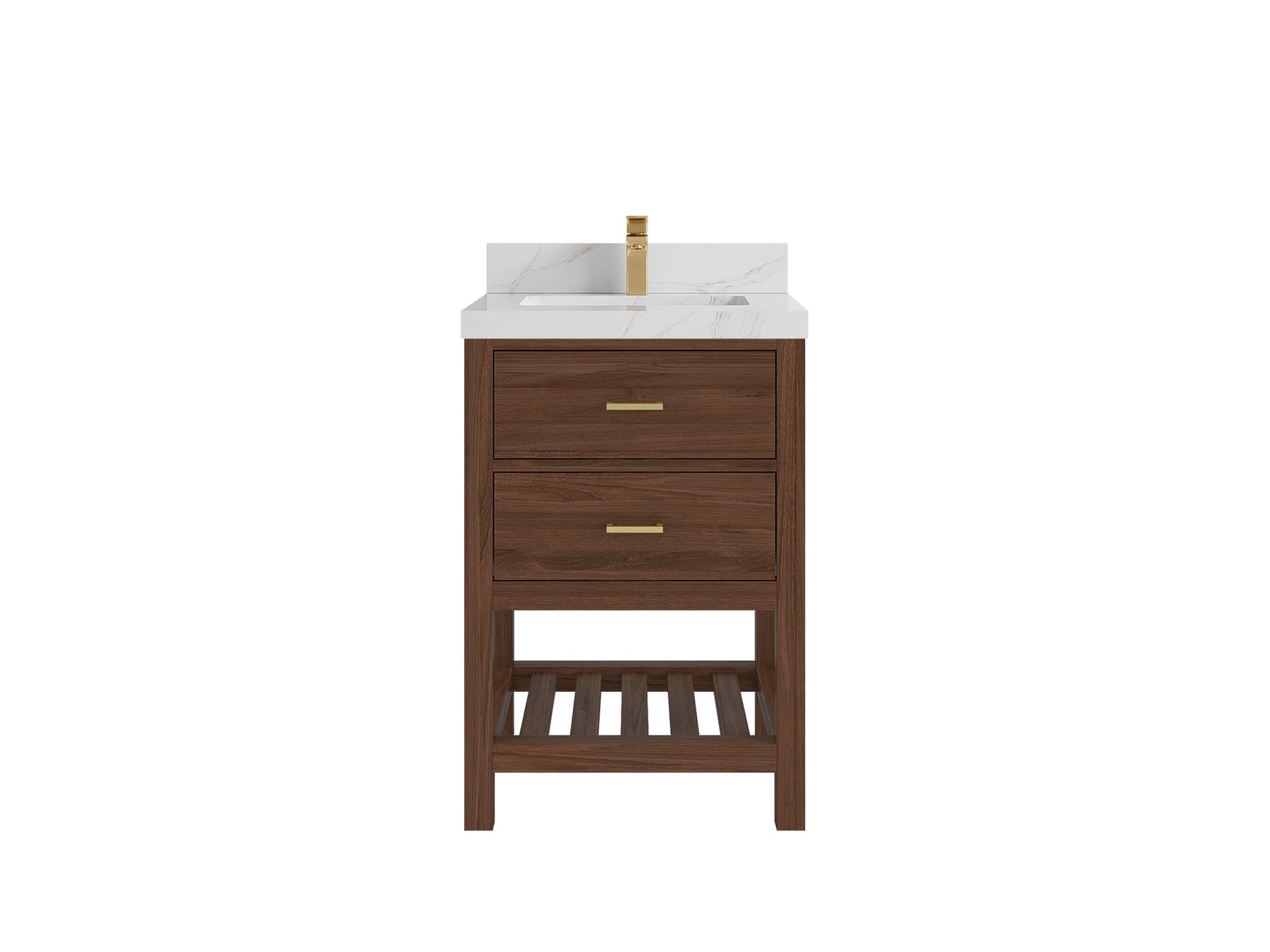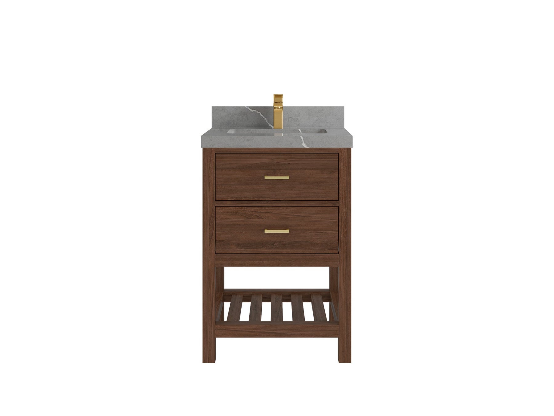 Parker Teak Wood 24 in. W x 22 in. D Single Sink Bathroom Vanity | Dark Walnut Teak