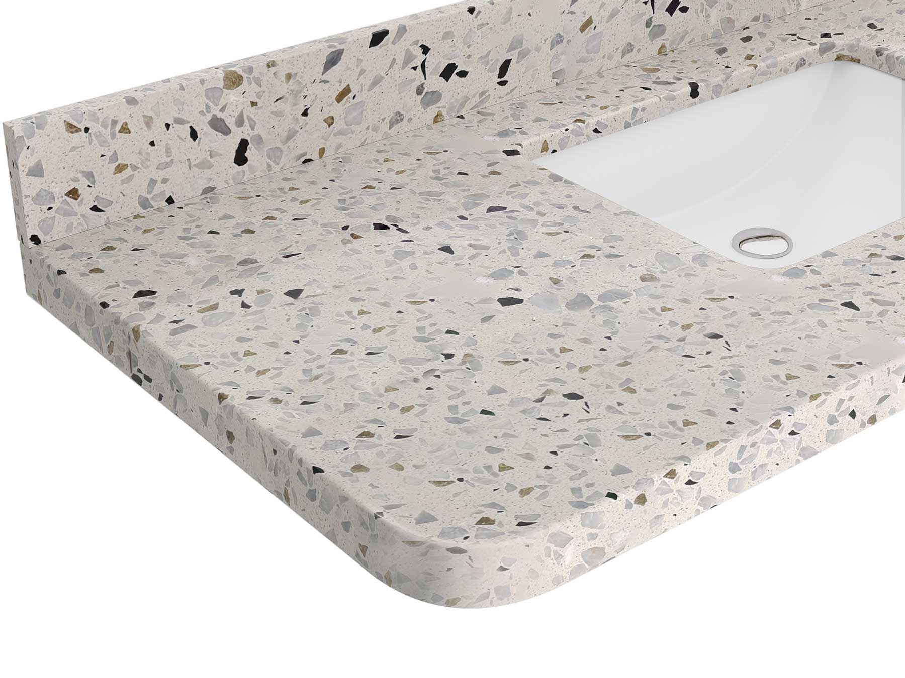 Vanity Countertops options: For Calacatta Laza Quartz, Calacatta Gold Quartz, Empira White Quartz, Pure White Quartz, Palissandro Quartz, Calacatta Nuvo Quartz, Carrara Marble, Carrara Quartz, Calacatta Sienna Quartz, Terrazzo Golden Dusk we have Rounded - Edge option.