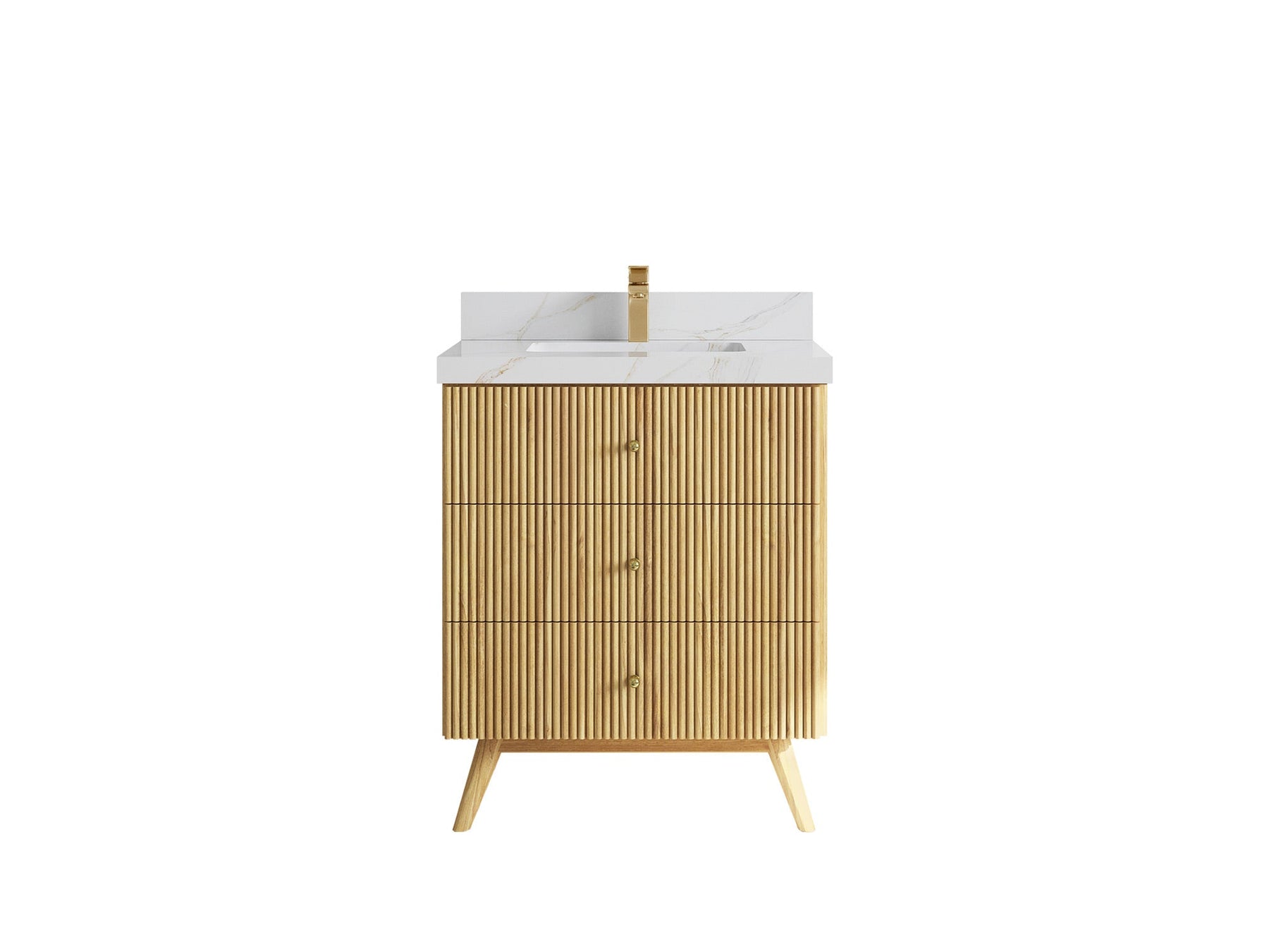 Pasadena Teak Wood 30 in. W x 22 in. D Single Sink Bathroom Vanity | Light Natural Teak