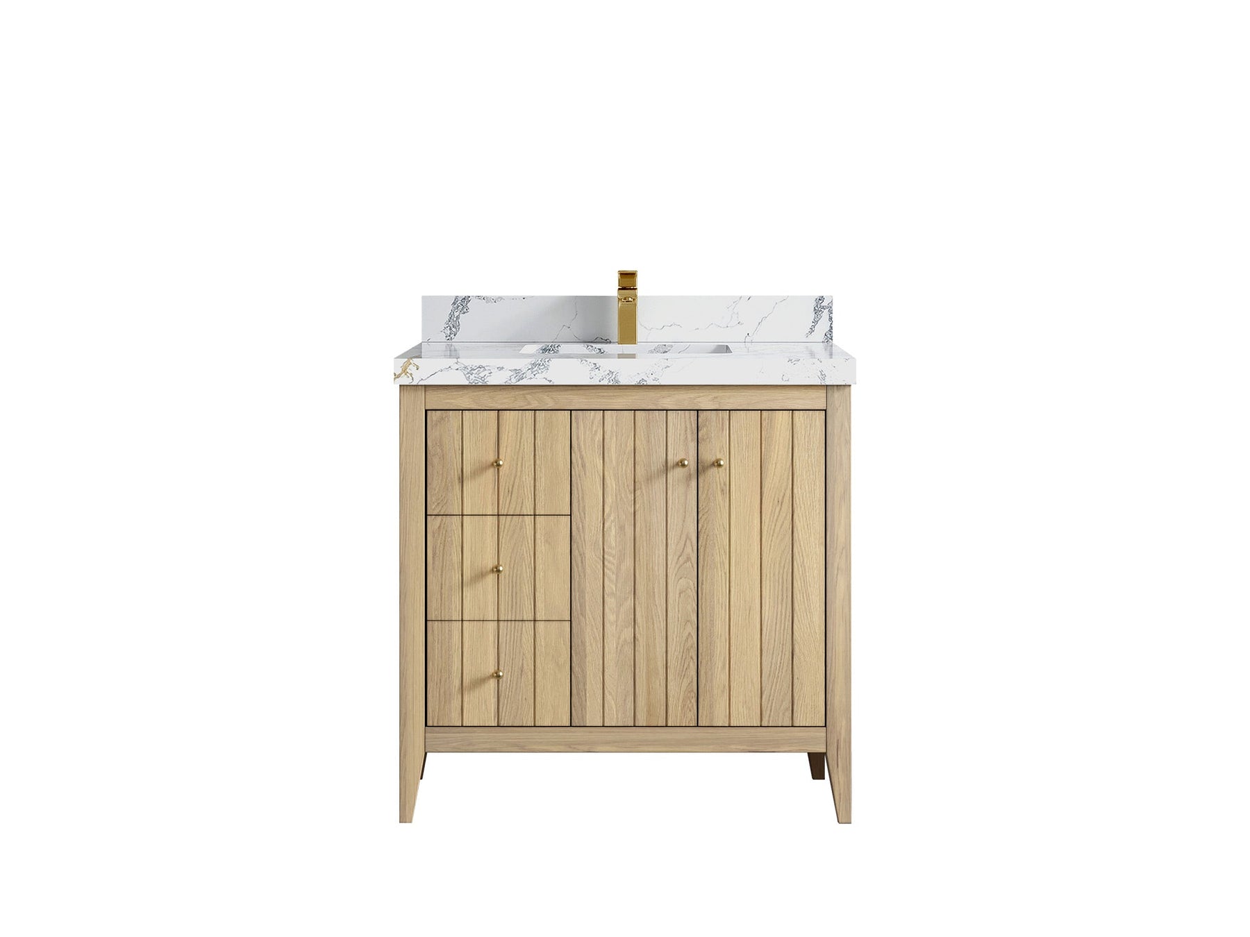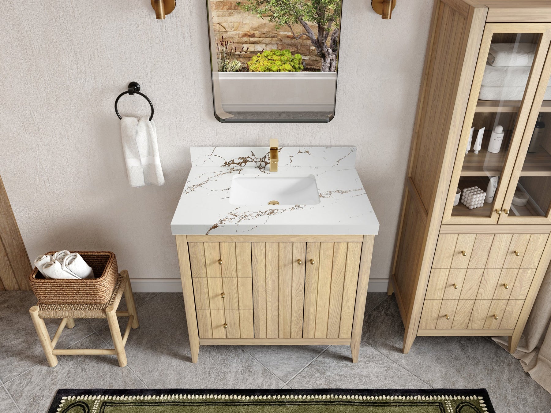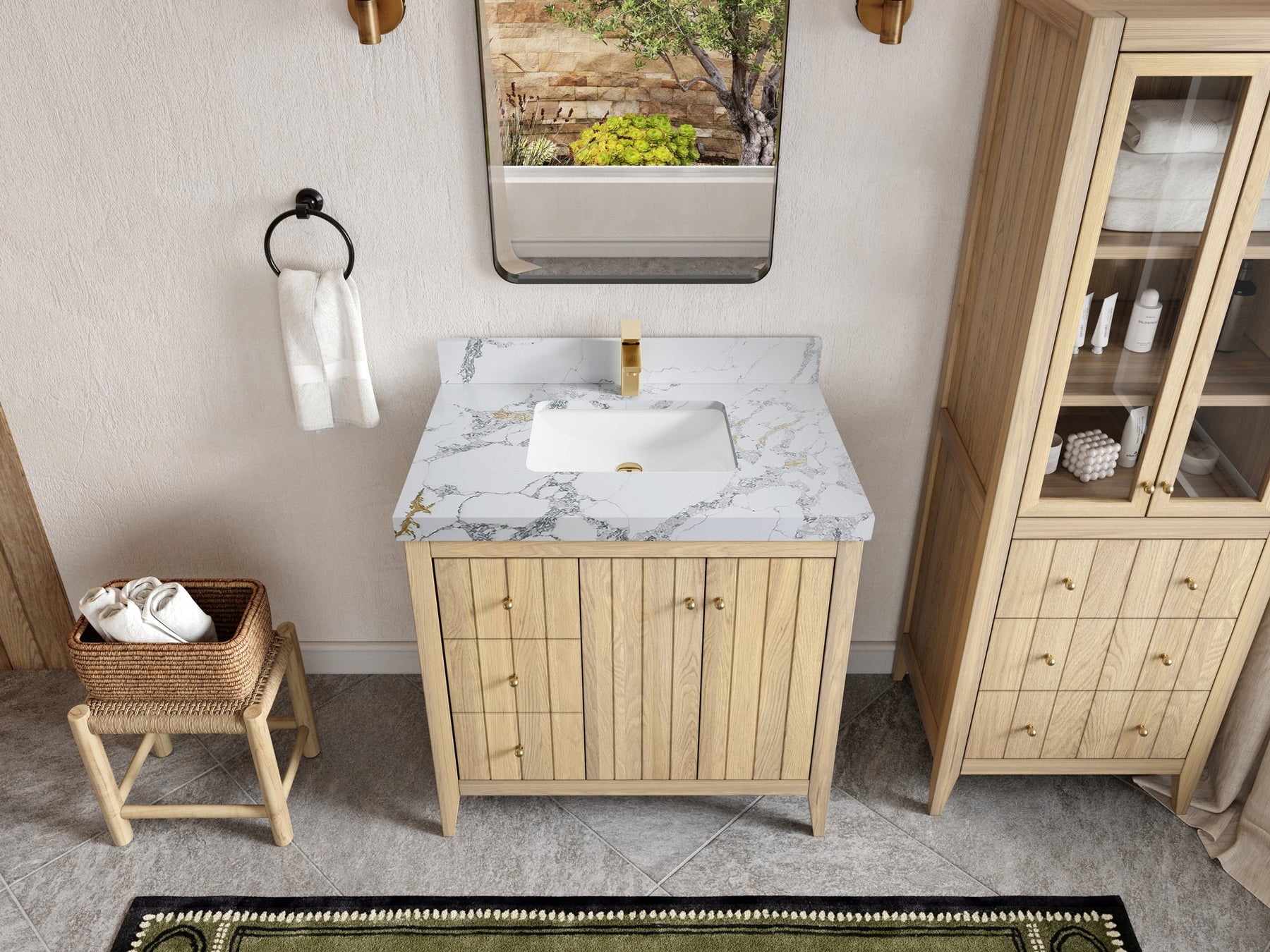 Faucet Hole(S): Comes with Single Faucet, 8 (in.) Widespread Faucet, Wall mount Faucets - Only Available for White Quartz and Carrara Quartz. (PLEASE ADD THIS CONFIGURATION UNDER COUNTERTOPS SECTION )