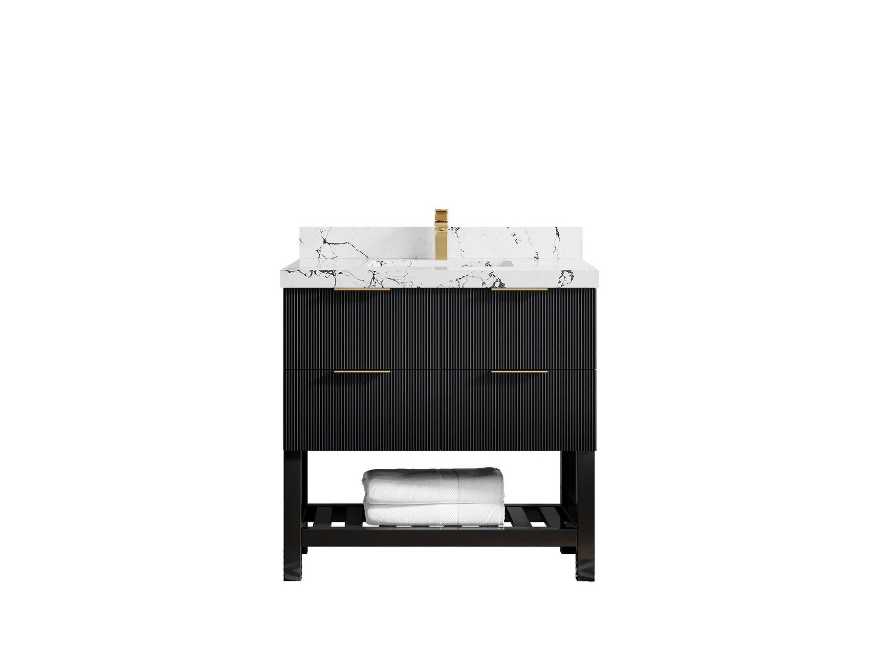 Vanity Countertops options: For Calacatta Laza Quartz, Empira White Quartz, Pure White Quartz, Palissandro Quartz, Calacatta Nuvo Quartz, Carrara Marble, Carrara Quartz, Piatra Gray Quartz, Pearl Light Gray Quartz, Calacatta Black Quartz, Calacatta Gold Quartz, Calacatta Sienna Quartz, Calacatta Poanazzo Quartz, Venatino Quartz, Viola Brown Quartz, Viola Gold Quartz, Viola Night Quartz, Viola Biagio Quartz, Berkshire Brass Quartz, Frosty Carrara Quartz, Onyx Quartz we have Straight - Mitered Edge option.