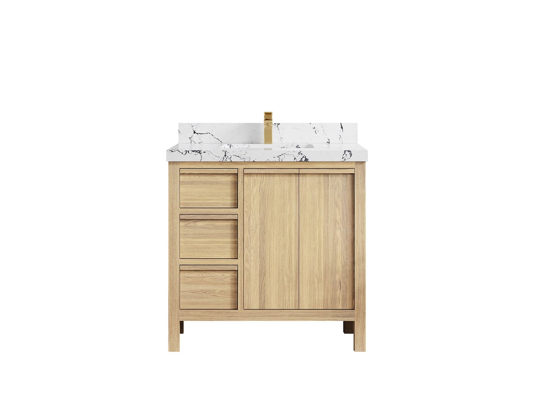 Faucet Hole(S): Comes with Single Faucet, 8 (in.) Widespread Faucet, Wall mount Faucets - Only Available for White Quartz and Carrara Quartz. (PLEASE ADD THIS CONFIGURATION UNDER COUNTERTOPS SECTION )