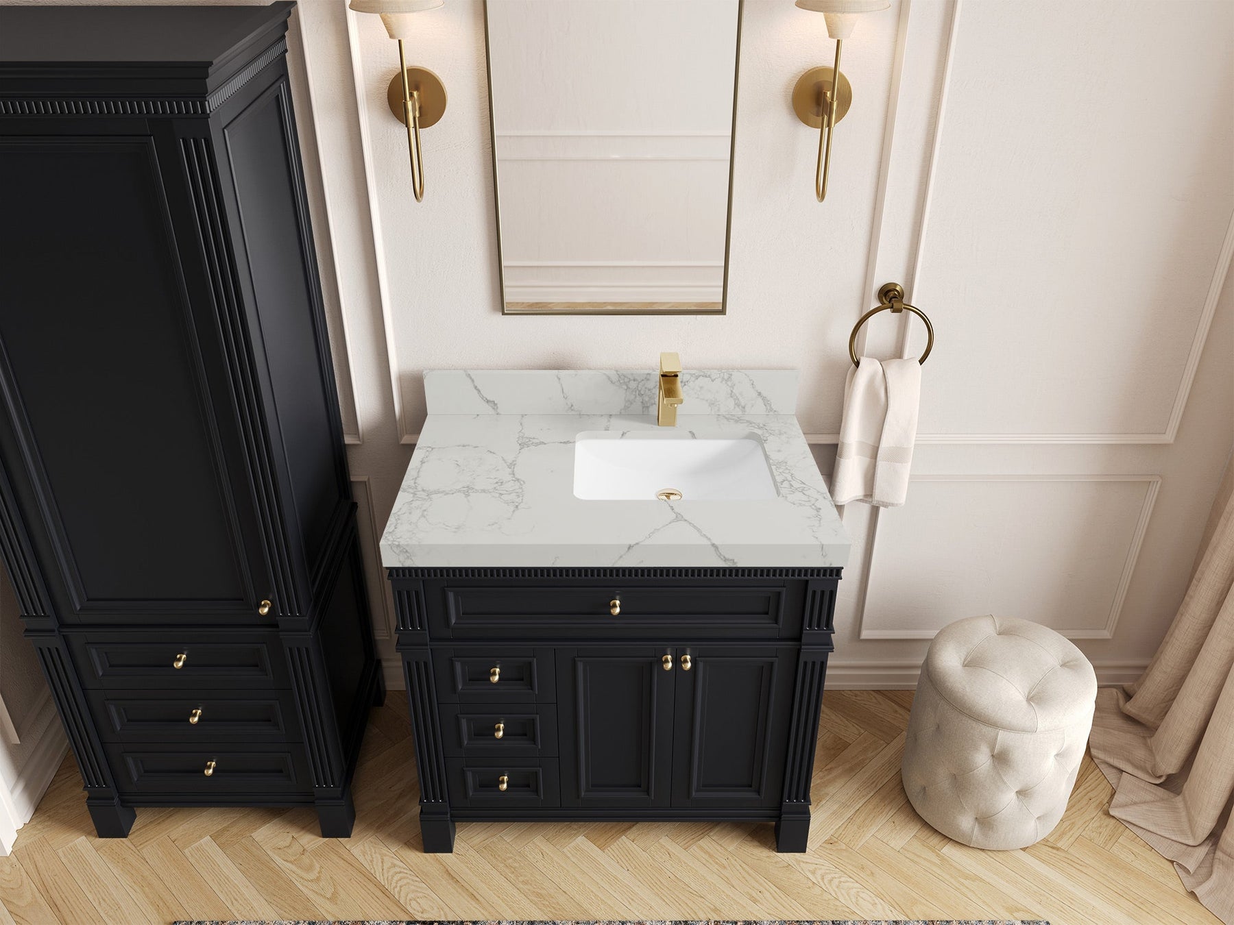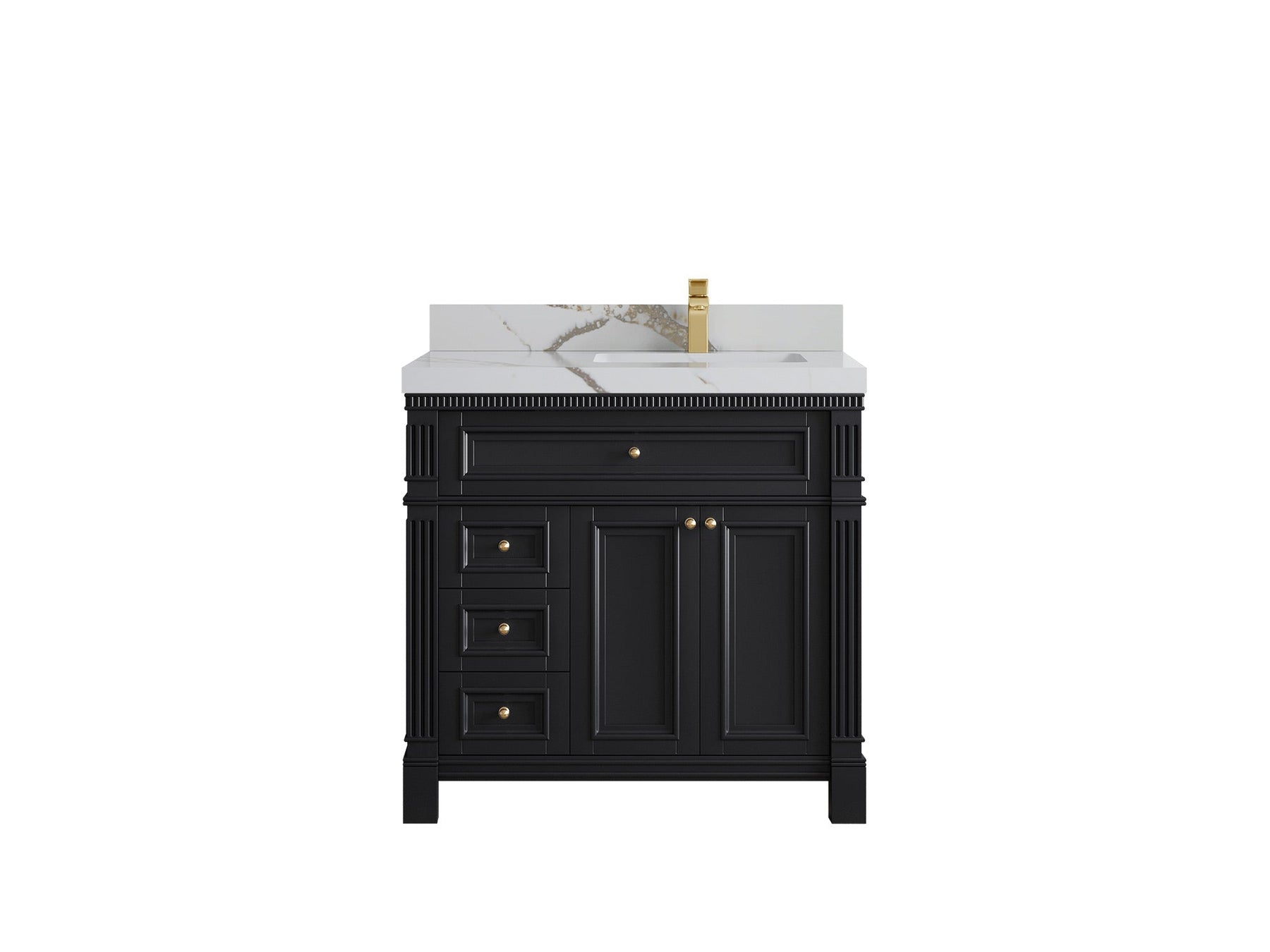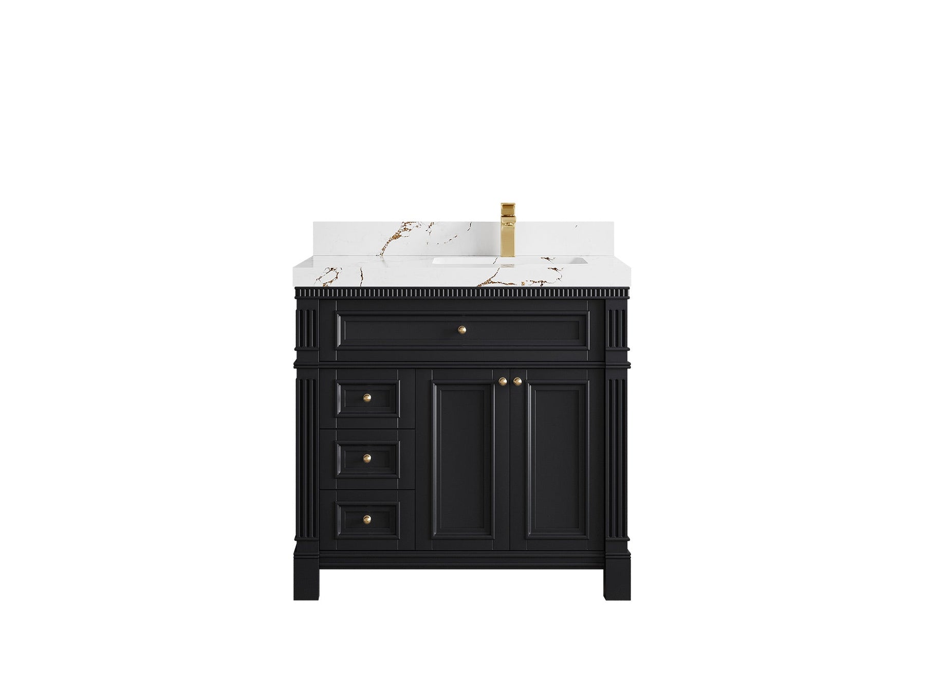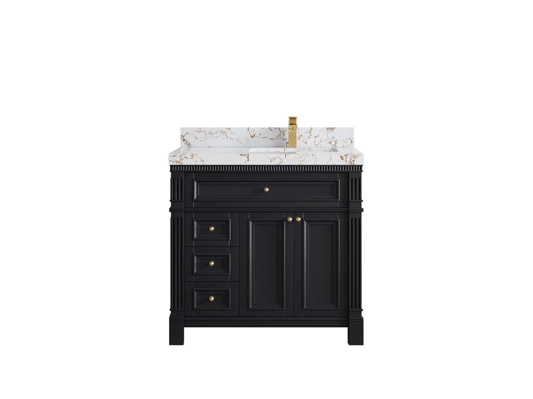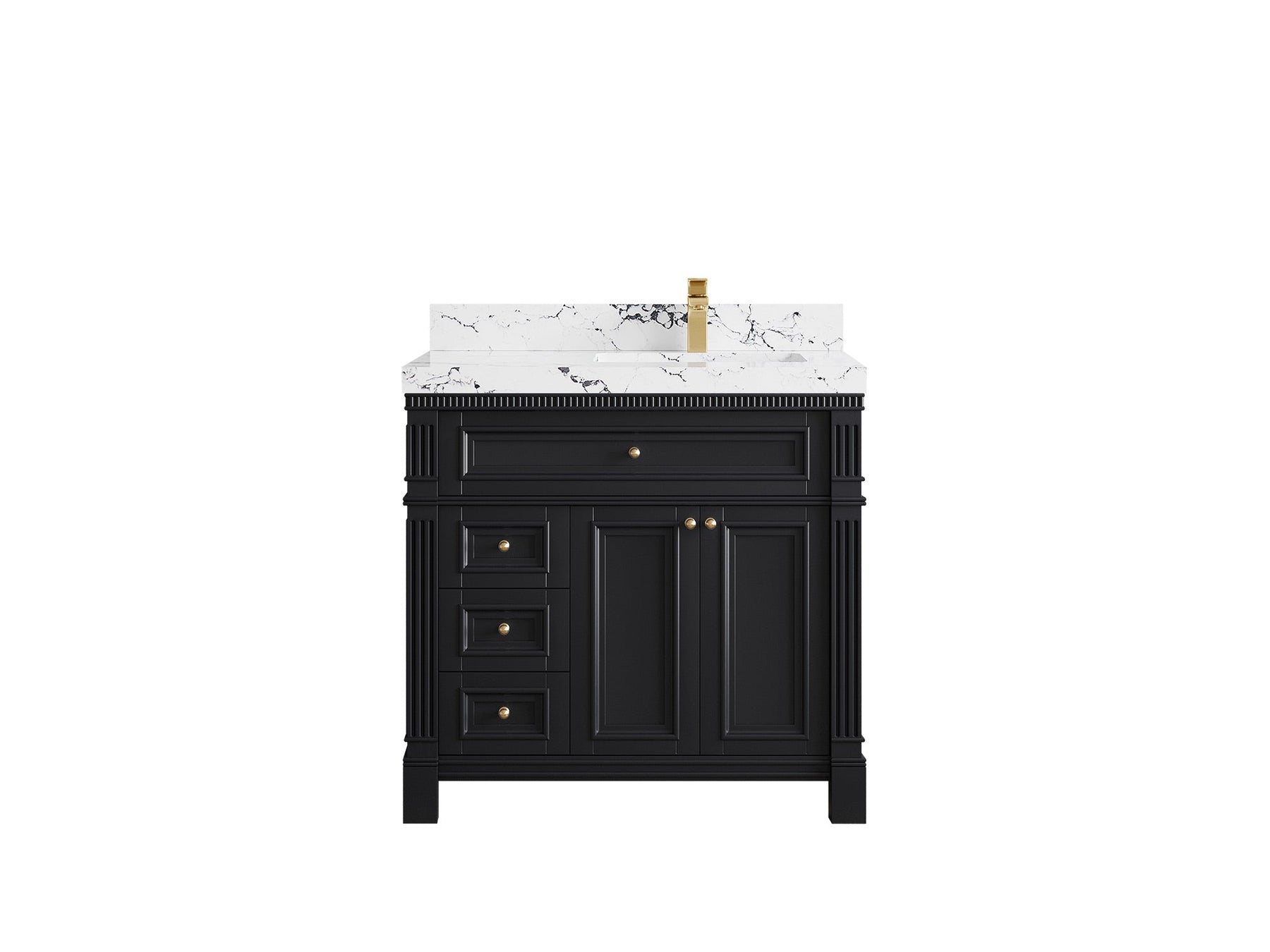 Catalina 36 in. W x 22 in. D Single Sink Bathroom Vanity in Black with 2 in Calacatta Laza Quartz Countertop
