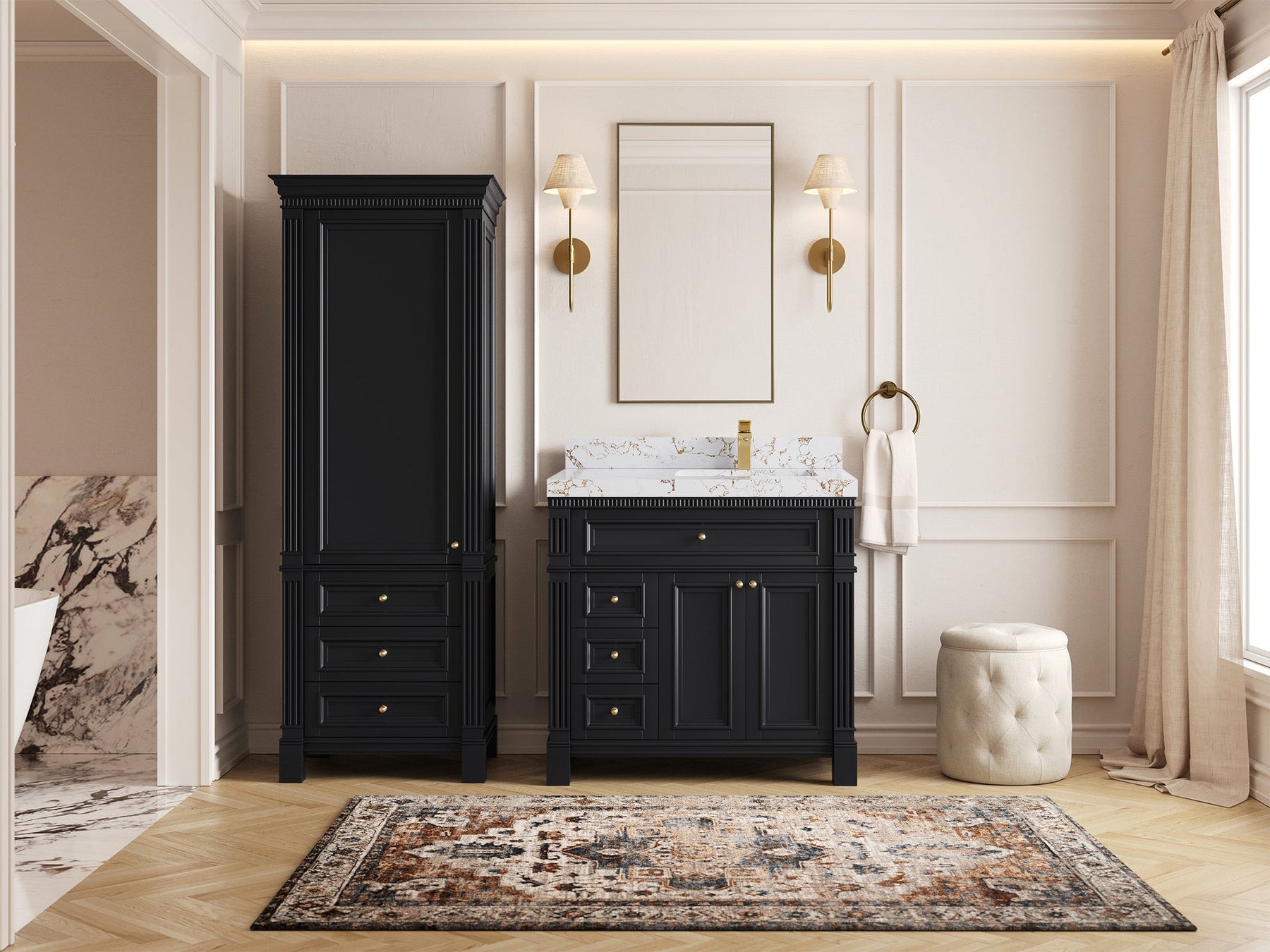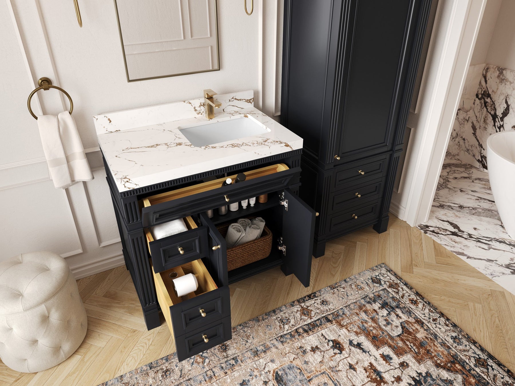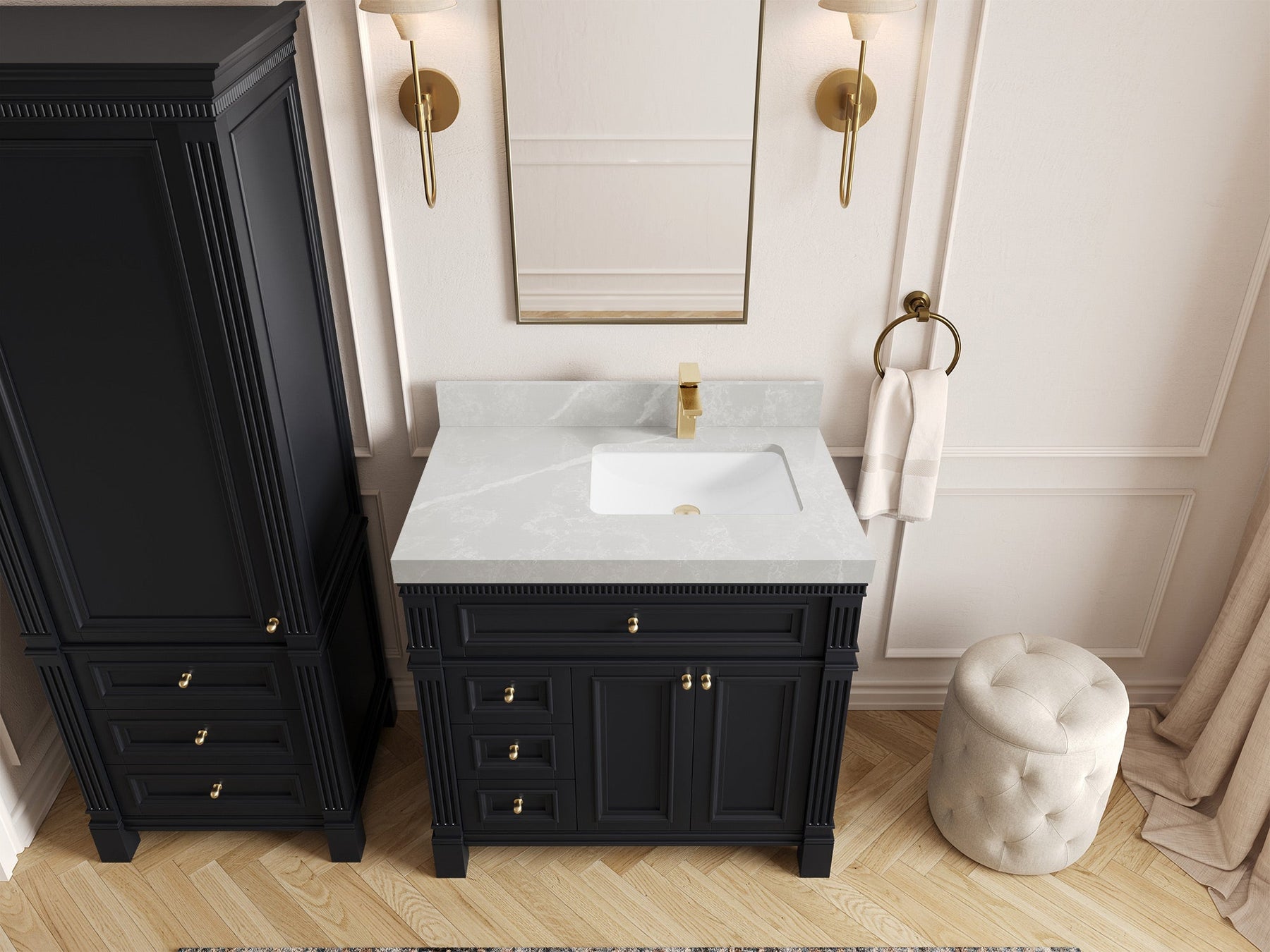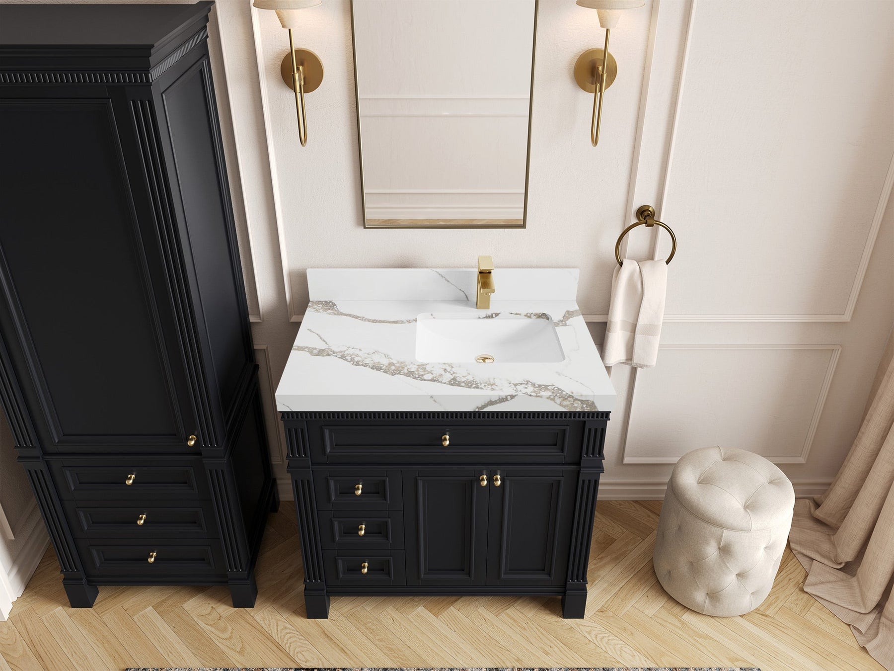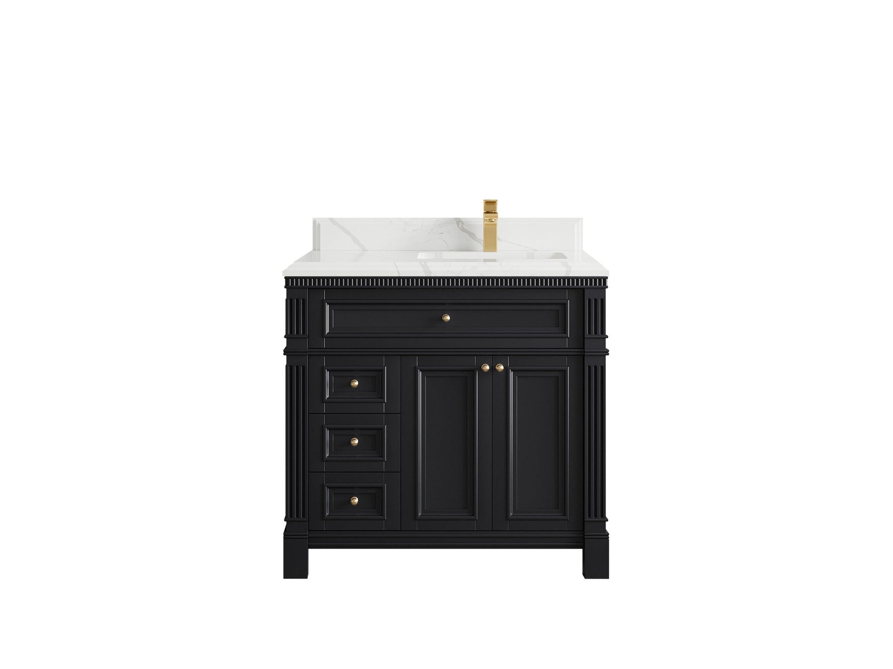 Catalina 36 in. W x 22 in. D Single Sink Bathroom Vanity in Black with 2 in Calacatta Laza Quartz Countertop