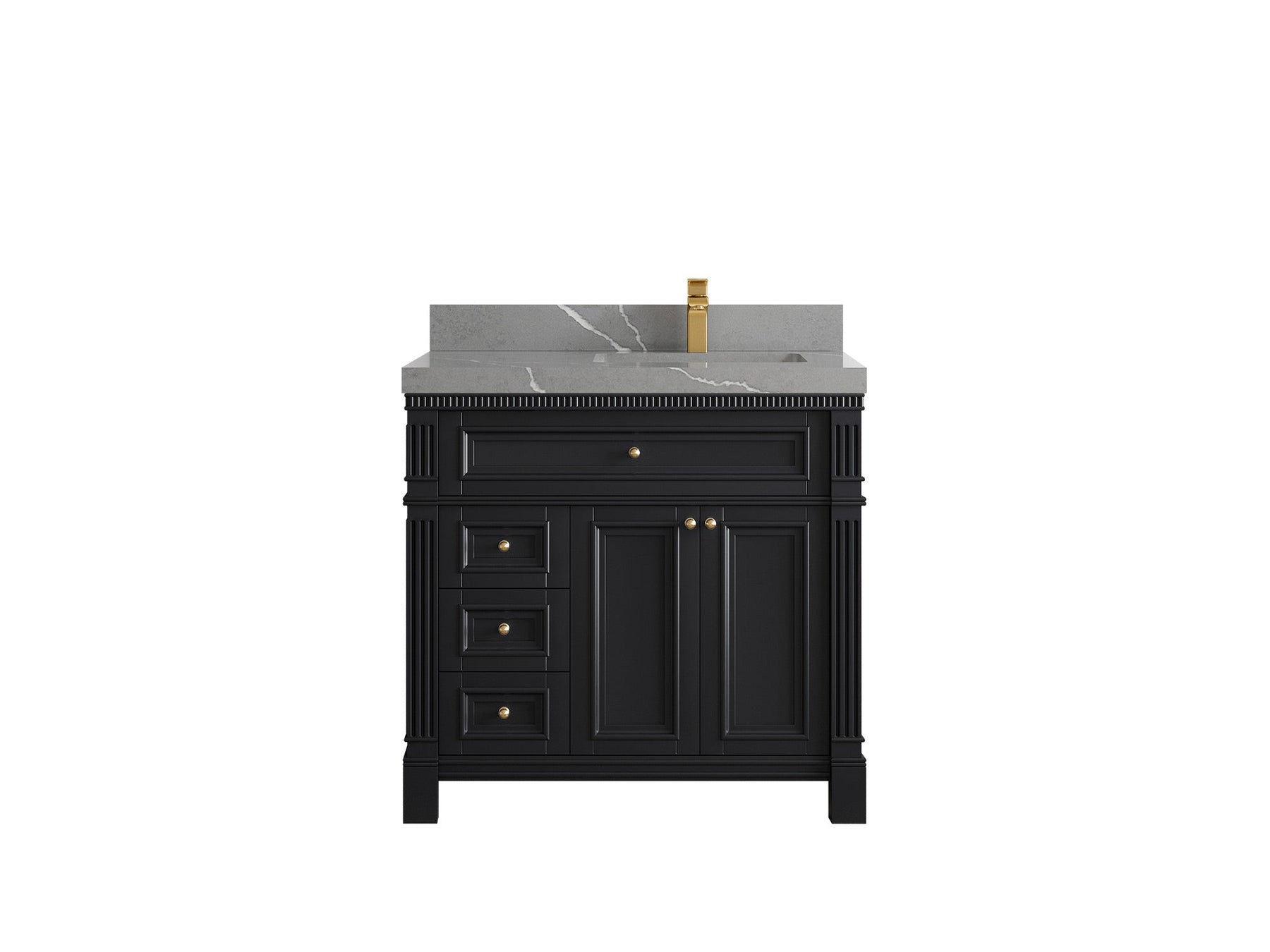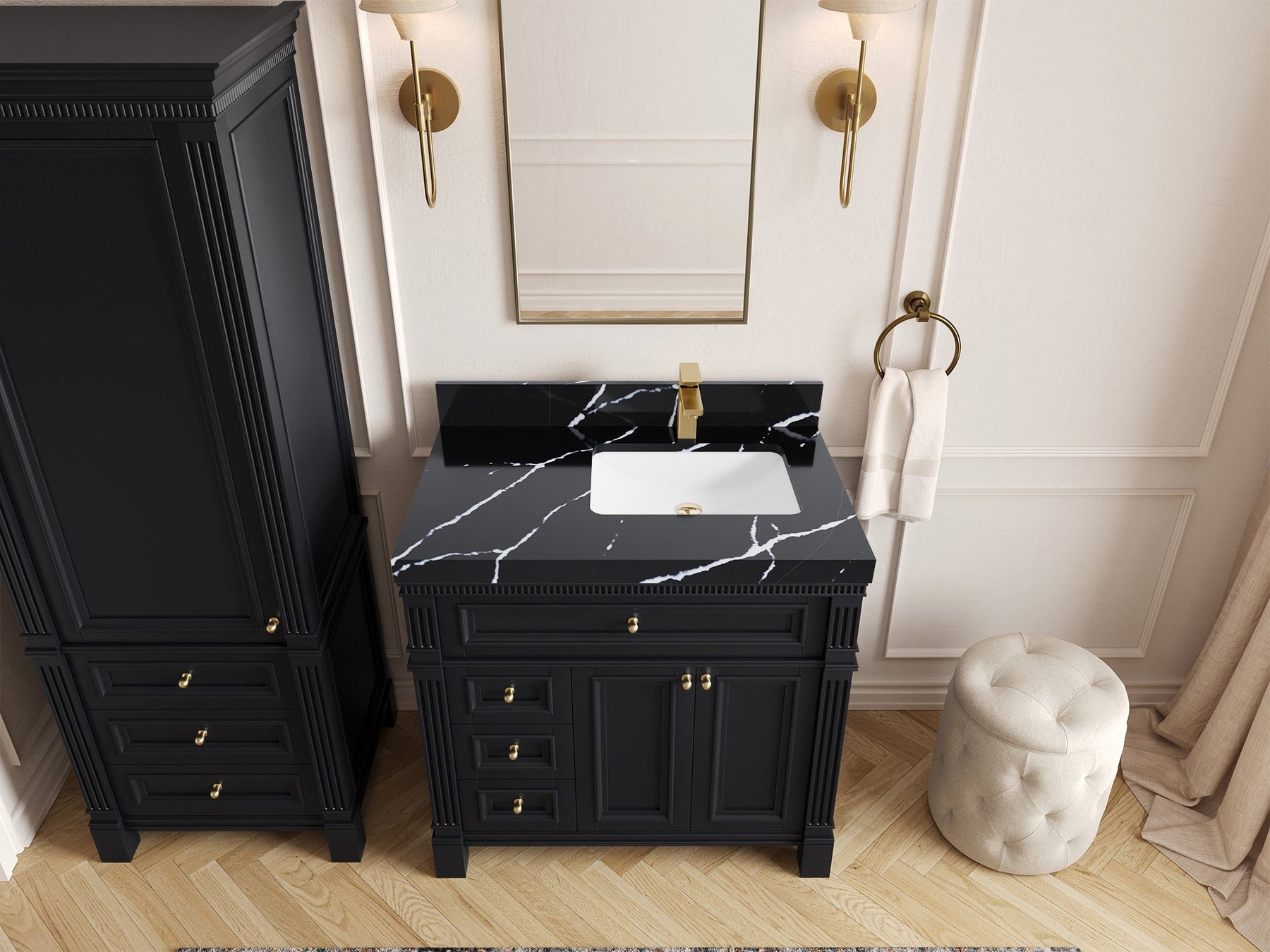 Paris 36 in. W x 22 in. D Right Offset Sink Bathroom Vanity in  Black with Countertop - Dimension