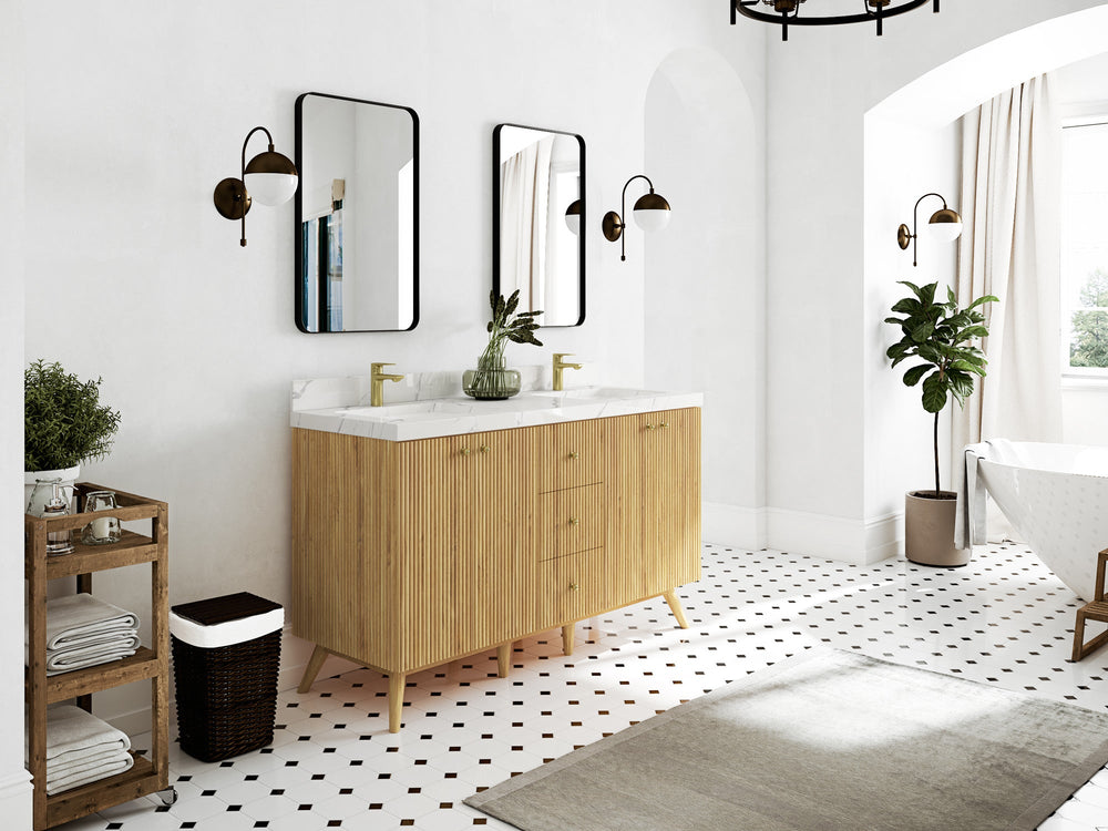 Sonoma 60 in W x 22 in D Free Standing Reeded Double Sink Bathroom Vanity