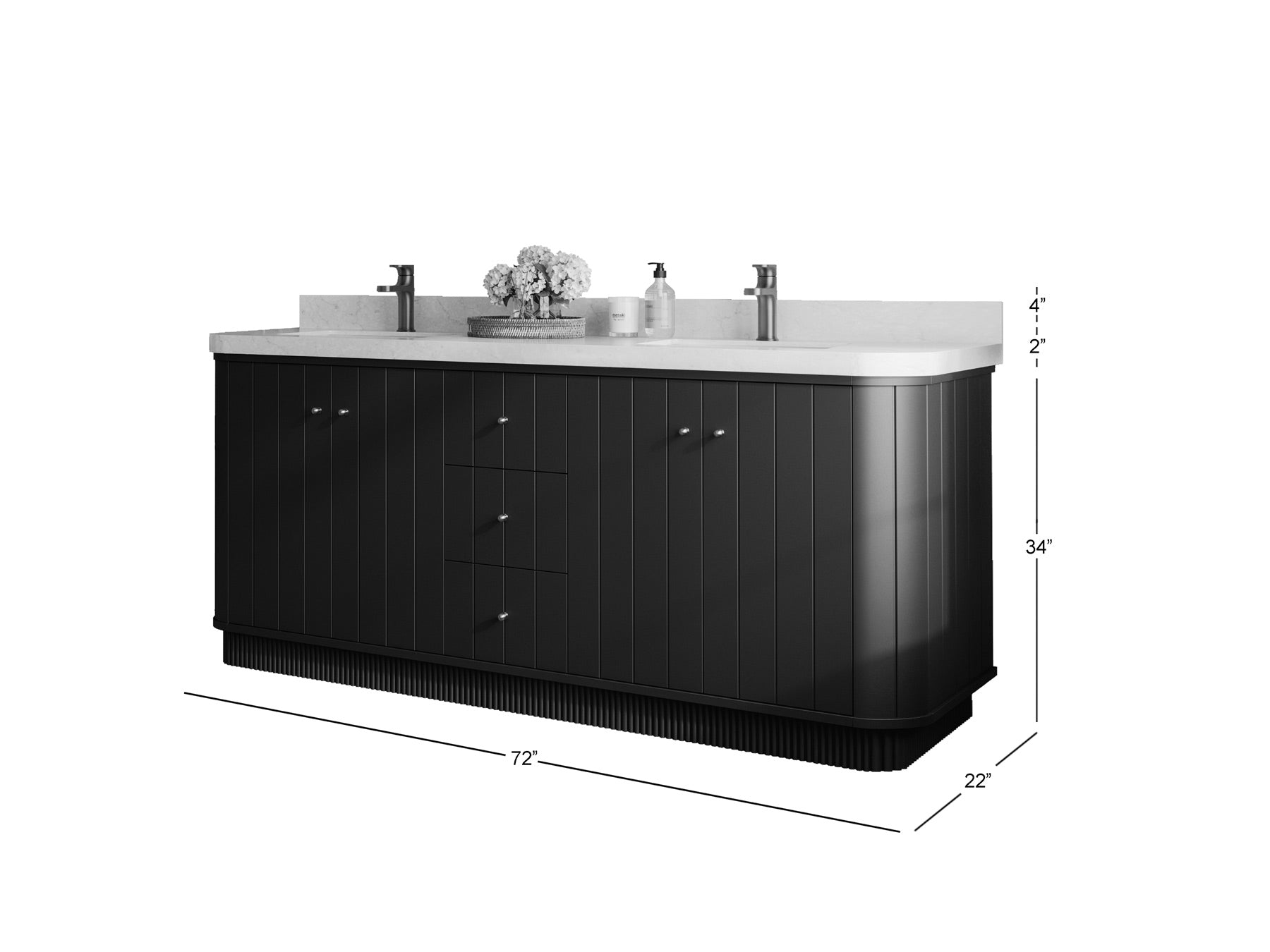 Vanity Countertops options: For Calacatta Laza Quartz, Calacatta Gold Quartz, Empira White Quartz, Pure White Quartz, Palissandro Quartz, Calacatta Nuvo Quartz, Carrara Marble, Carrara Quartz, Calacatta Sienna Quartz, Terrazzo Arctic Breeze, Terrazzo Golden Dusk we have Rounded - Edge option.