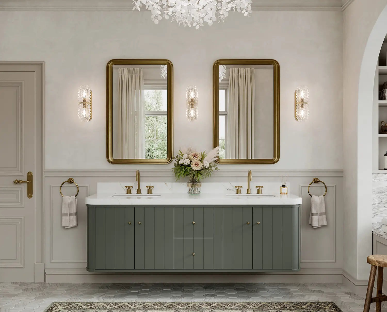 Vanity Countertops options: For Calacatta Laza Quartz, Calacatta Gold Quartz, Empira White Quartz, Pure White Quartz, Palissandro Quartz, Calacatta Nuvo Quartz, Carrara Marble, Carrara Quartz, Calacatta Sienna Quartz, Terrazzo Arctic Breeze, Terrazzo Golden Dusk we have Rounded - Edge option.