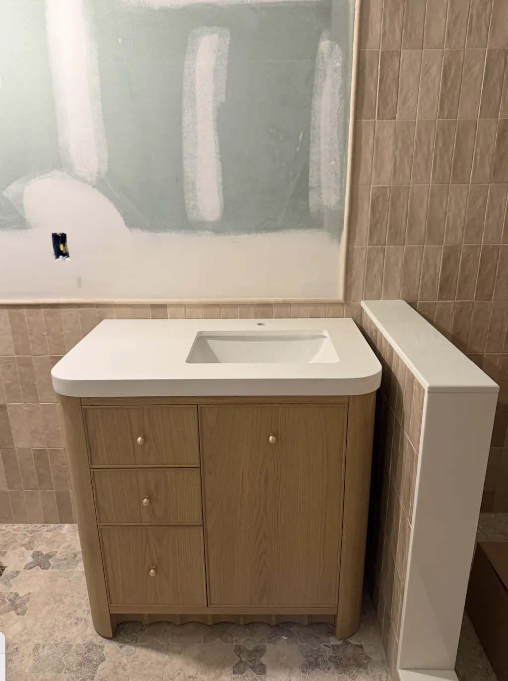 Vanity Countertops options: For Calacatta Laza Quartz, Calacatta Gold Quartz, Empira White Quartz, Pure White Quartz, Palissandro Quartz, Calacatta Nuvo Quartz, Carrara Marble, Carrara Quartz, Calacatta Sienna Quartz, Terrazzo Arctic Breeze, Terrazzo Golden Dusk we have Rounded - Edge option.