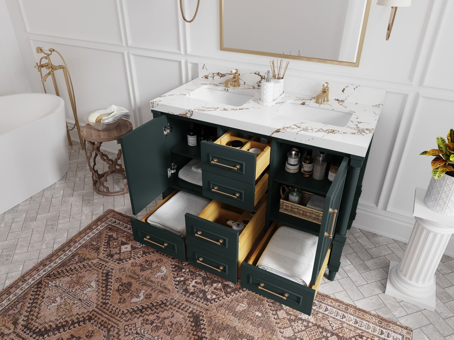 Hardware Finish: Alabaster, Coventry Gray, Fine Grain, White comes with Brushed Nickel Finish; Black, Black Top, Dark Forest Green, Evergreen, Hale Navy Blue, Pewter Green comes with Brushed Gold Finish