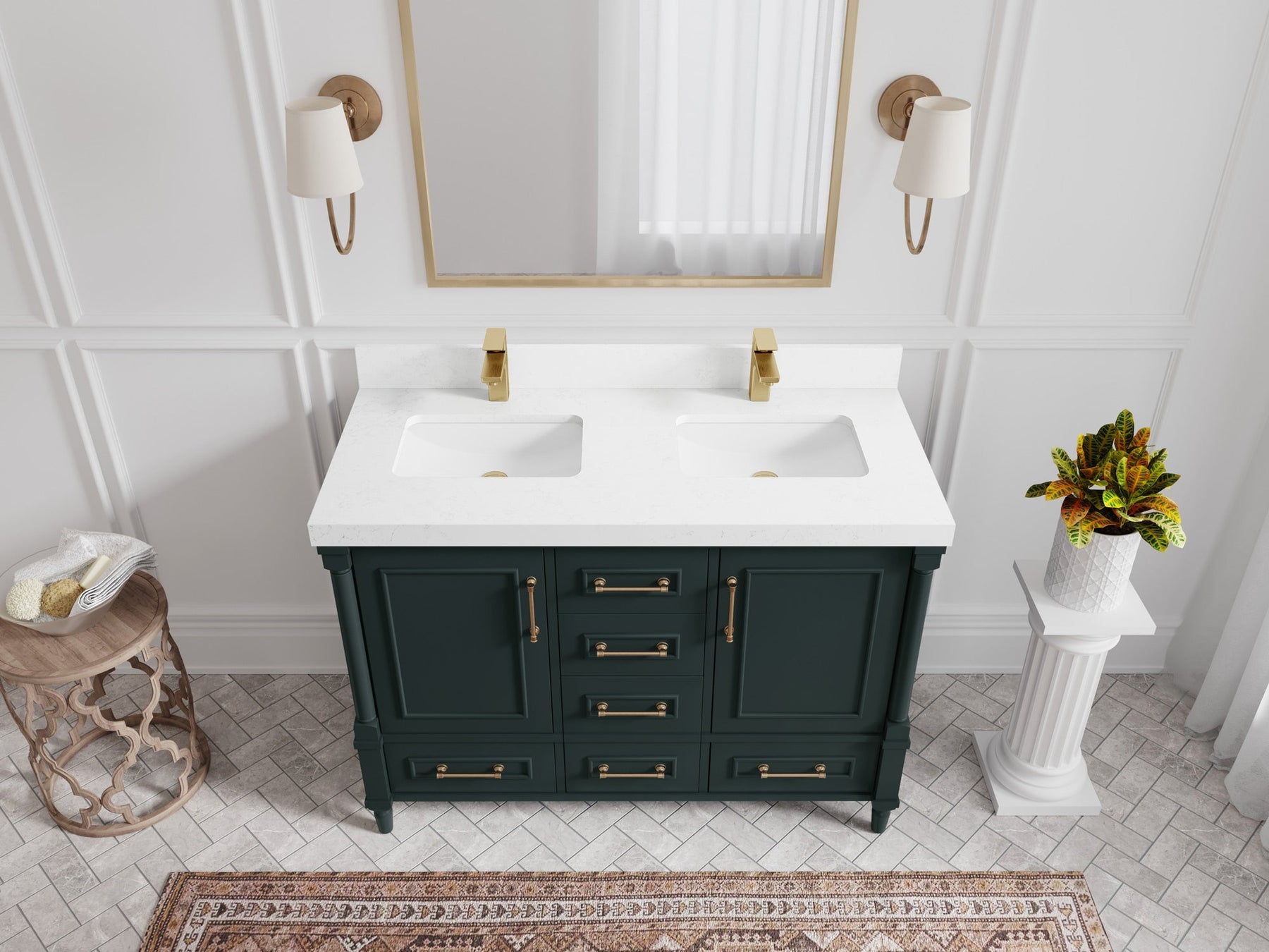 Vanity Countertops options: For Calacatta Laza Quartz, Empira White Quartz, Pure White Quartz we have 2 options Straight-Mitered Edge and Double Cove Edge; For Calacatta Nuvo Quartz, Carrara Marble, Carrara Quartz, Piatra Gray Quartz, Calacatta Black, Calacatta Gold, Venatino Quartz, Pearl Light Gray, Viola Brown, Viola Gold, Viola Night, Calacatta Sienna, 2" Calacatta Poanazzo we only have Straight - Mitered Edge option.