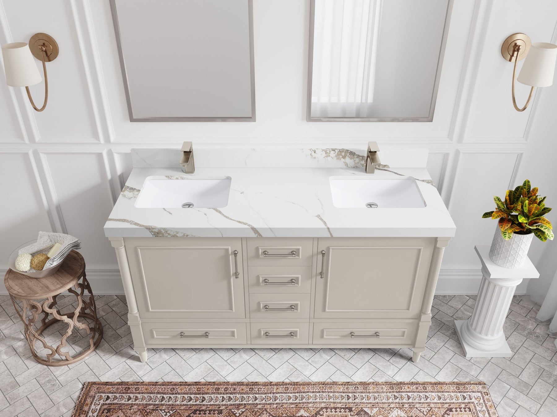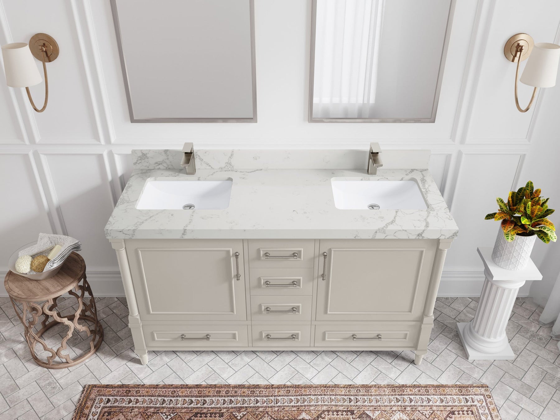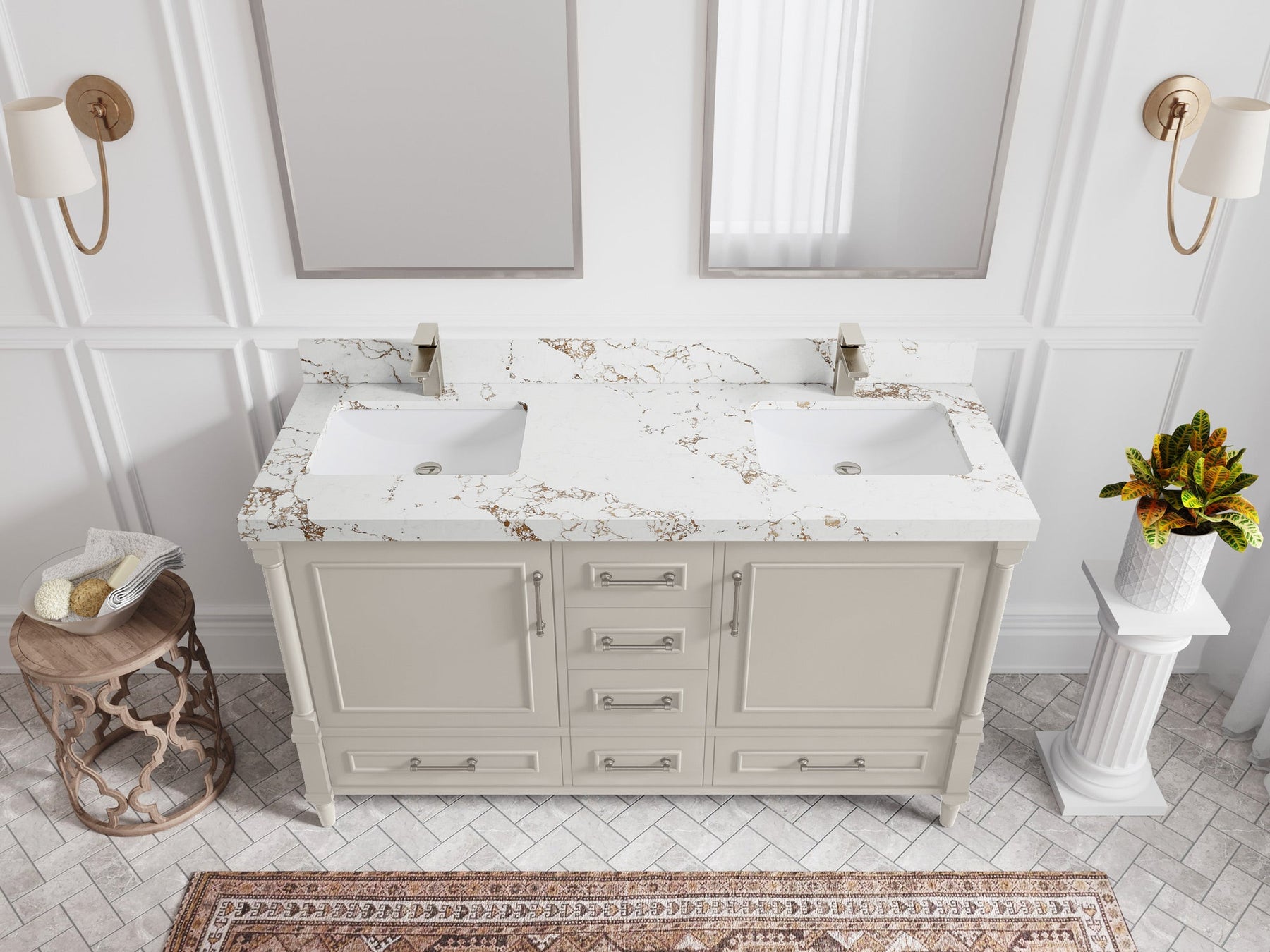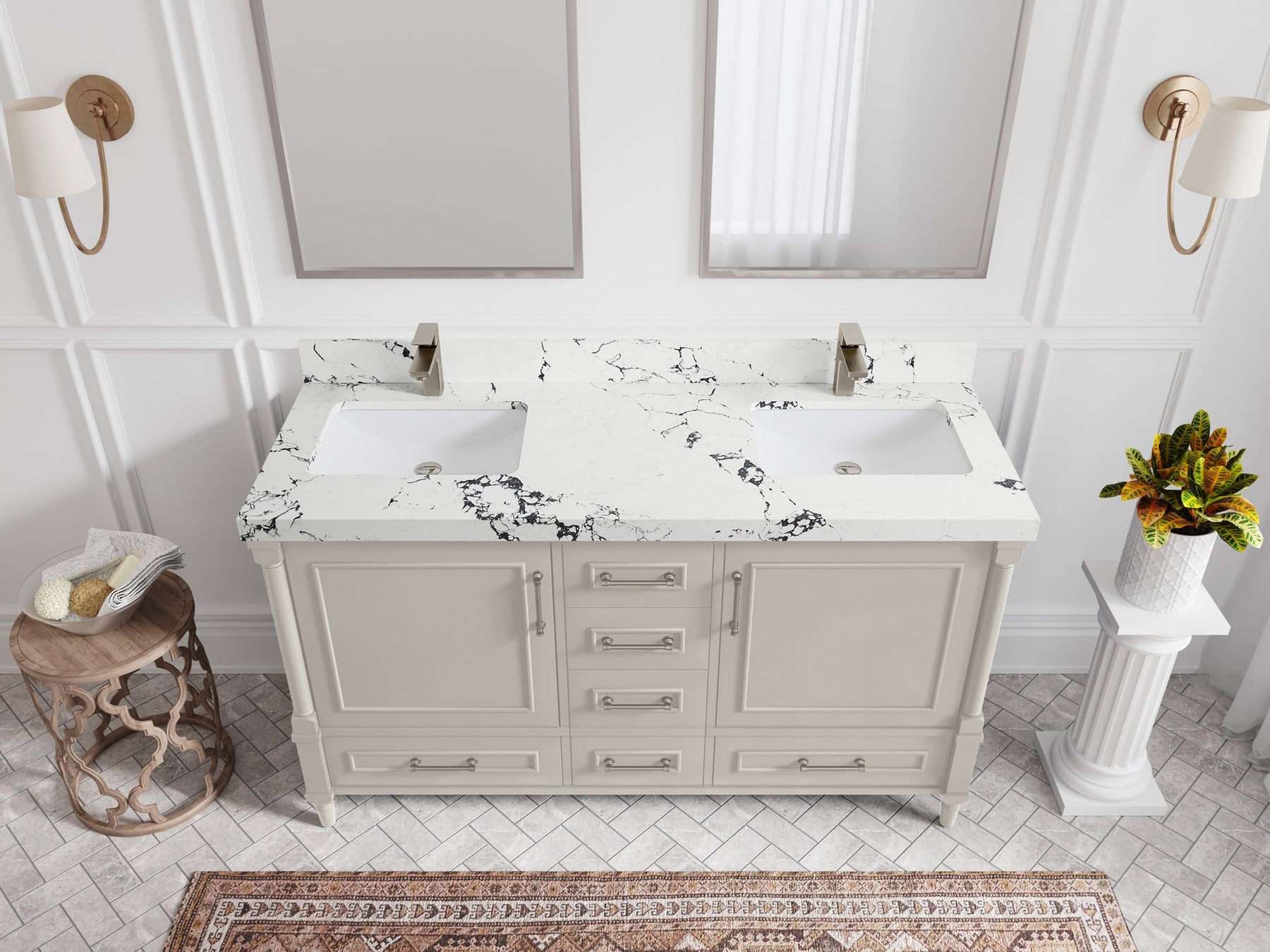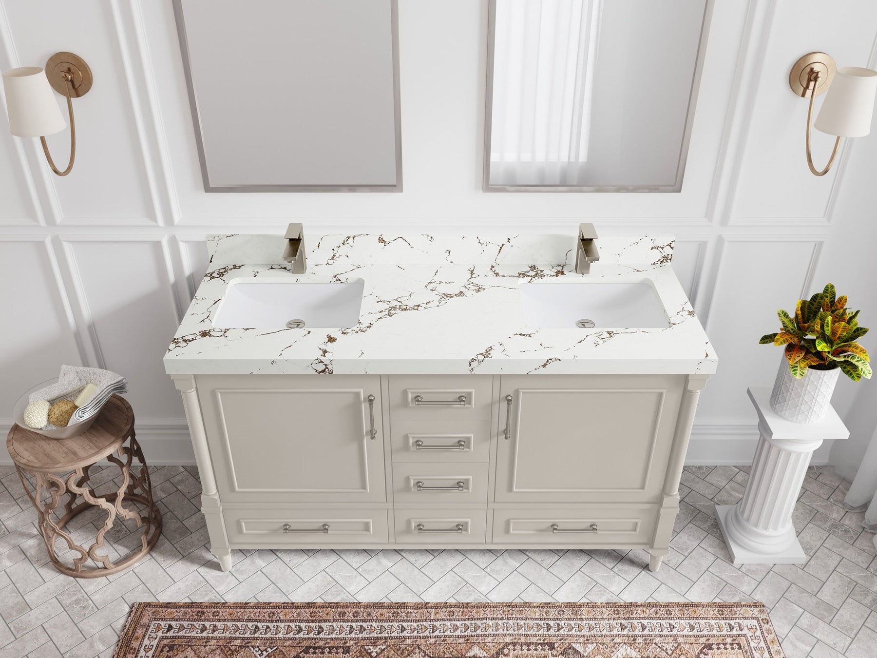 Faucet Hole(S): Comes with Single Faucet, 8 (in.) Widespread Faucet, Wall mount Faucets - Only Available for White Quartz and Carrara Quartz. (PLEASE ADD THIS CONFIGURATION UNDER COUNTERTOPS SECTION )
