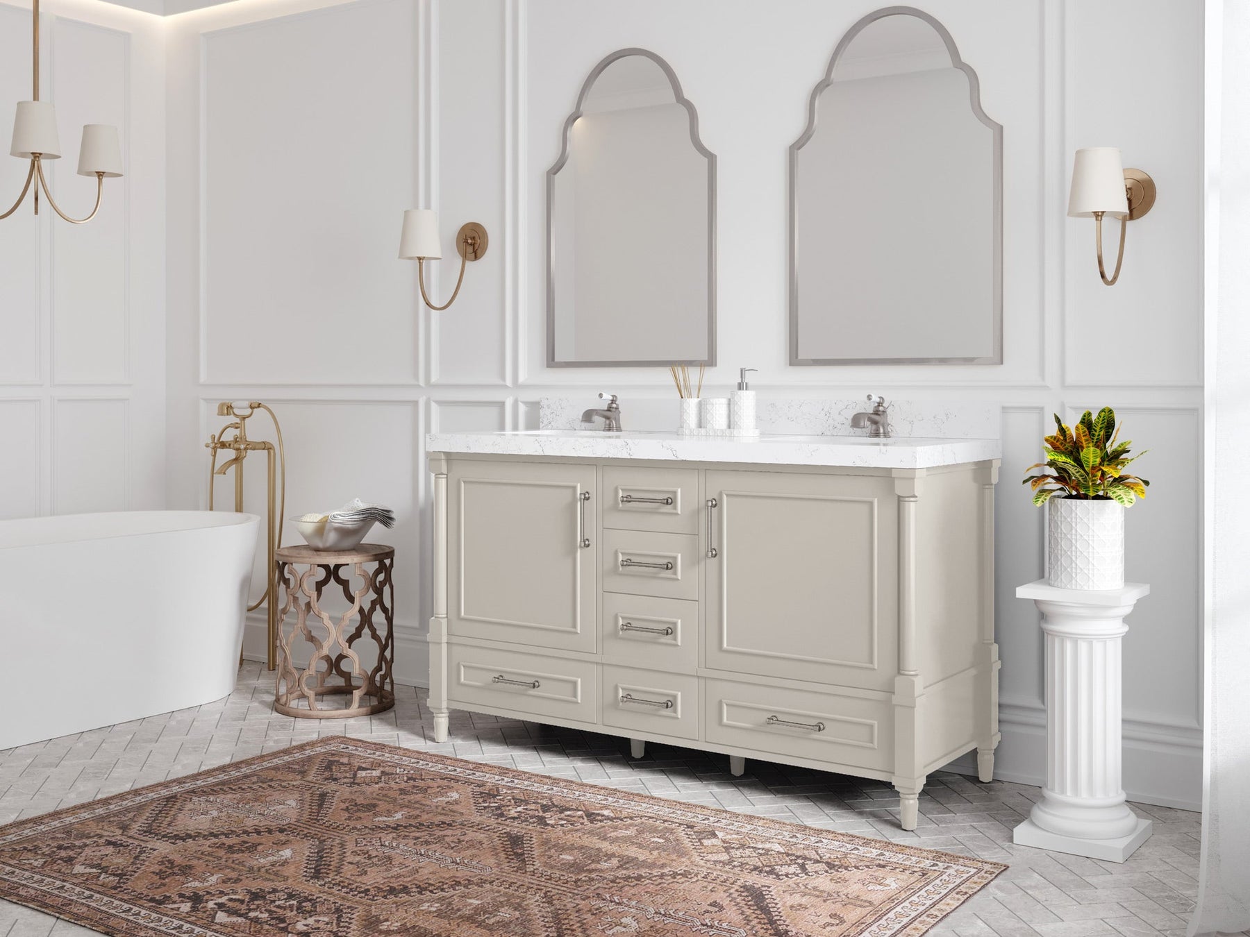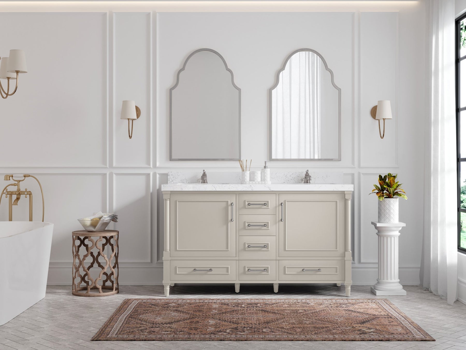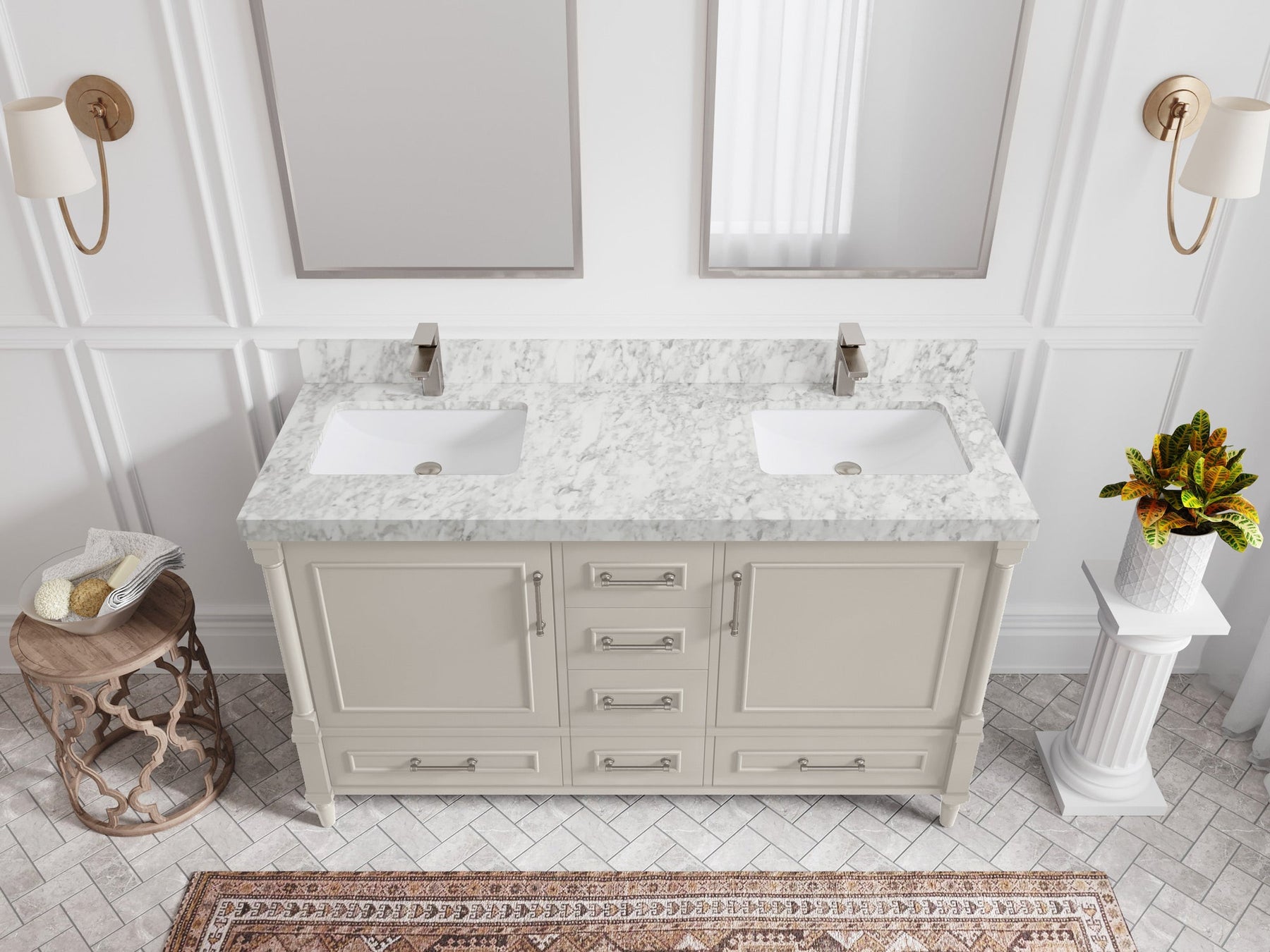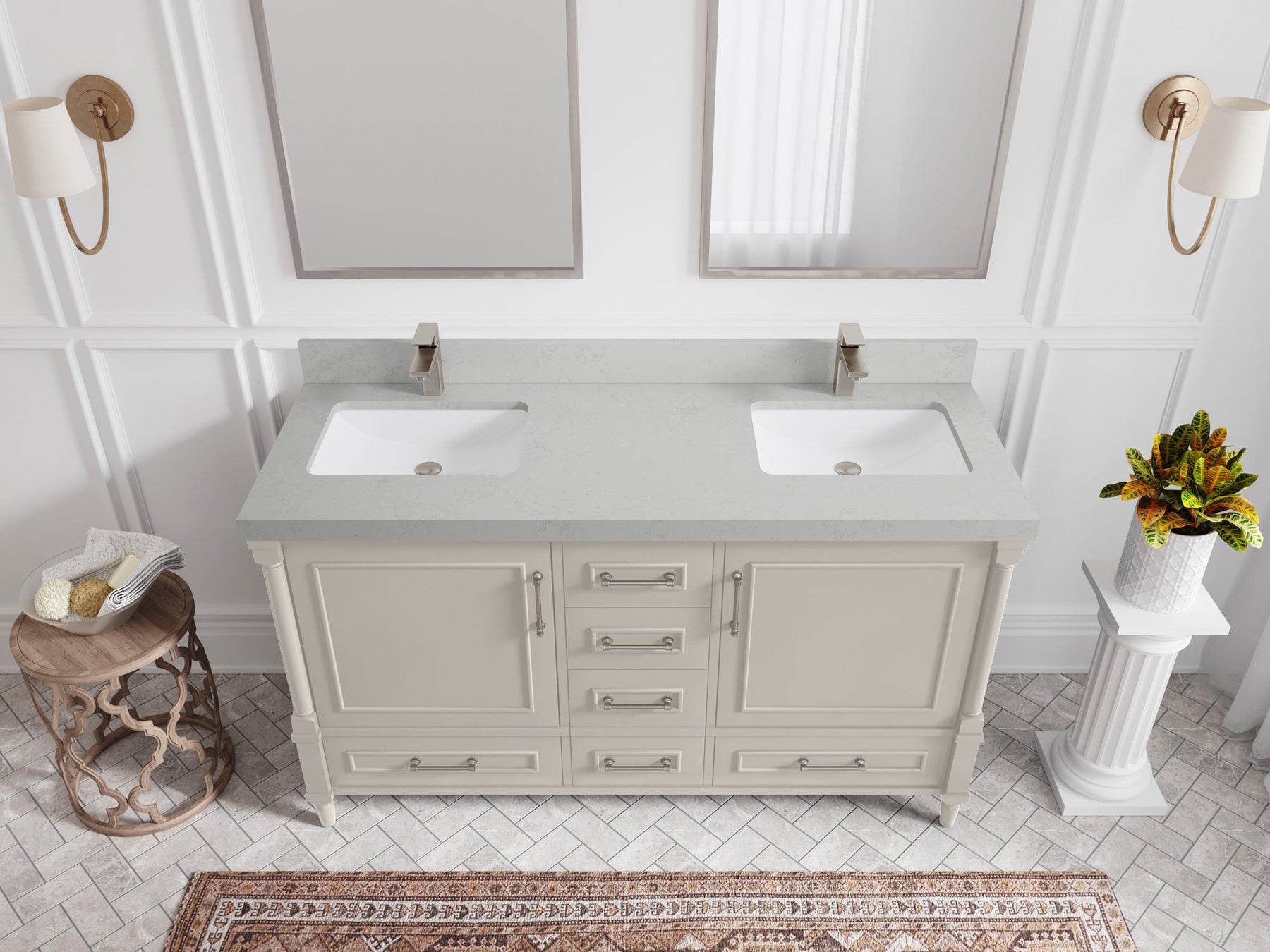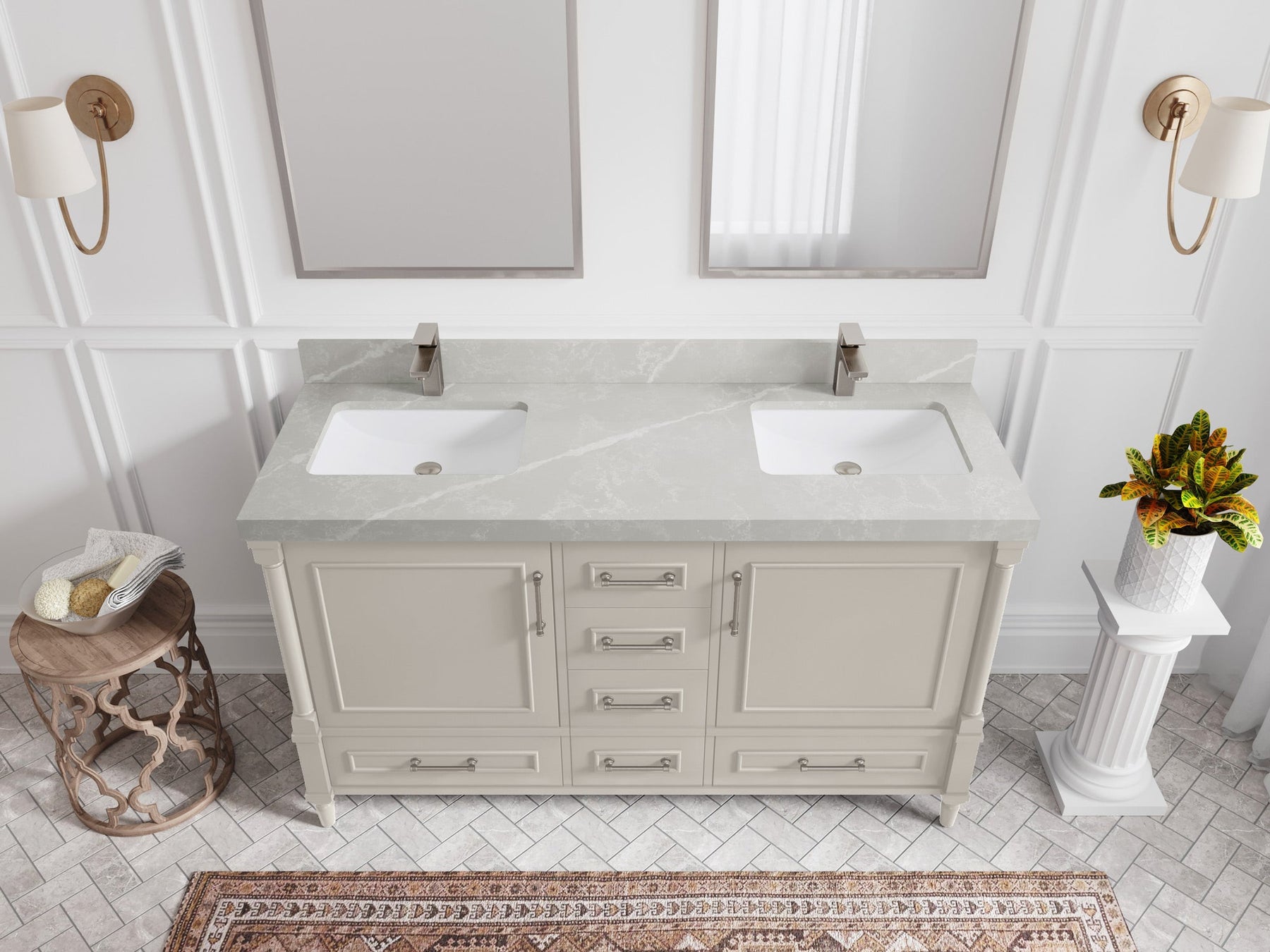 Faucet Hole(S): Comes with Single Faucet, 8 (in.) Widespread Faucet, Wall mount Faucets - Only Available for White Quartz and Carrara Quartz. (PLEASE ADD THIS CONFIGURATION UNDER COUNTERTOPS SECTION )