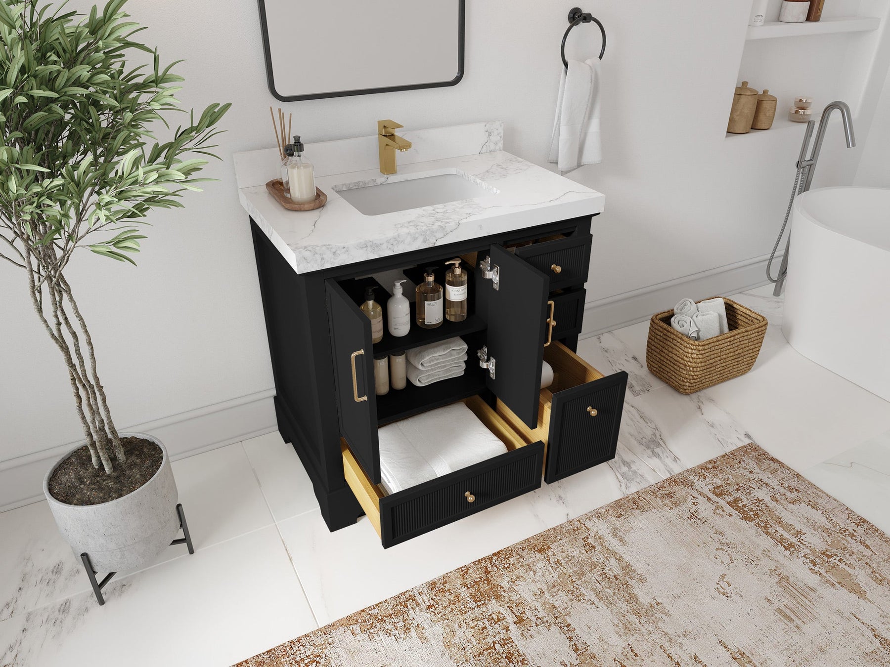 • 2. Durable Countertop Options - Choose from our range of bathroom vanities with quartz countertop to perfectly match your bathroom's style and color scheme. Our countertops are designed to withstand daily use and are resistant to scratches, stains, and heat.