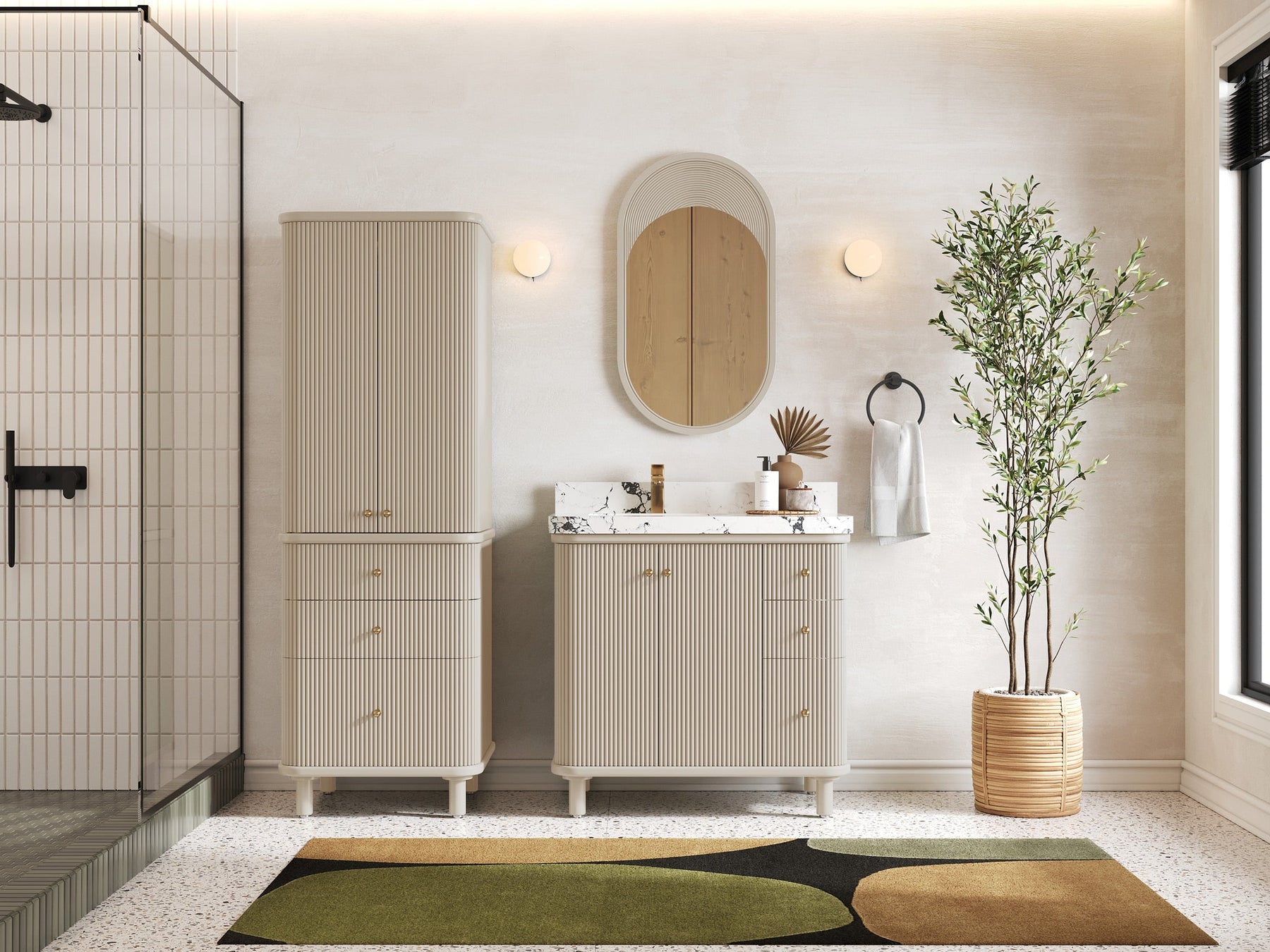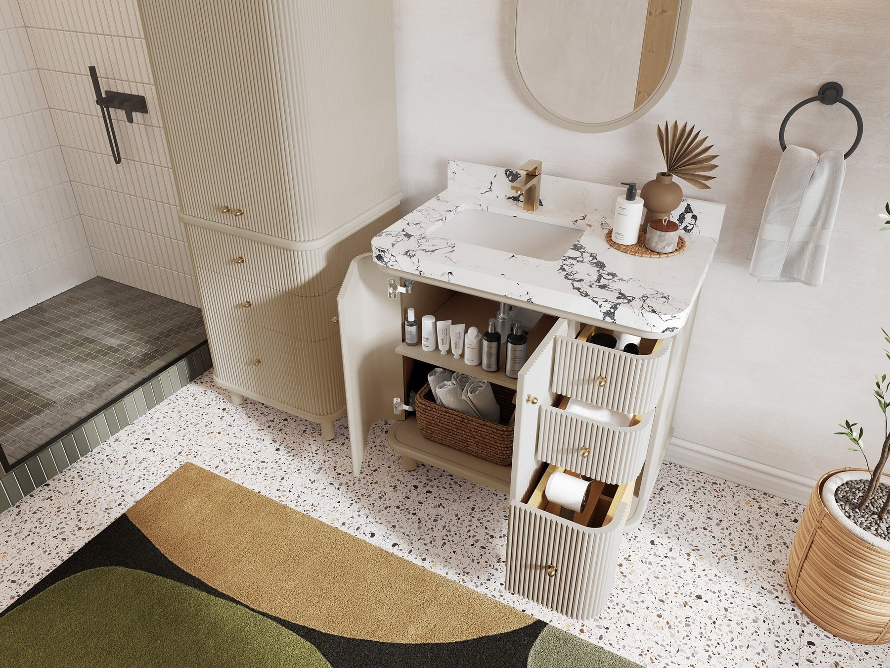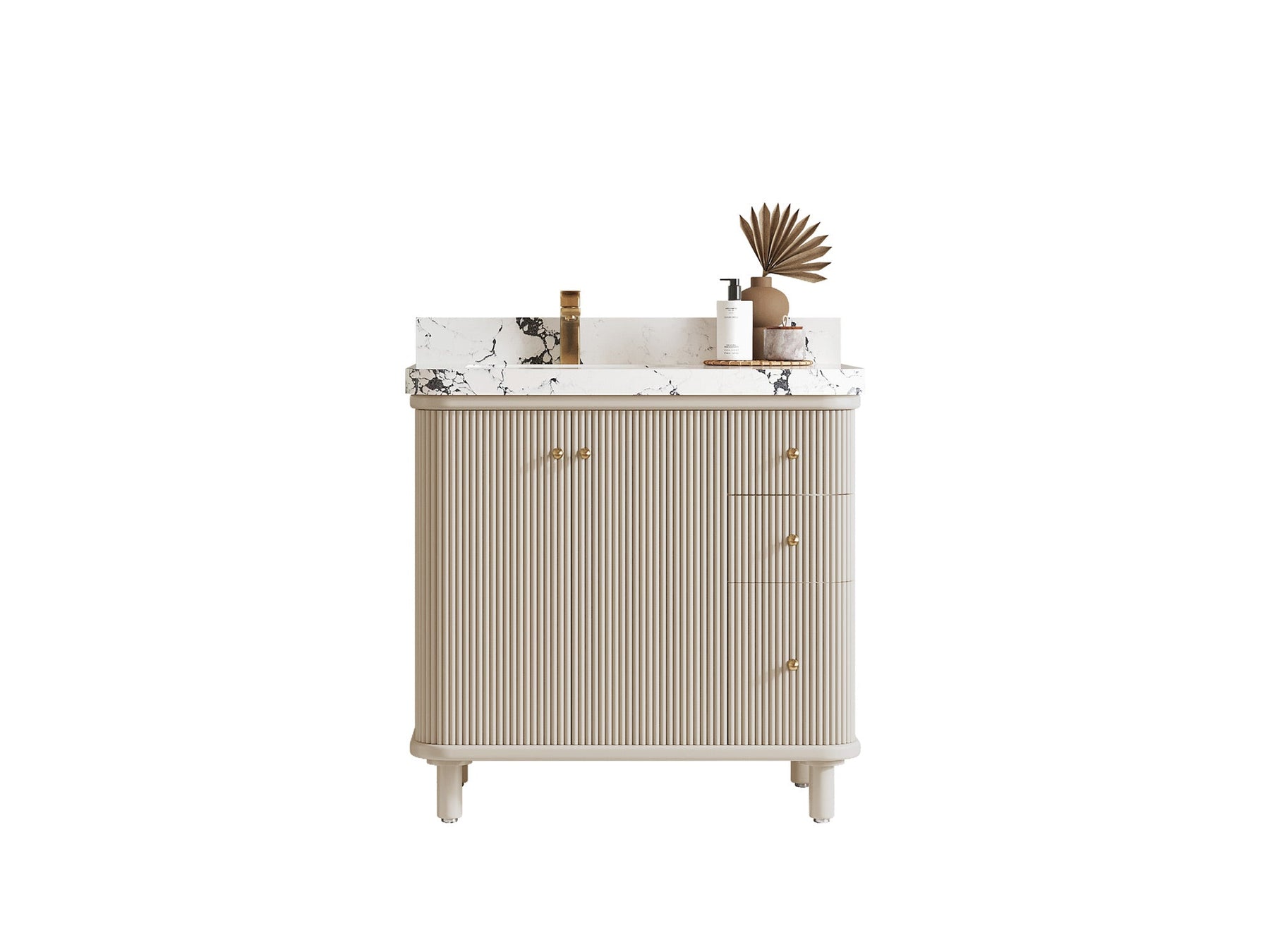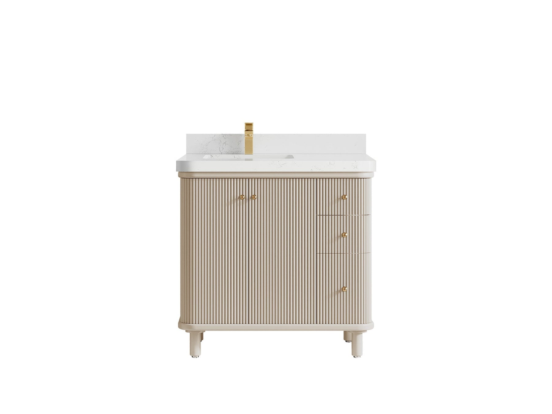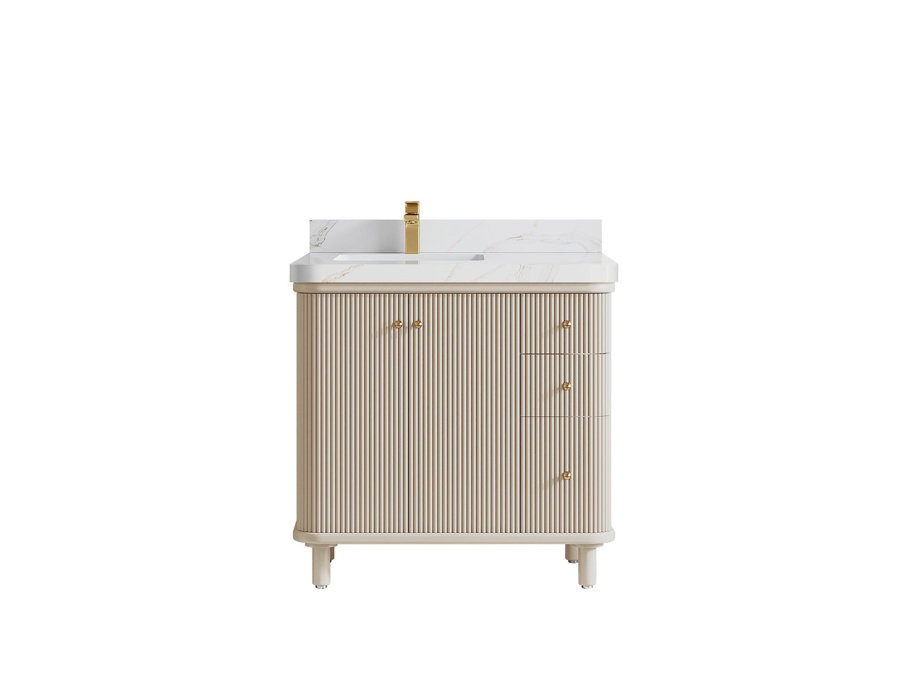Vanity Countertops options: For Calacatta Laza Quartz, Empira White Quartz, Pure White Quartz, Palissandro Quartz, Calacatta Nuvo Quartz, Carrara Quartz, Carrara Marble, Calacatta Gold Quartz, Calacatta Sienna Quartz we have Straight - Mitered Edge option.