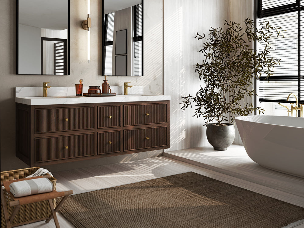 Sonoma 60 in W x 22 in D Free Standing Reeded Double Sink Bathroom Vanity