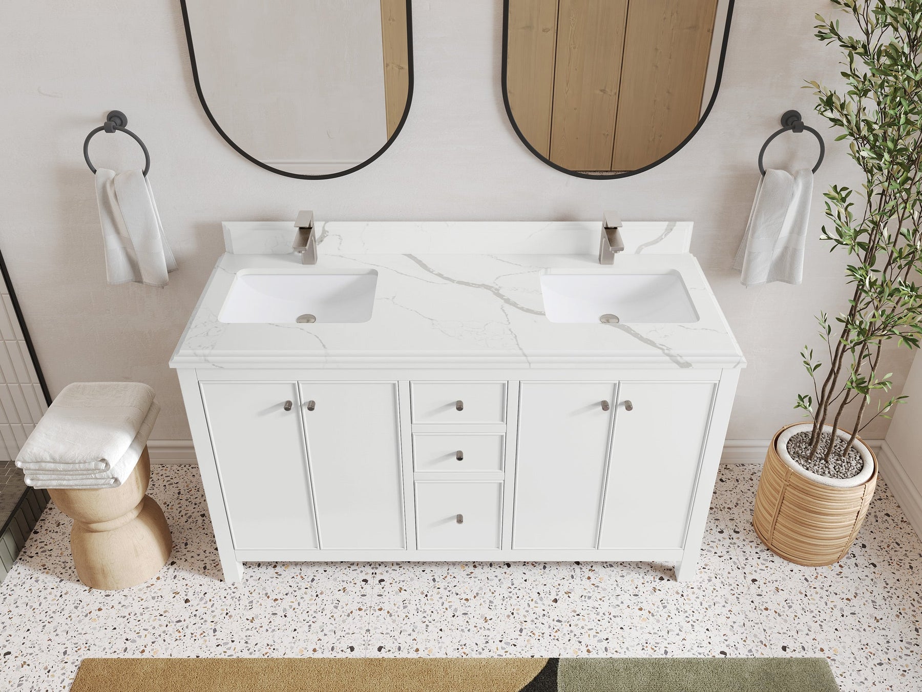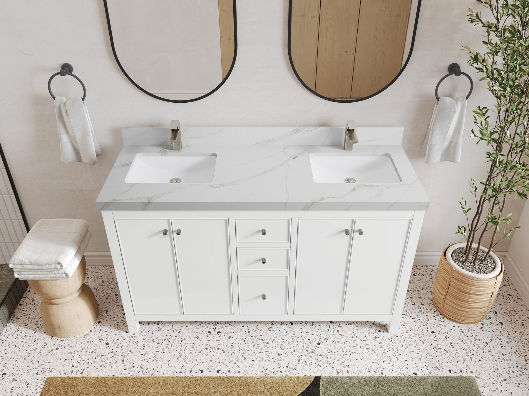 Vanity Countertops options: For Calacatta Laza Quartz, Empira White Quartz, Pure White Quartz we have 2 options Straight-Mitered Edge & Double Cove Edge, For Calacatta Black Quartz, Calacatta Gold Quartz, Calacatta Nuvo Quartz, Carrara Marble, Carrara Quartz, Pearl Light Gray Quartz, Piatra Gray Quartz, Venatino Quartz, and Light Concrete Gray Quartz we only have Straight - Mitered Edge option.
