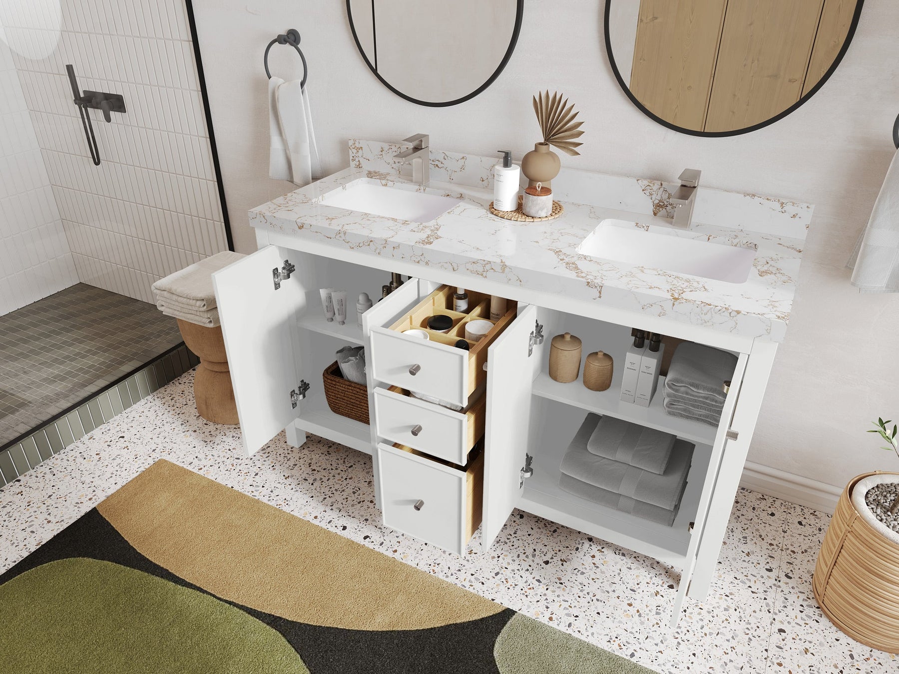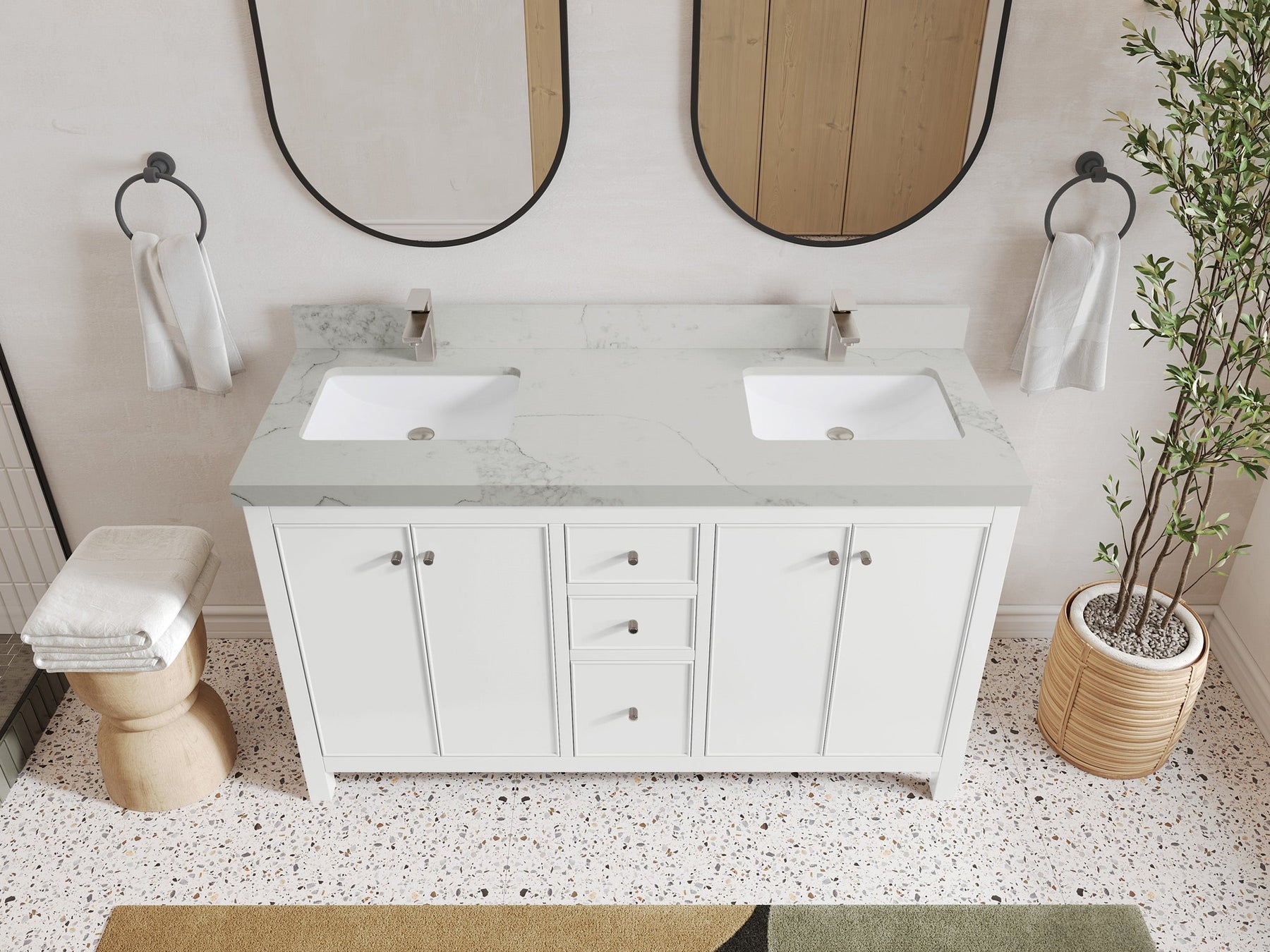 Faucet Hole(S): Comes with Single Faucet, 8 (in.) Widespread Faucet, Wall mount Faucets - Only Available for White Quartz and Carrara Quartz. (PLEASE ADD THIS CONFIGURATION UNDER COUNTERTOPS SECTION )