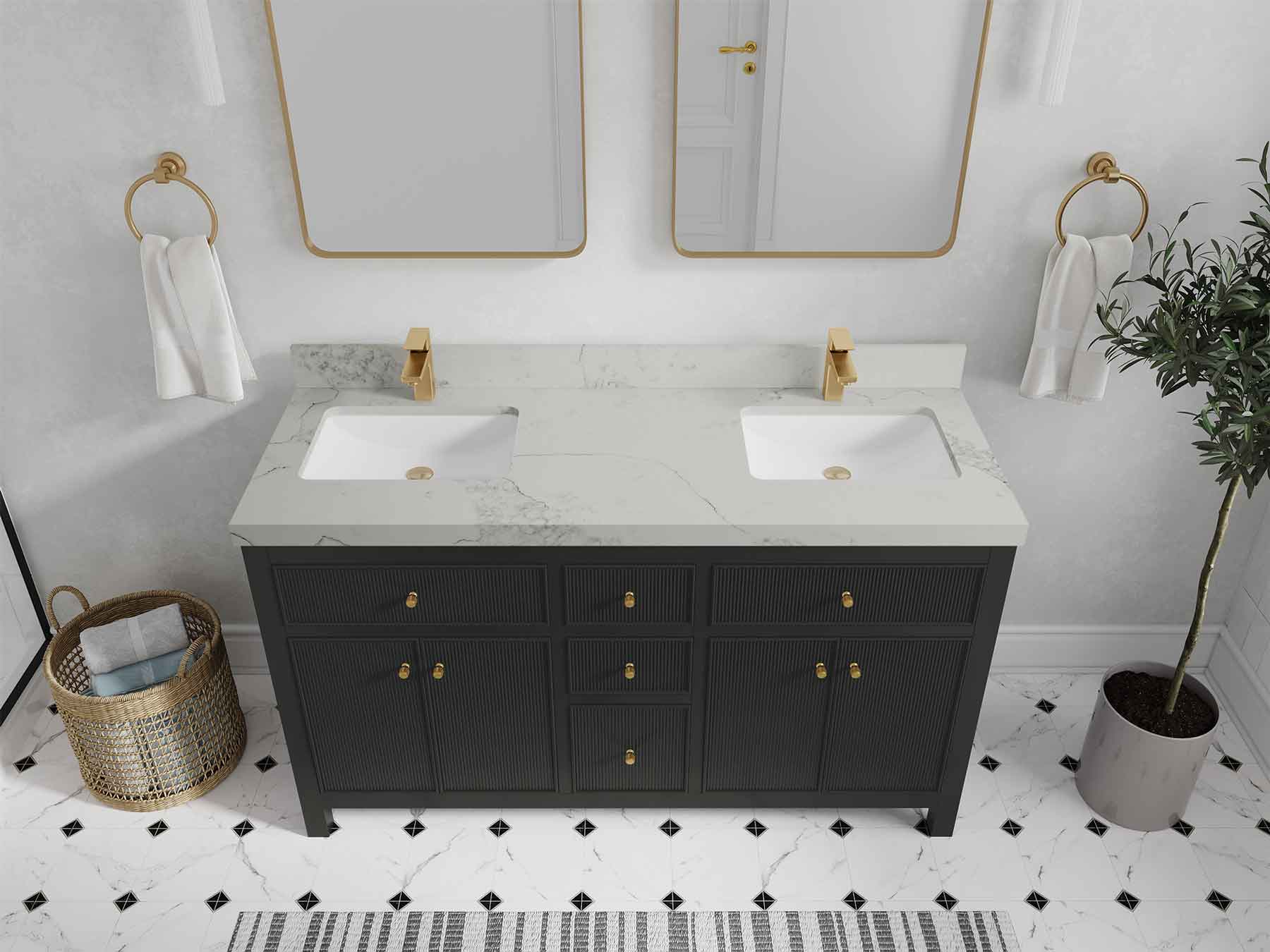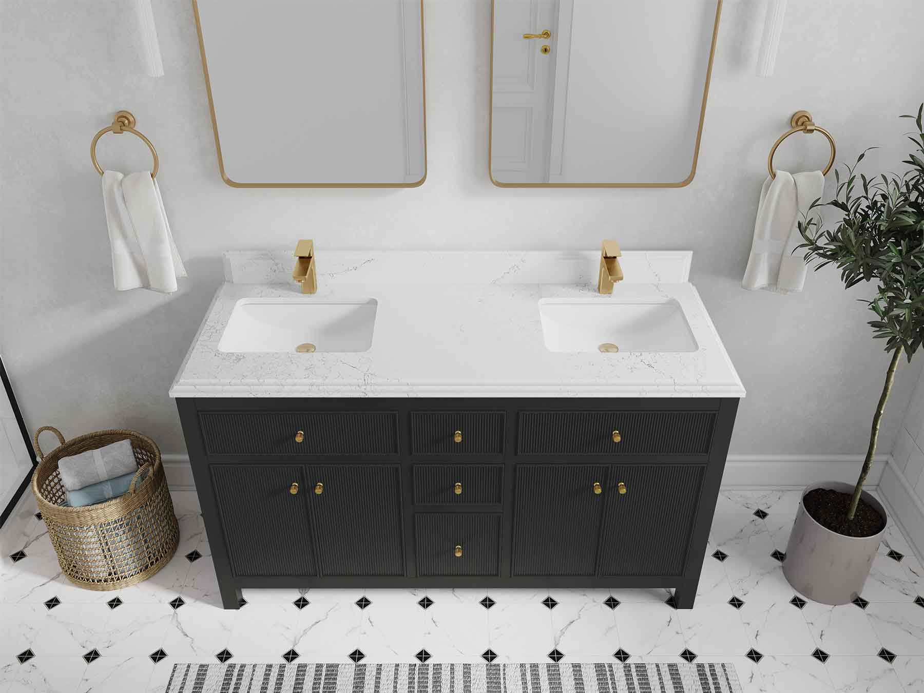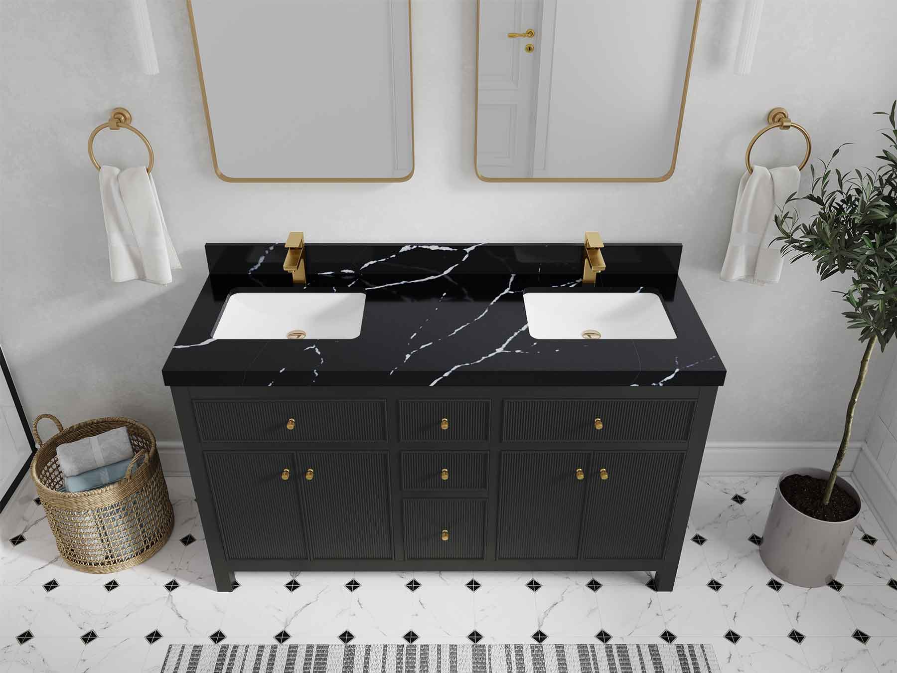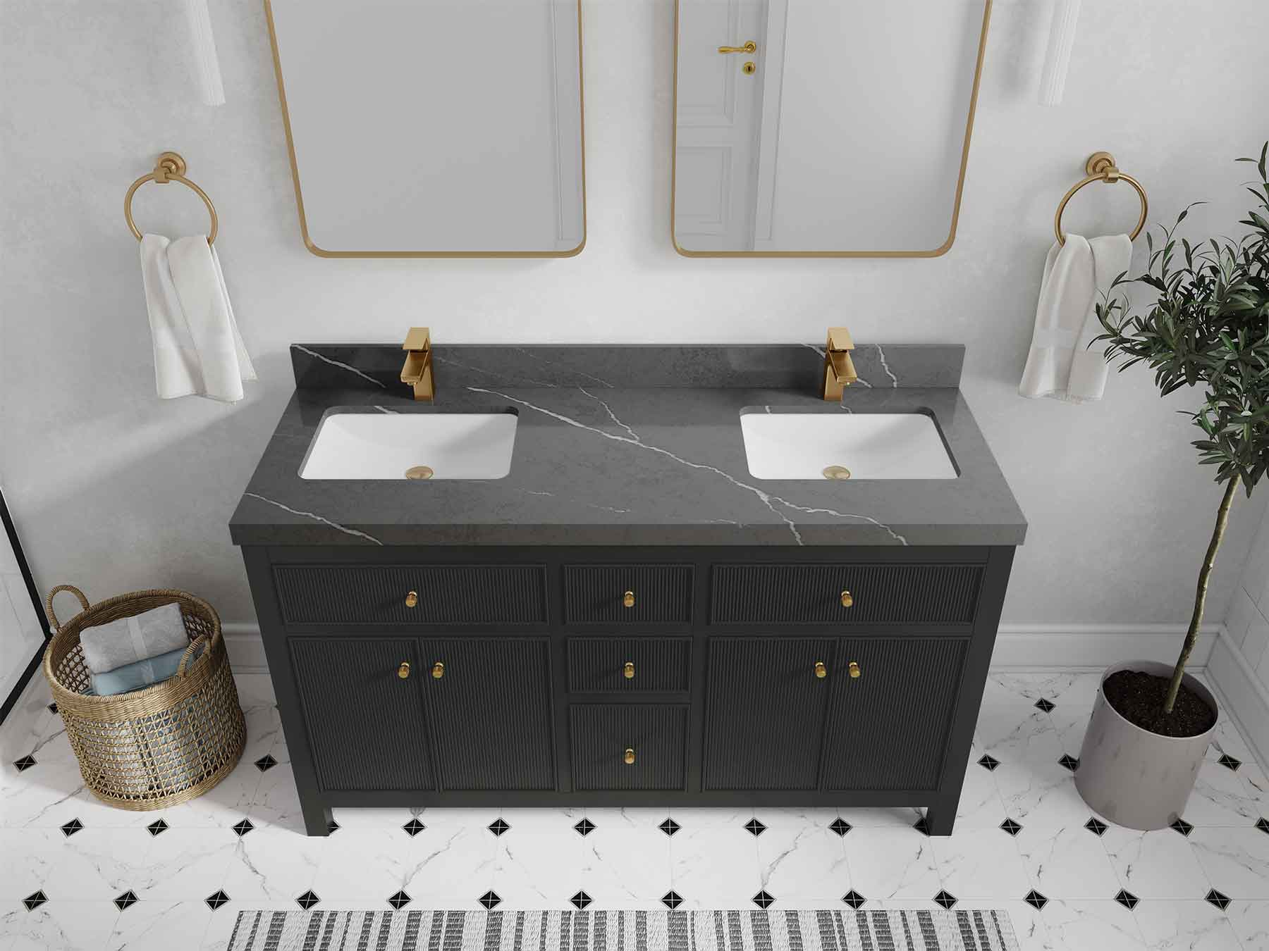 Sonoma 60 in W x 22 in D Free Standing Reeded Double Sink Bathroom Vanity | Black Top