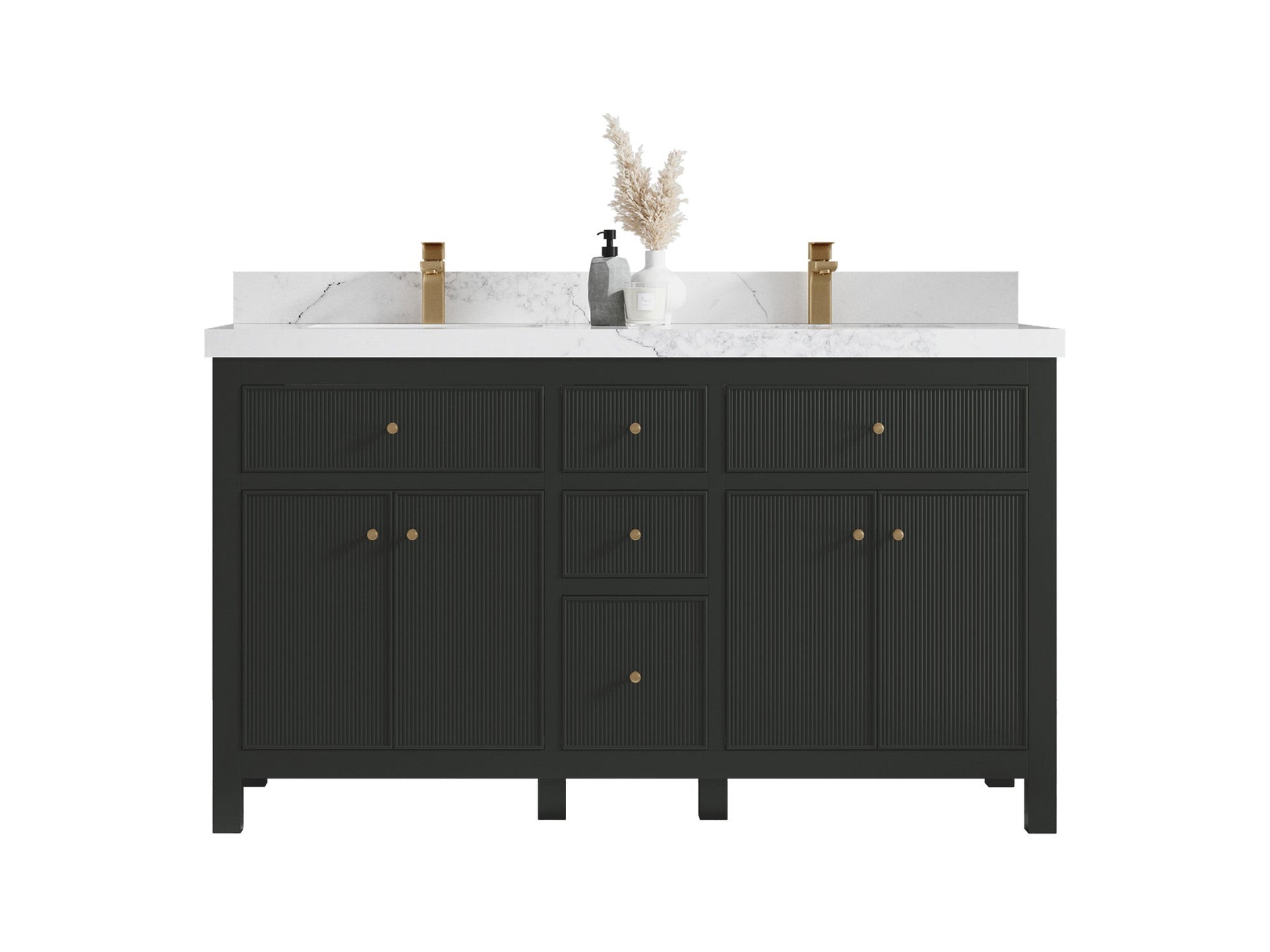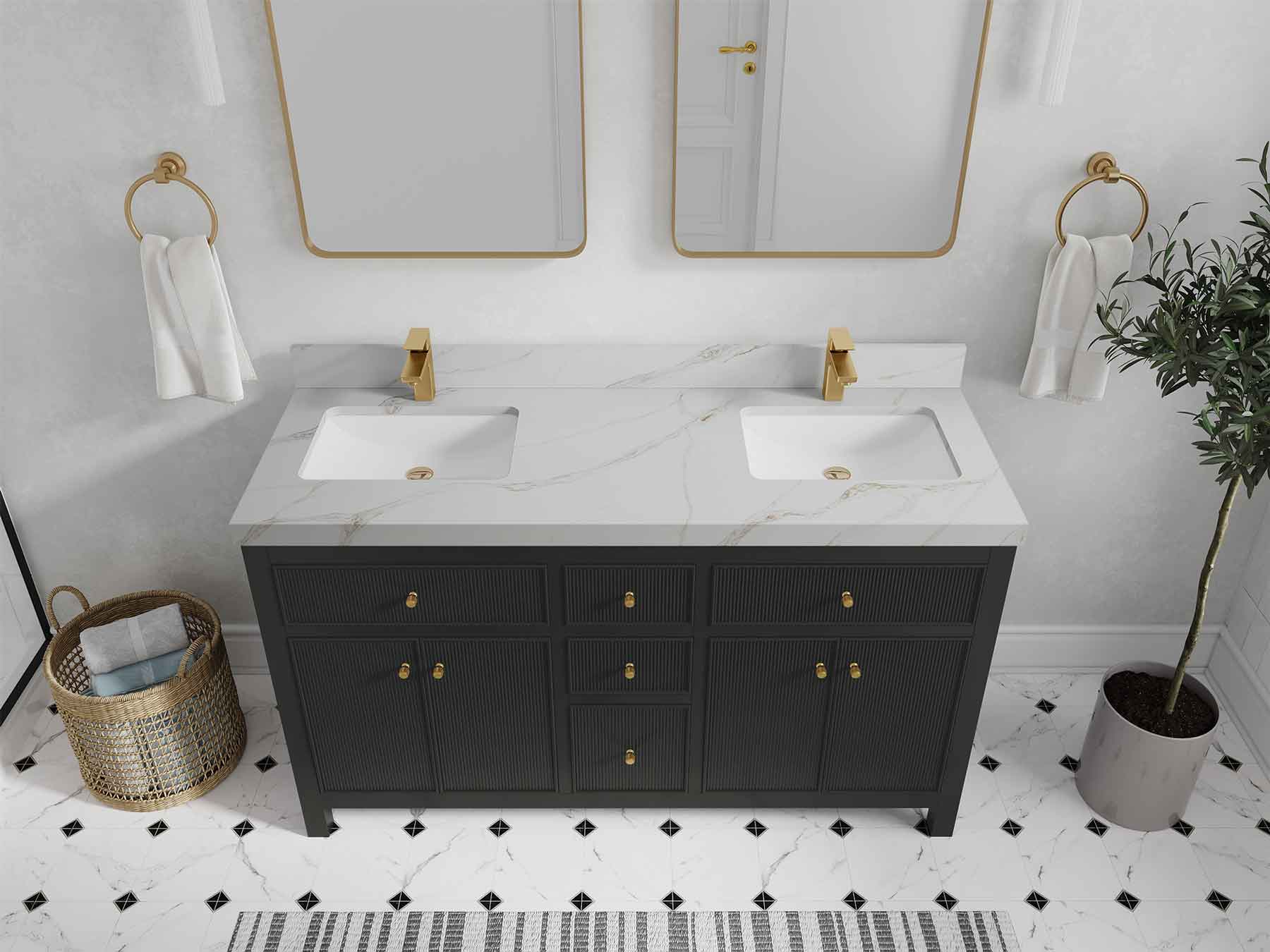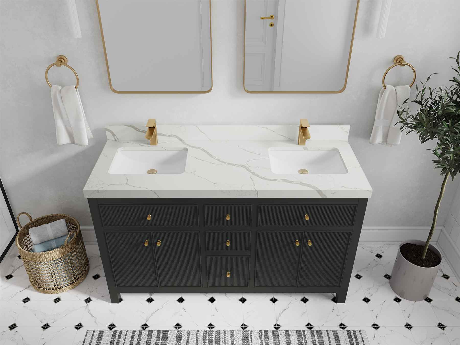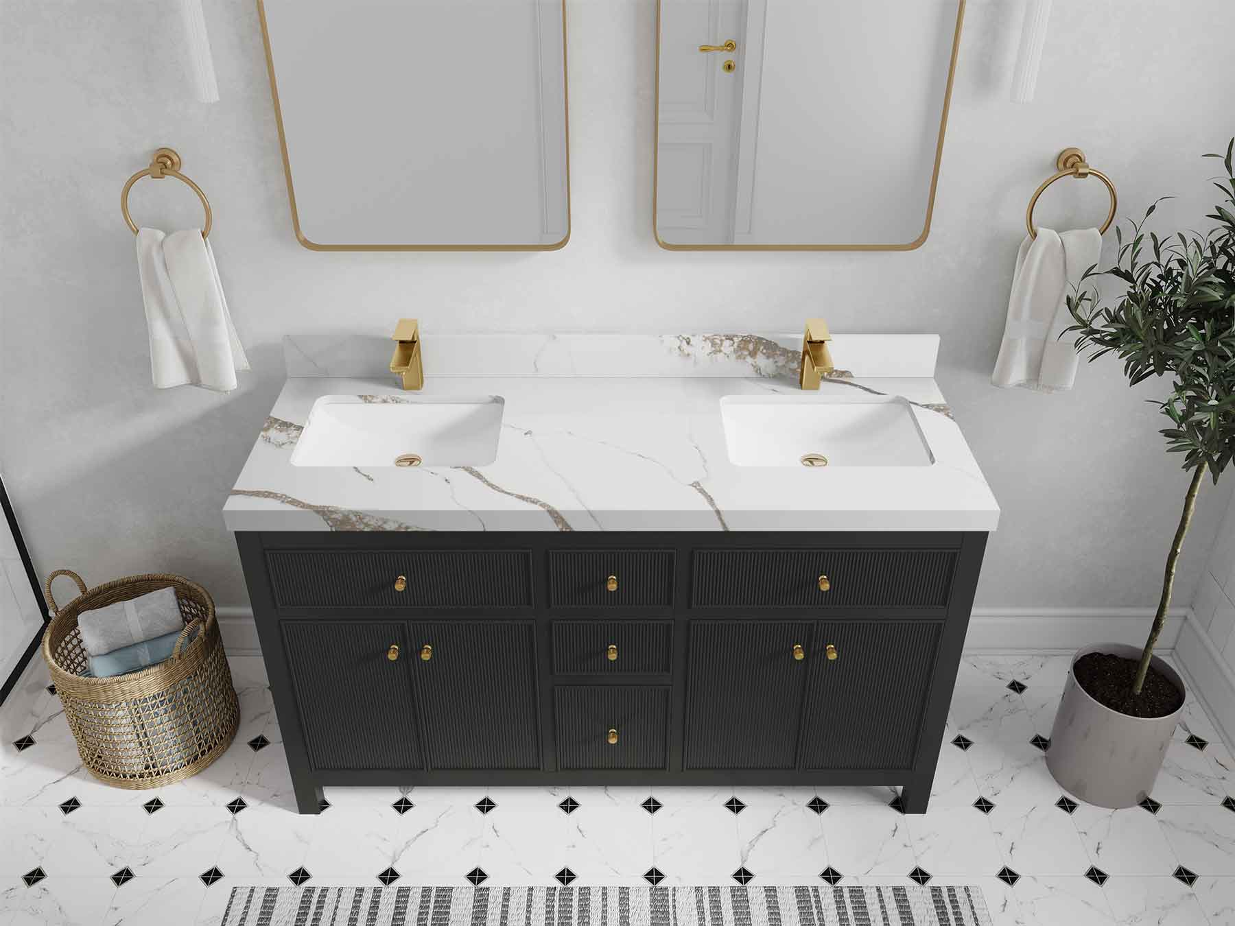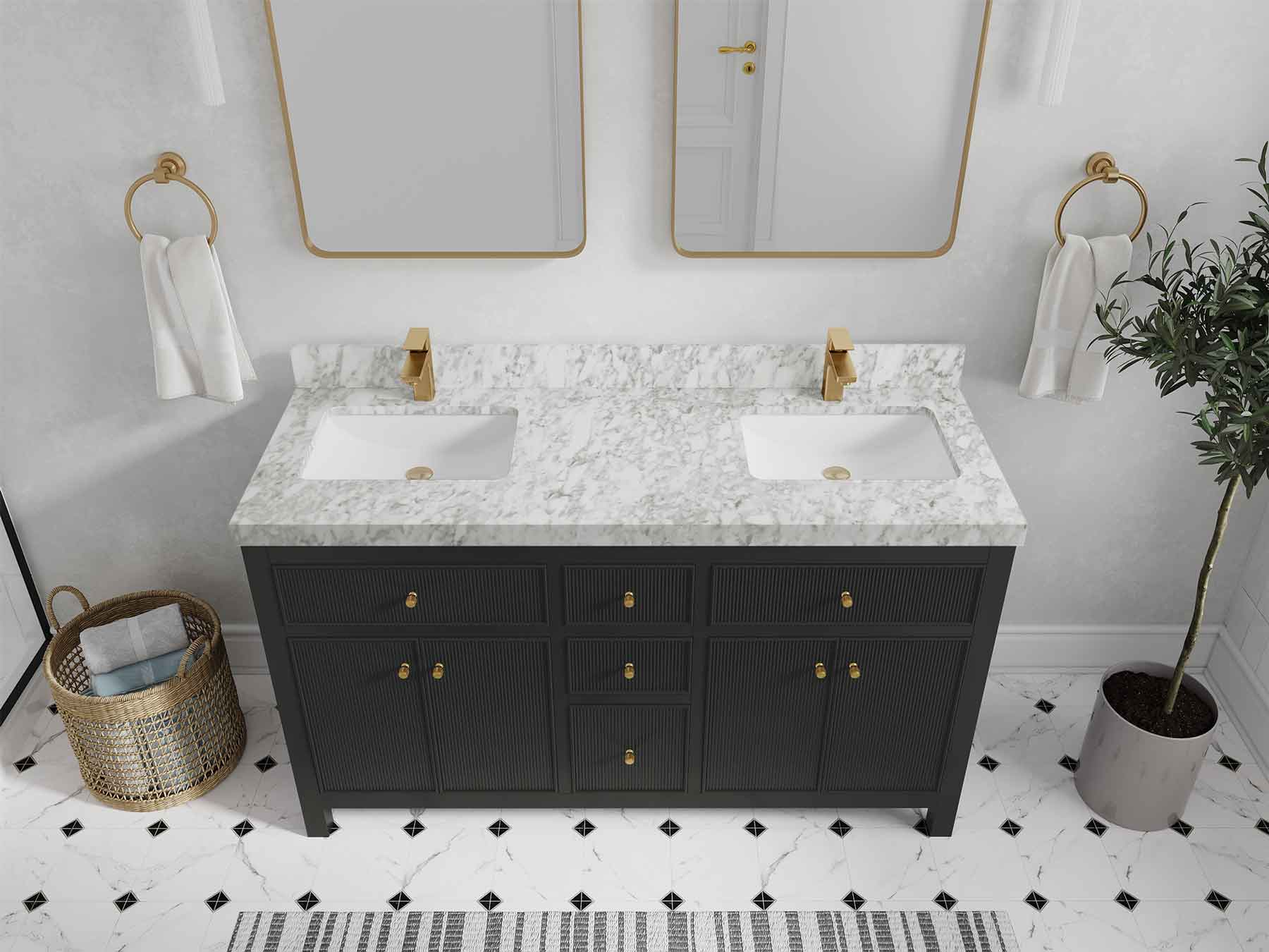 Sonoma 60 in W x 22 in D Free Standing Reeded Double Sink Bathroom Vanity | Black Top