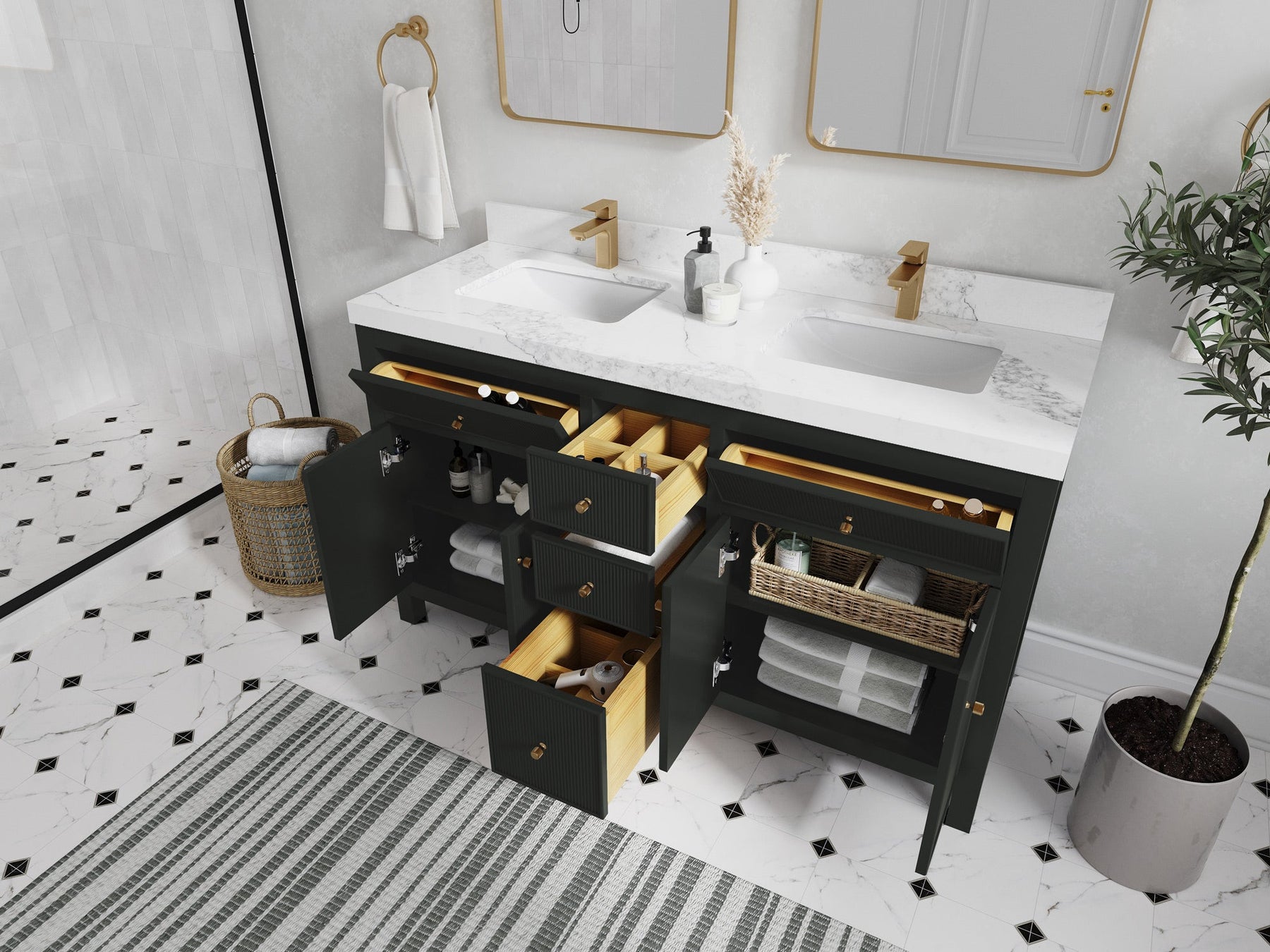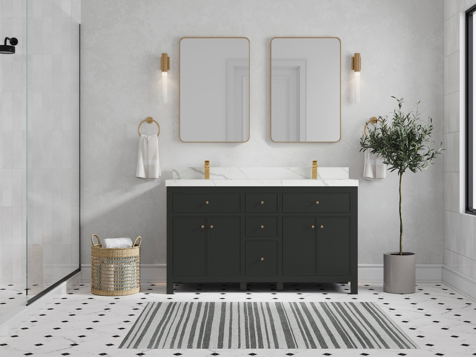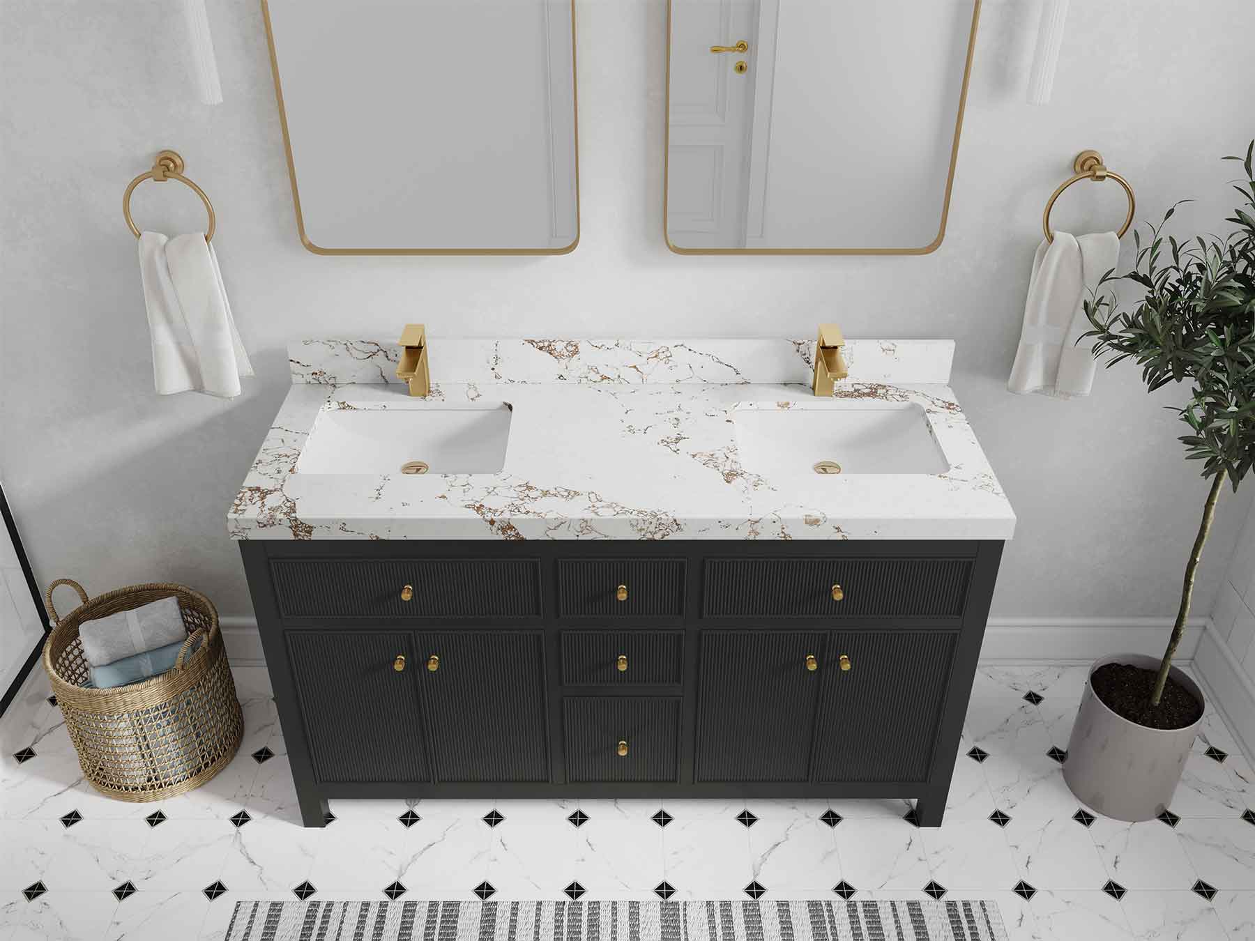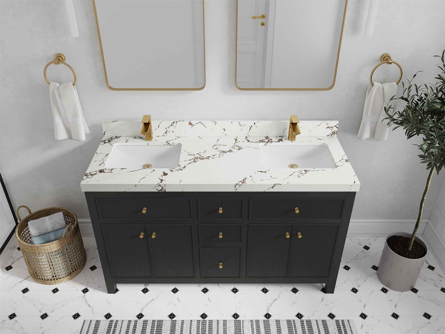 Sonoma 60 in W x 22 in D Free Standing Reeded Double Sink Bathroom Vanity | Black Top