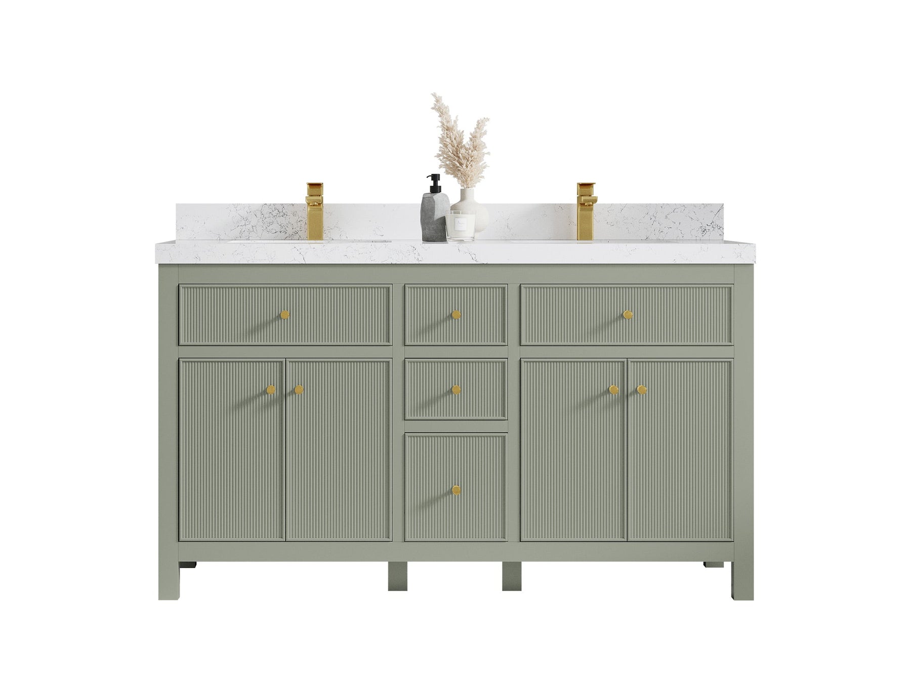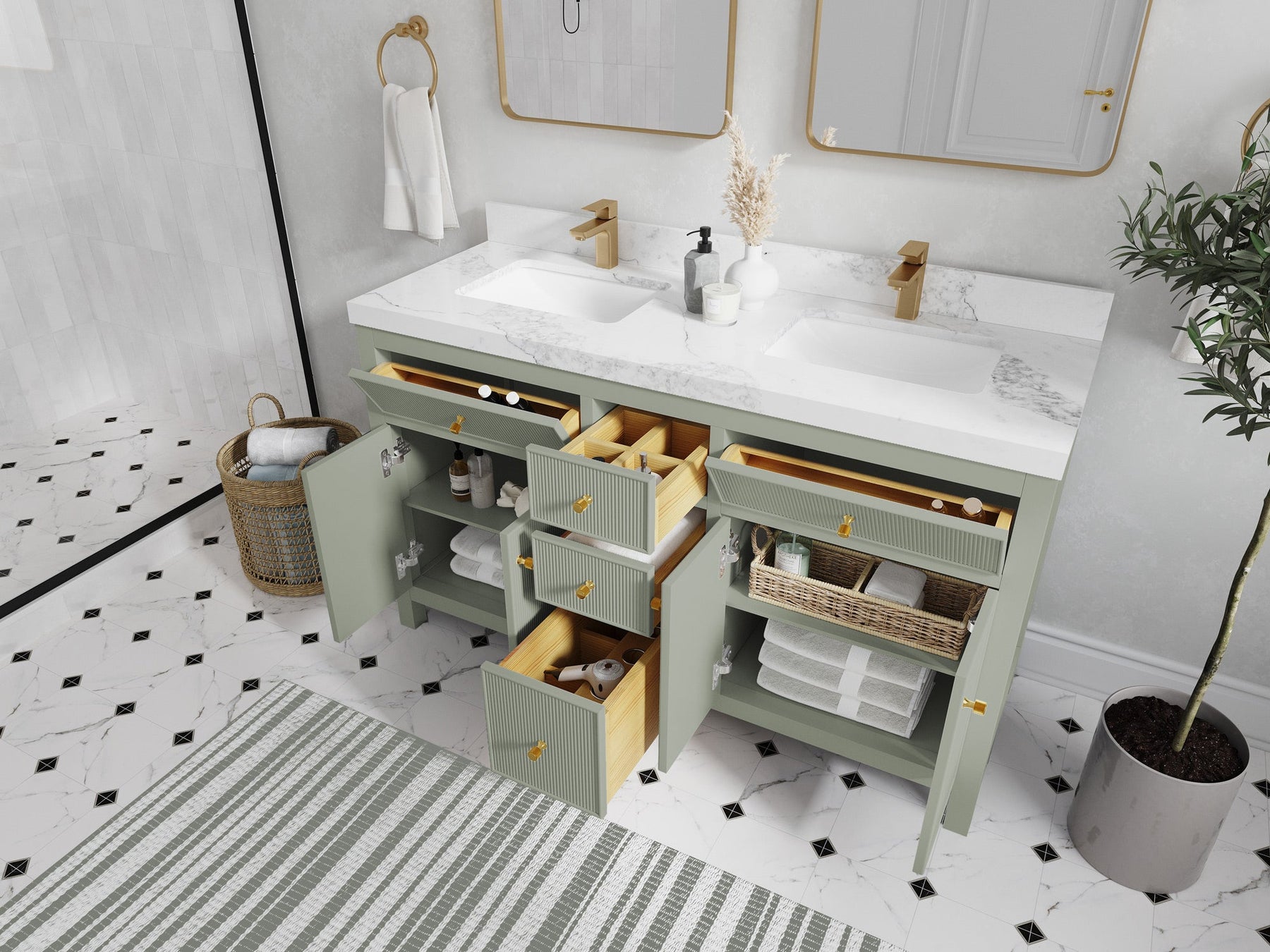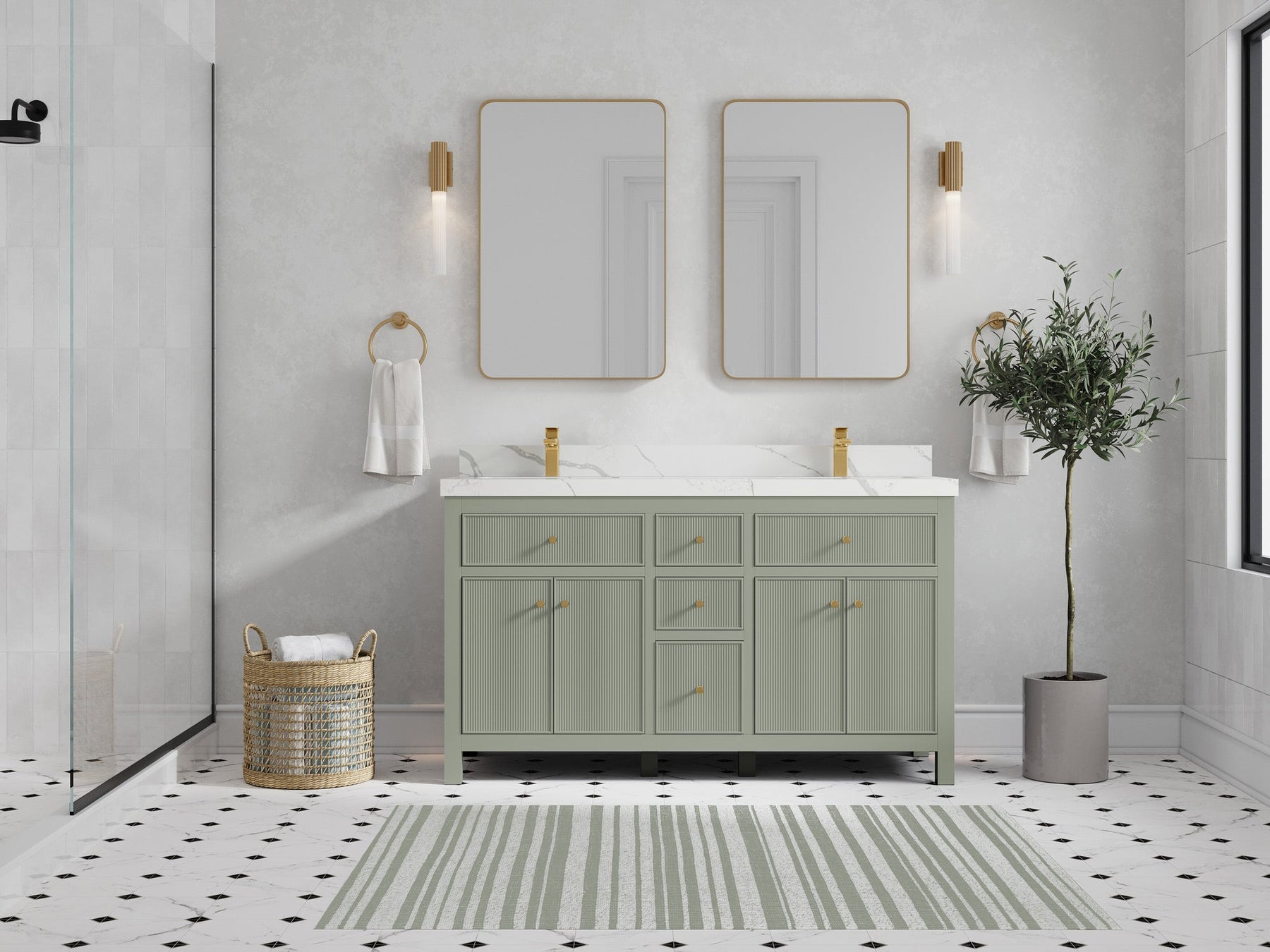 Sonoma 60 in W x 22 in D Free Standing Reeded Double Sink Bathroom Vanity | Evergreen