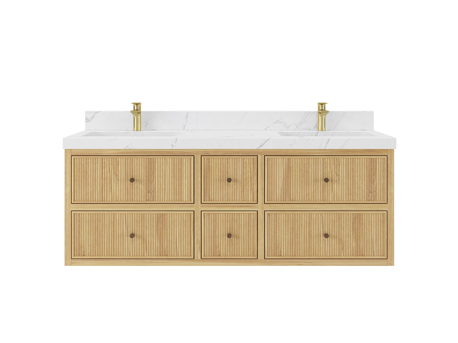 Sonoma Floating Teak 60 in. W x 22 in. D Double Sink Bathroom Vanity | Light Natural Teak