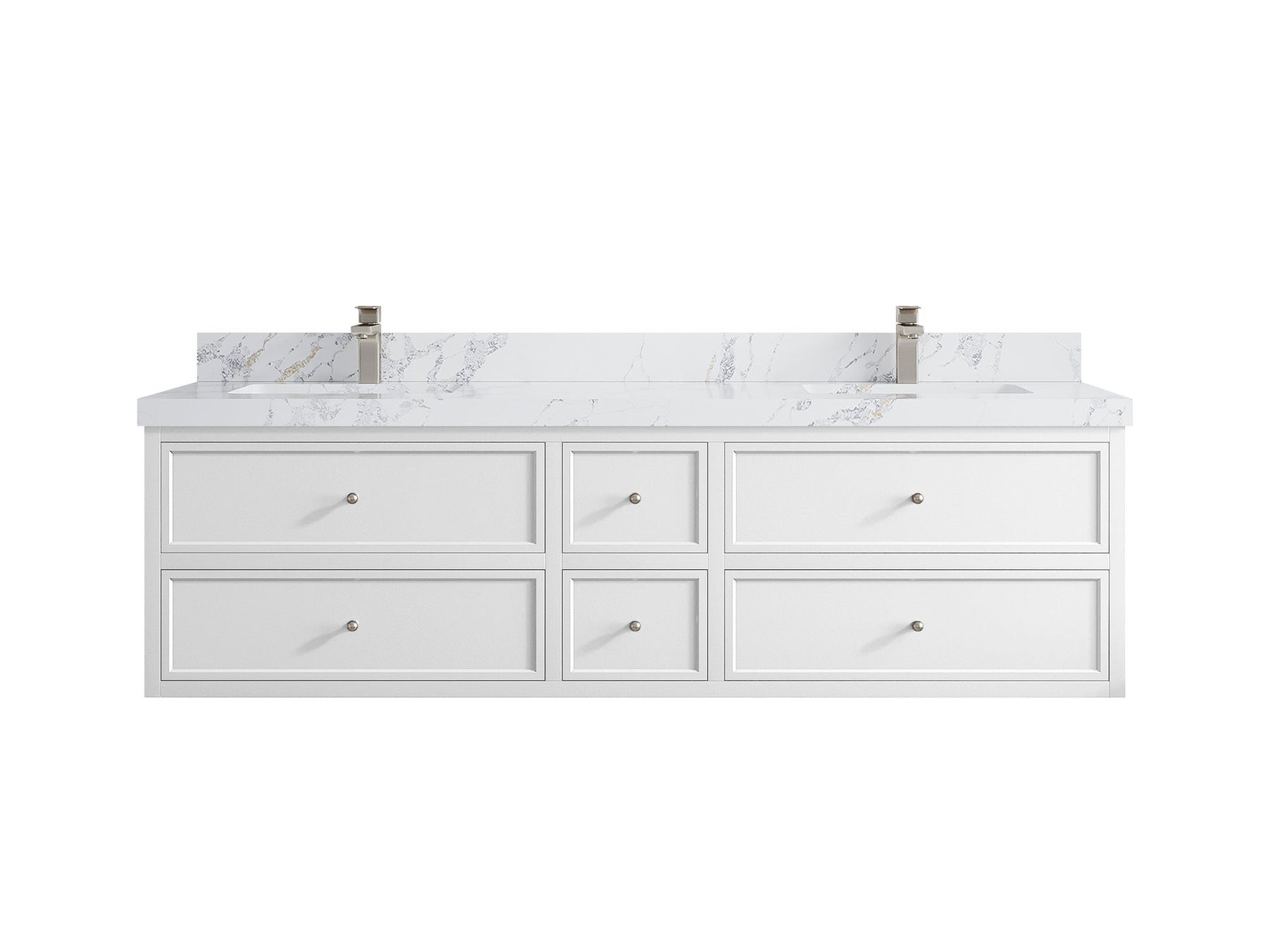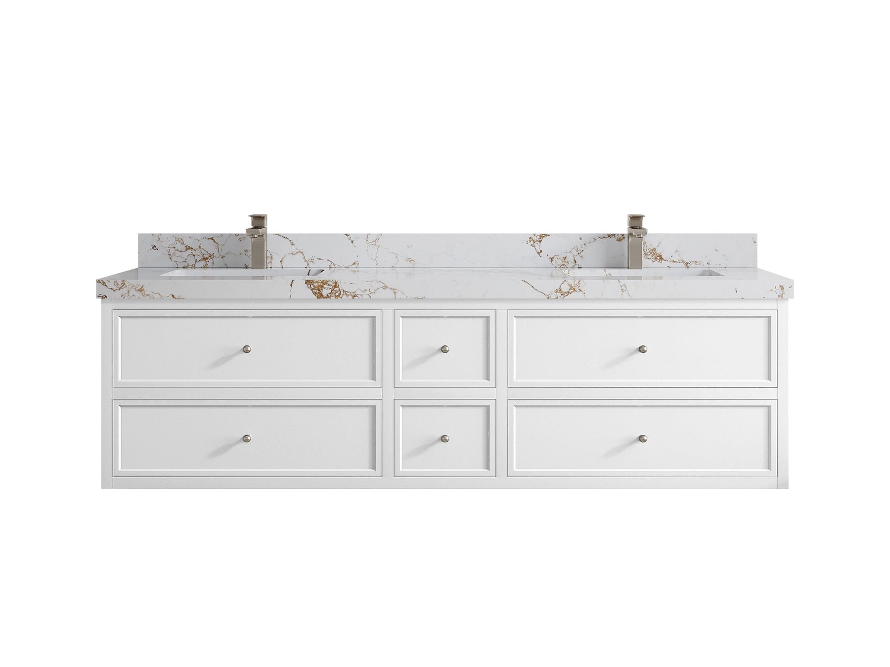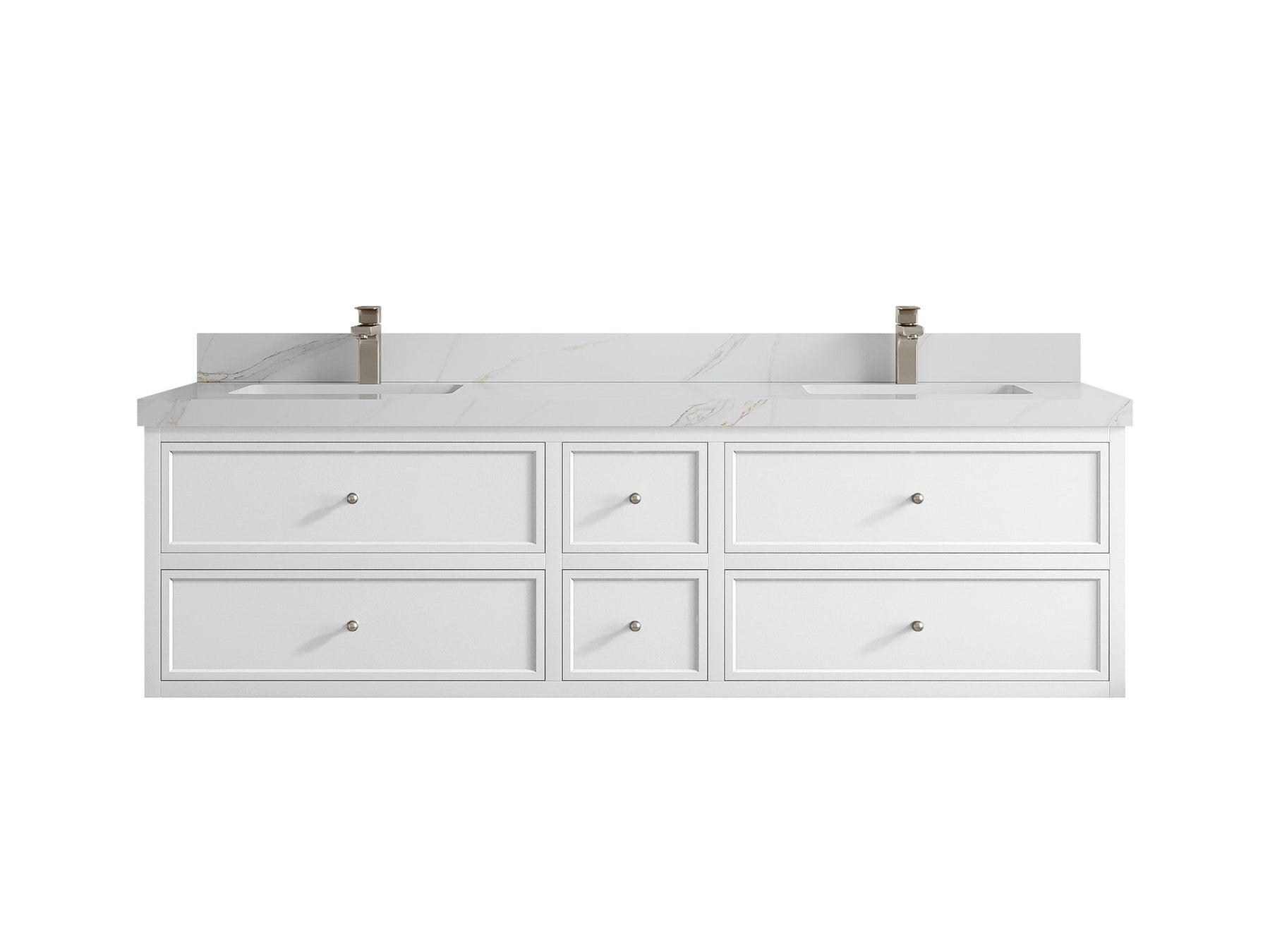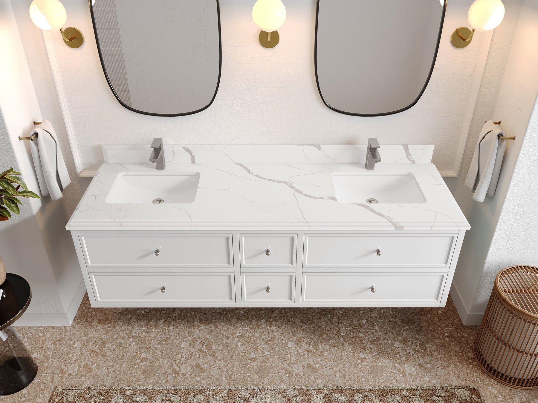 Faucet Hole(S): Comes with Single Faucet, 8 (in.) Widespread Faucet, Wall mount Faucets - Only Available for White Quartz and Carrara Quartz. (PLEASE ADD THIS CONFIGURATION UNDER COUNTERTOPS SECTION )