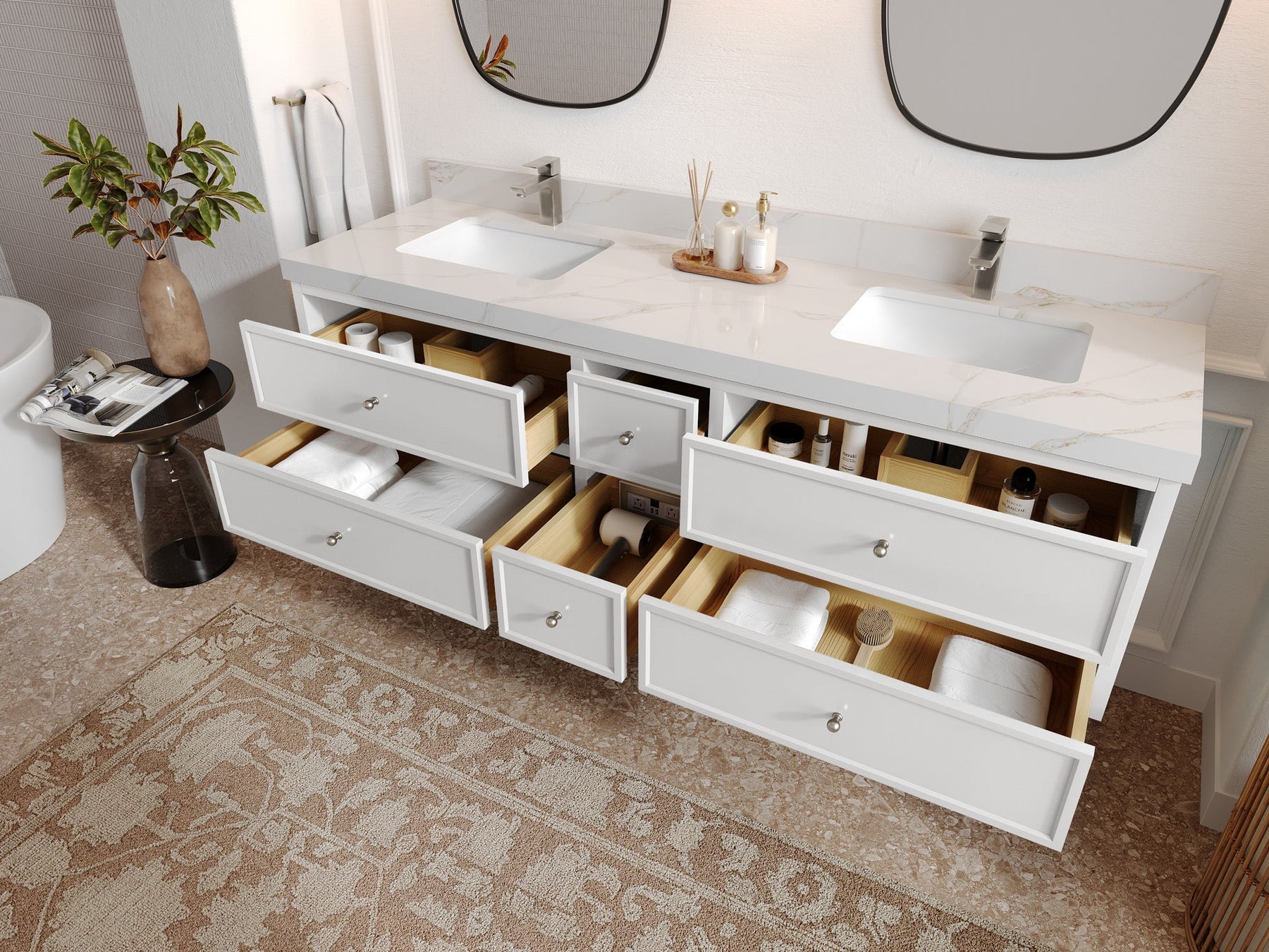 3. Soft-Close Drawers - Equipped with two spacious drawers, this vanity provides ample storage for all your bathroom essentials. The soft-close mechanism ensures a quiet and smooth operation, adding to the vanity’s premium feel.