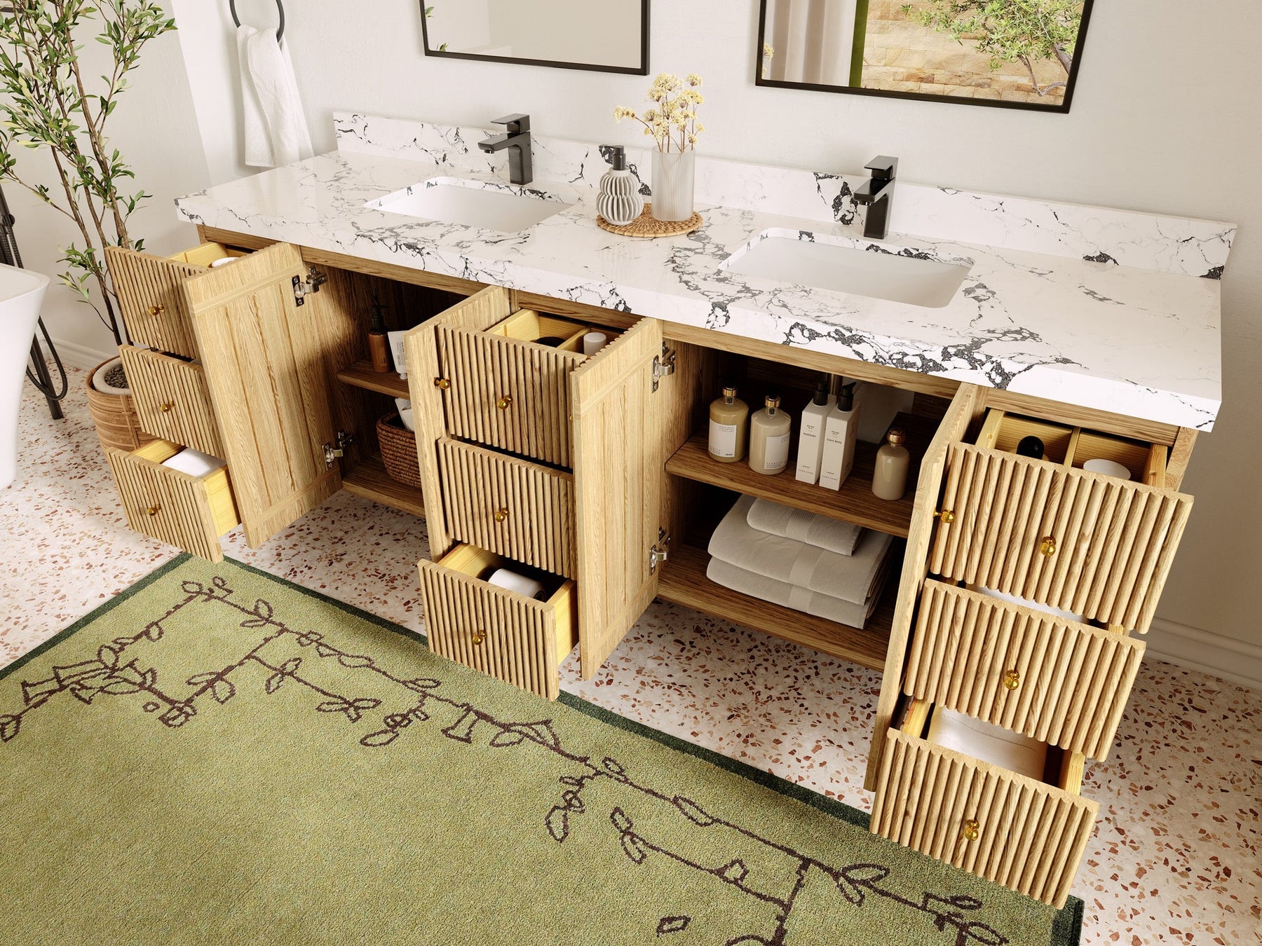 Vanity Countertops options: For Calacatta Laza Quartz, Empira White Quartz, Pure White Quartz we have 2 options Straight-Mitered Edge and Double Cove Edge; For Calacatta Nuvo Quartz, Carrara Marble, Carrara Quartz, Piatra Gray Quartz, Calacatta Black, Calacatta Gold, Venatino Quartz, Pearl Light Gray, Viola Brown, Viola Gold, Viola Night, Viola Biagio, Calacatta Sienna, Calacatta Poanazzo we only have Straight - Mitered Edge option.