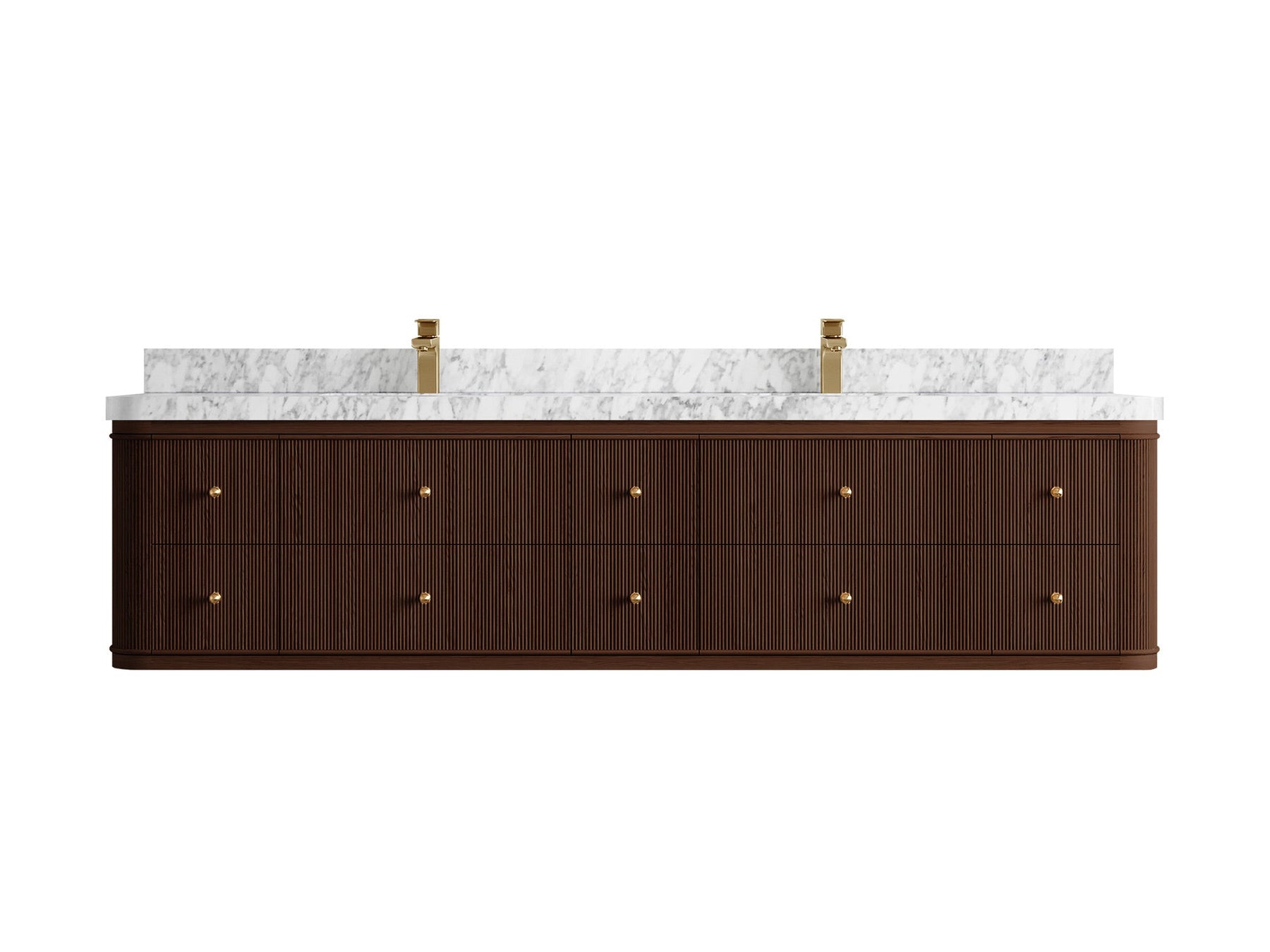 Elevate your bathroom with the Hampton Floating Teak Collection, where sleek contemporary design meets the natural warmth of fine teak wood. Featuring reeded drawer fronts, clean lines, and a luxurious white quartz countertop, this double vanity blends form and function effortlessly. The floating design creates a spacious, airy aesthetic perfect for modern interiors while maximizing storage with an elegant, minimalist appeal.