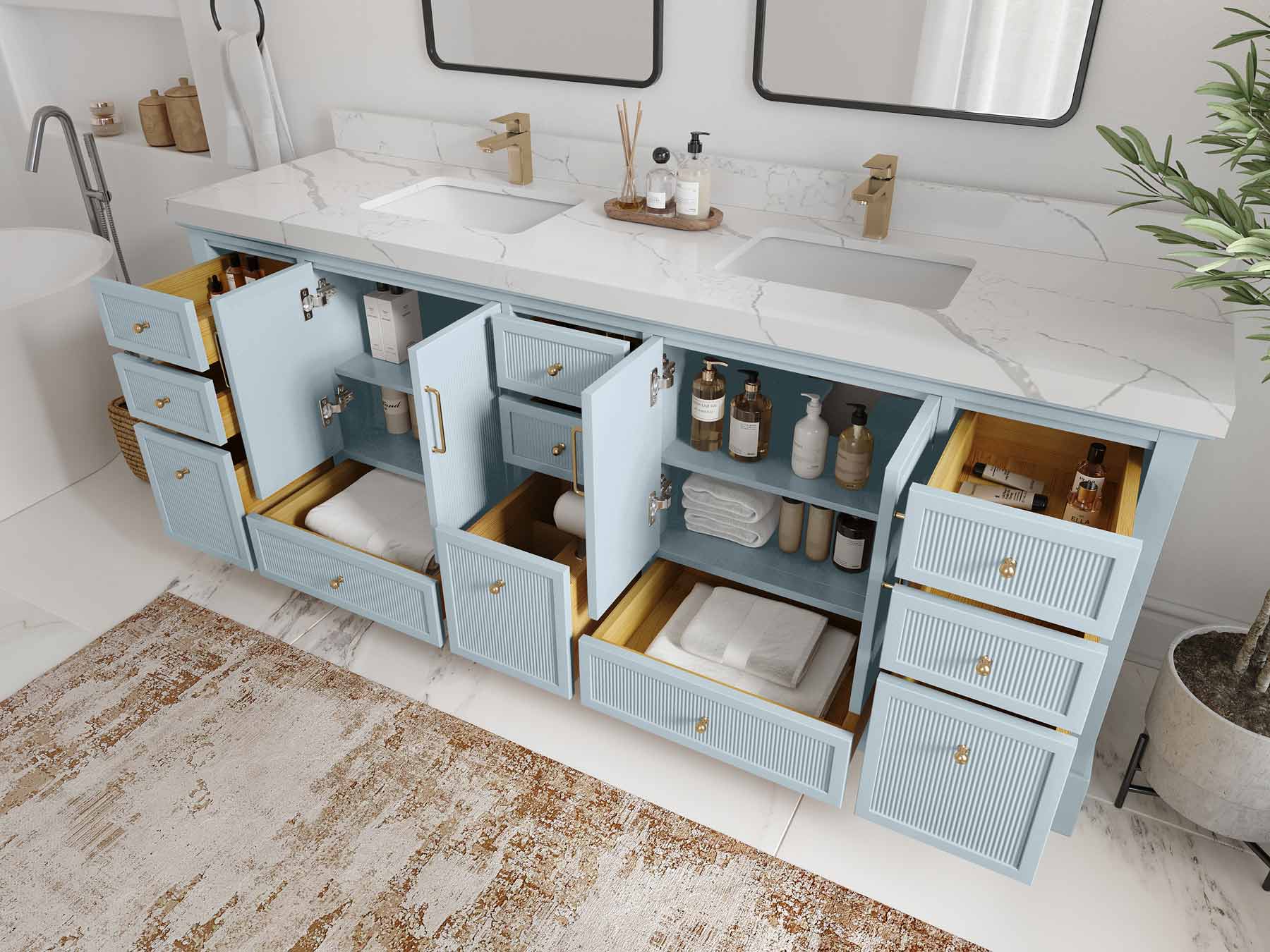 4. Ample Storage Space - The Alys Vanity comes with spacious cabinet space to store all your bathroom essentials, including towels, toiletries, and more. The soft-close drawers and doors ensure that you can access your items easily and quietly.