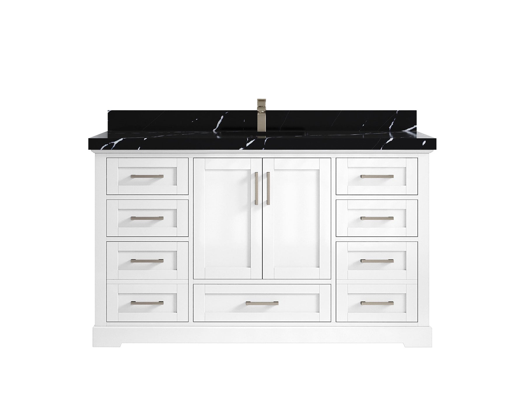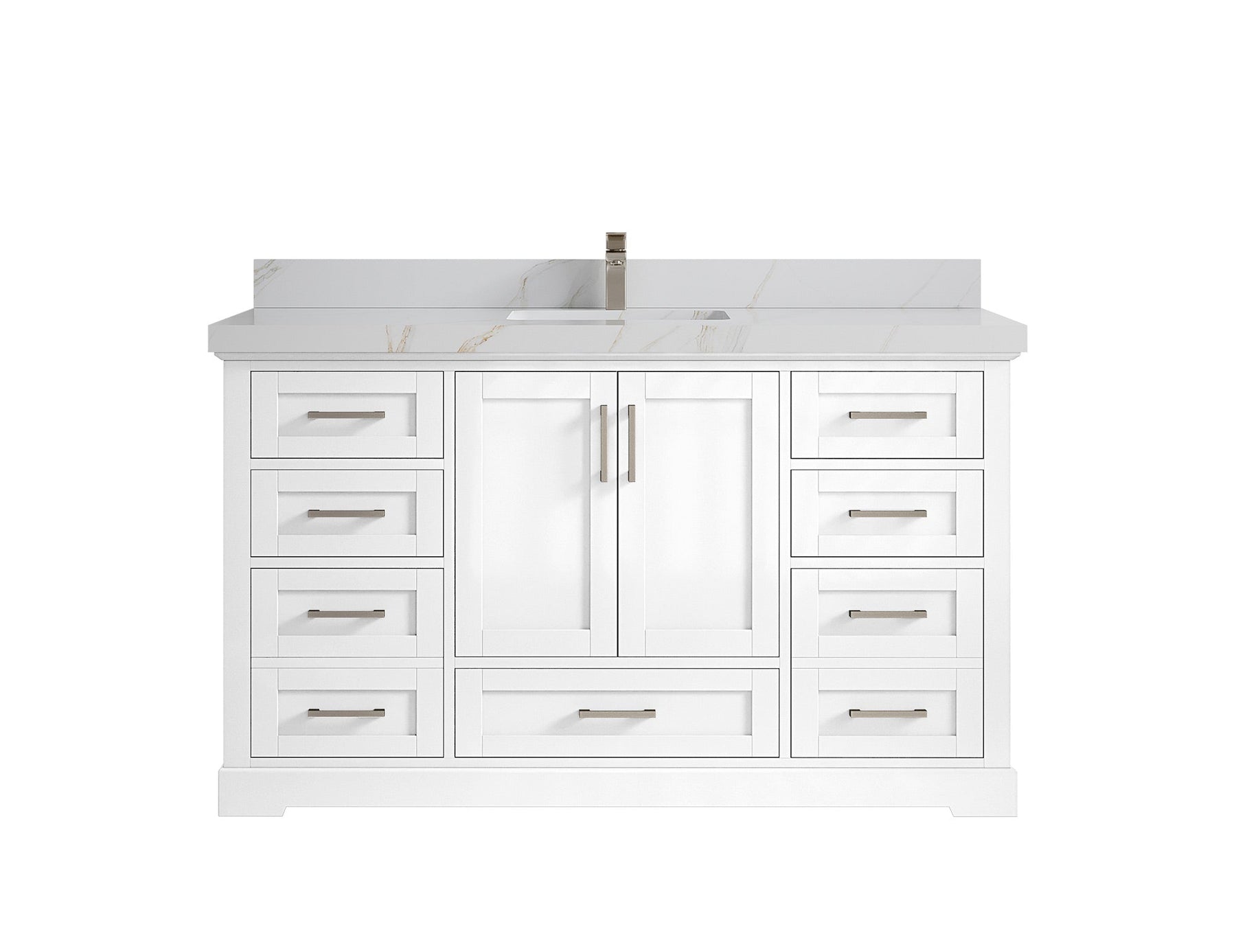Boston 60 in. W x 22 in. D Single Sink Bathroom Vanity in White with 1.5 in Double Cove Edge Empira White Quartz Countertop - Top View
