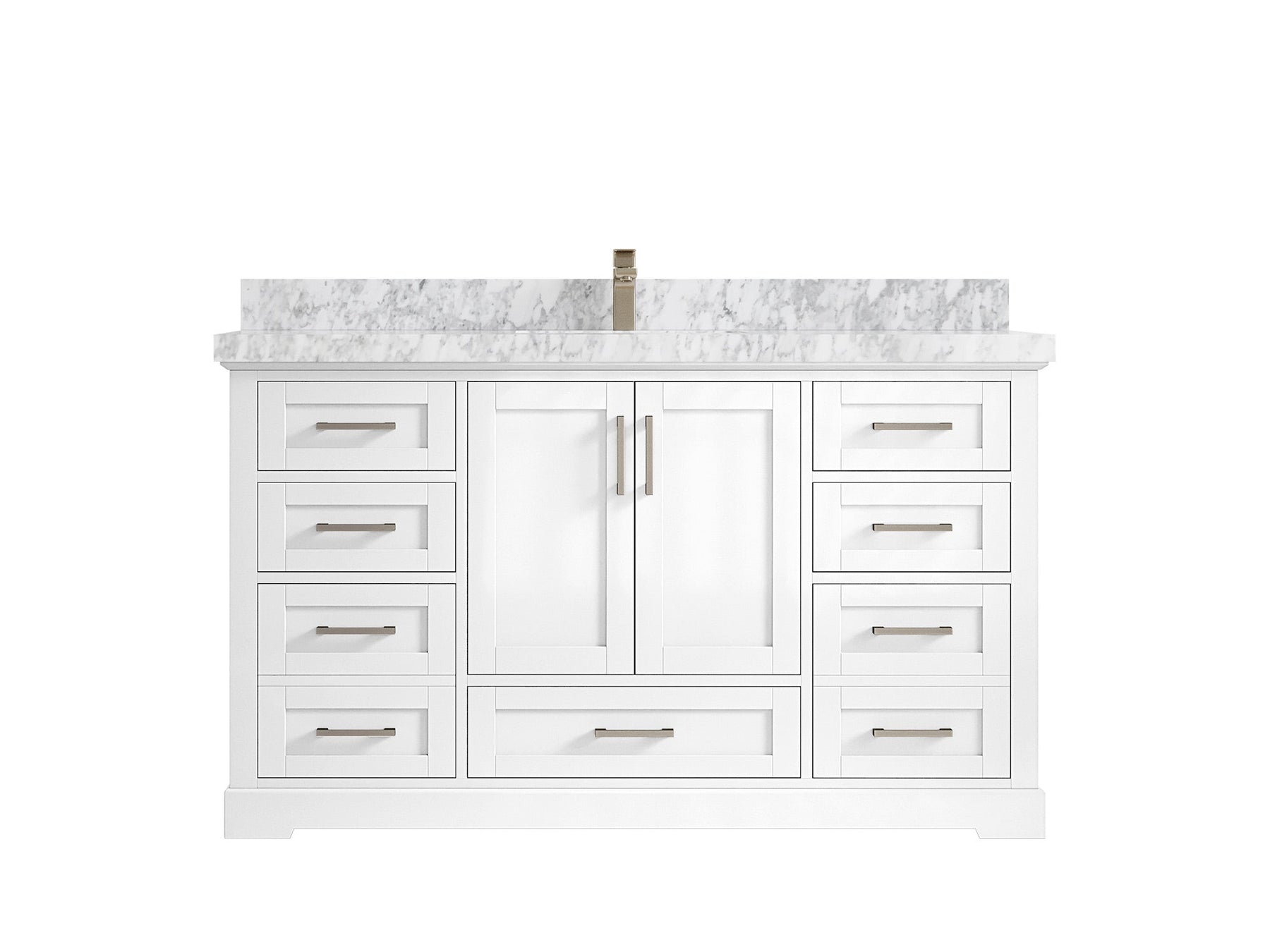 Boston 60 in. W x 22 in. D Single Sink Bathroom Vanity in White with 2 in Carrara Marble Countertop - Top View