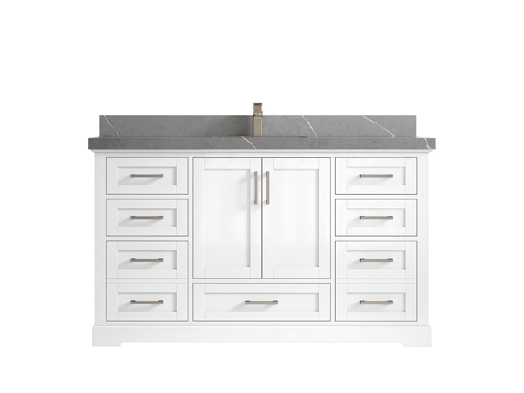 Boston 60 in. W x 22 in. D Single Sink Bathroom Vanity in White with 2 in Piatra Gray Quartz Countertop - Top View