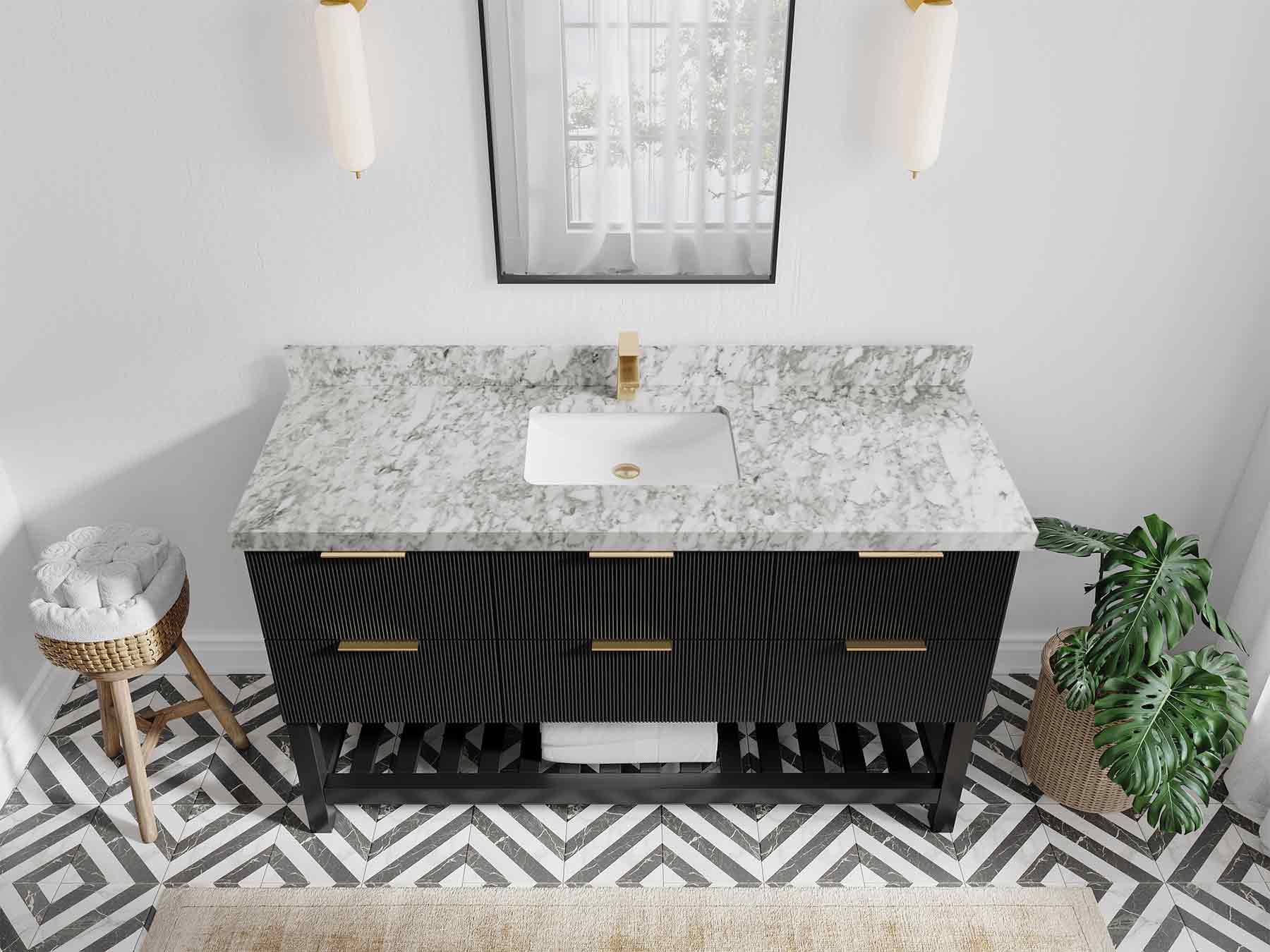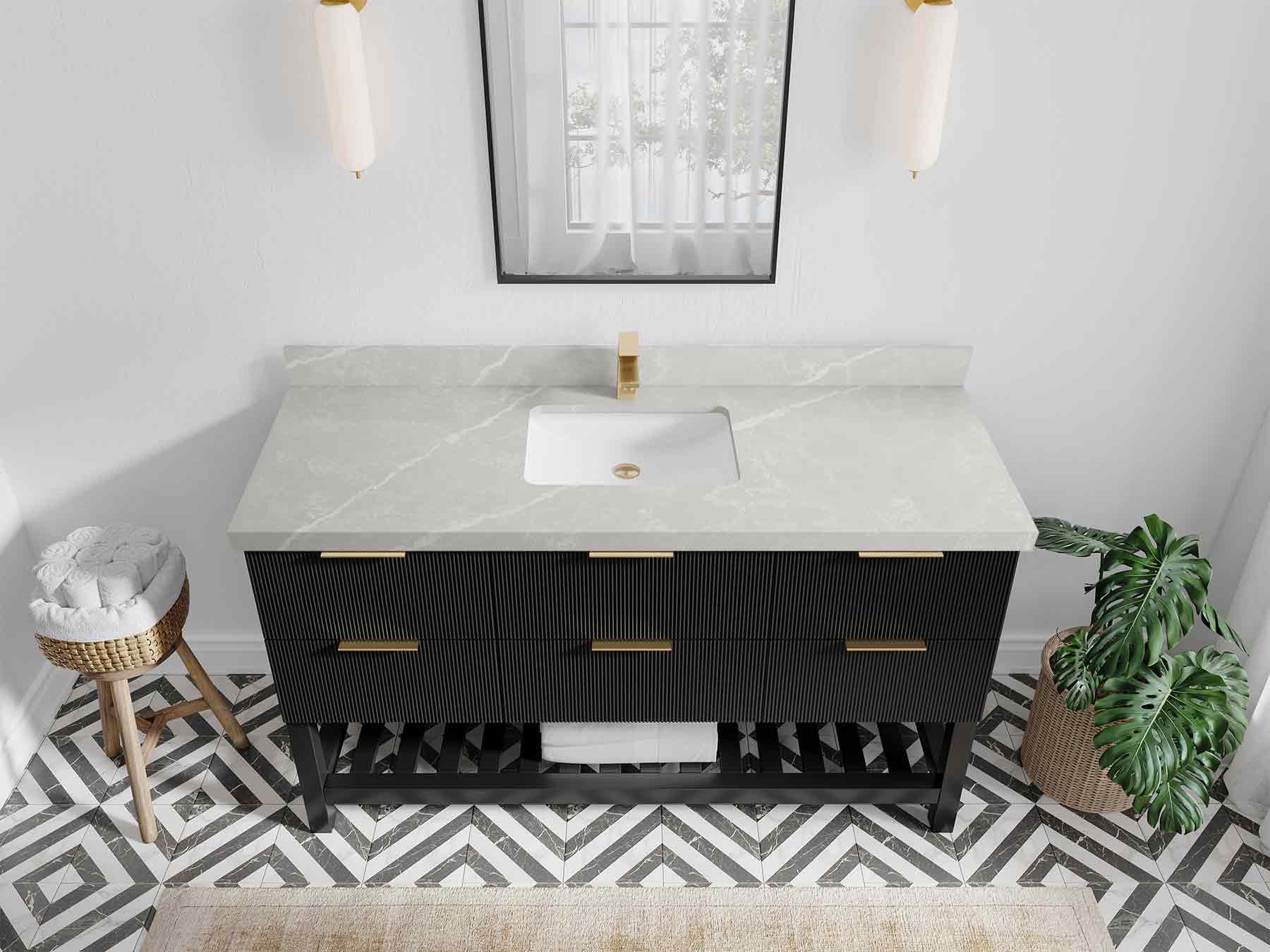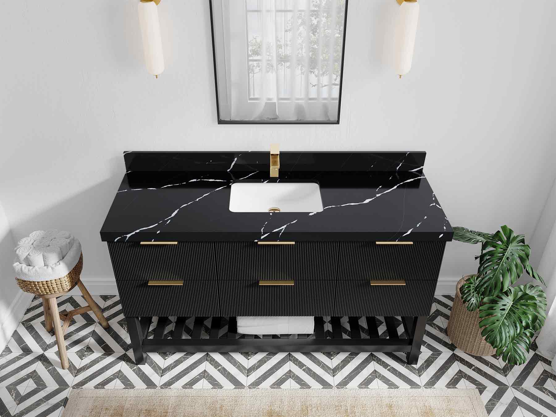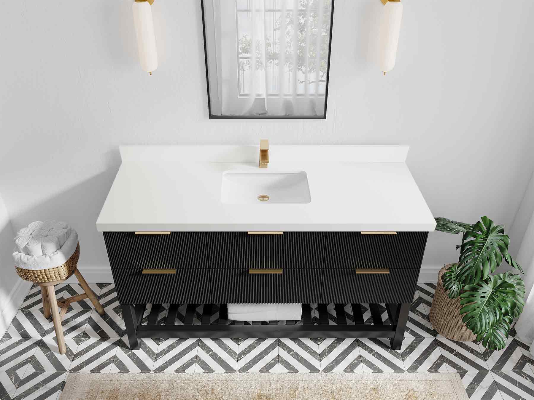 Catalina 60 in W x 22 in D Free Standing Reeded Single Sink Bathroom Vanity | Black
