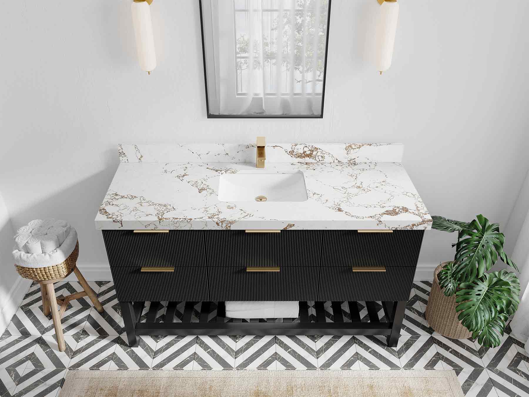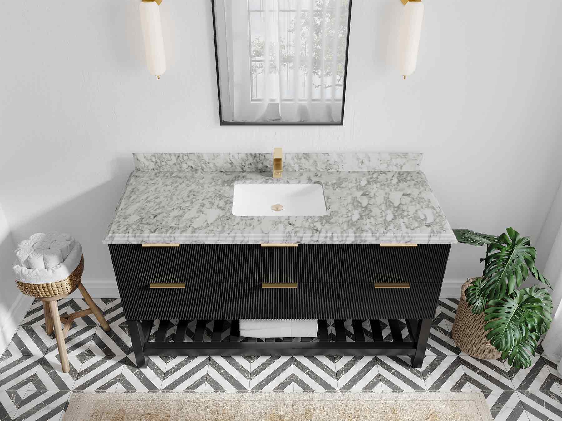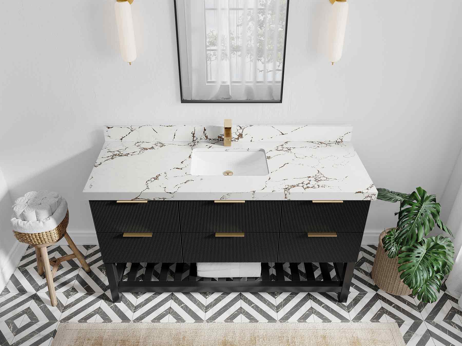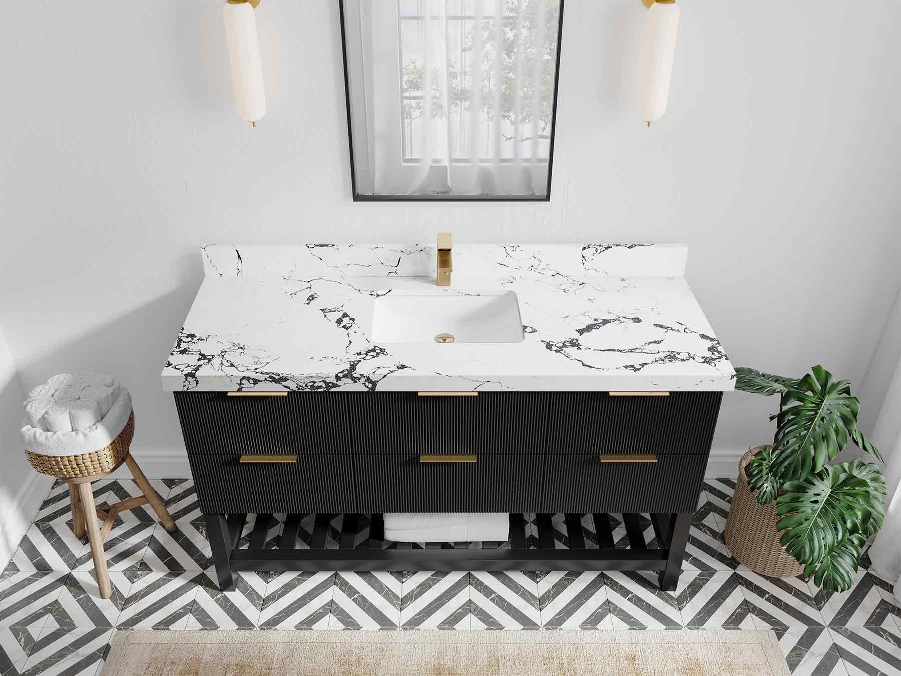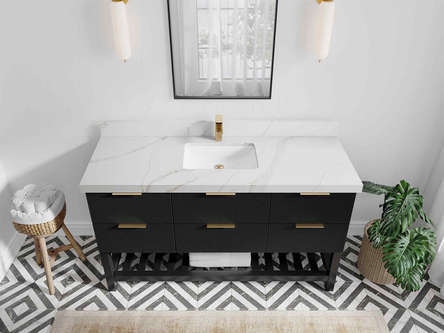 Catalina 60 in W x 22 in D Free Standing Reeded Single Sink Bathroom Vanity | Black