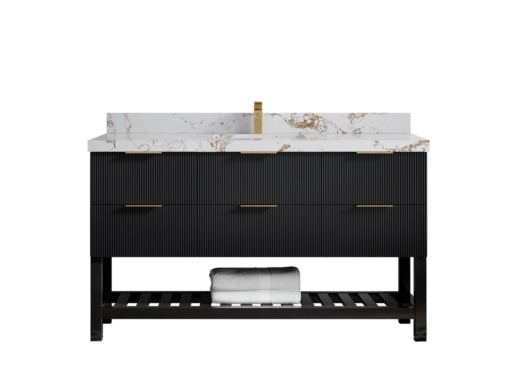 Catalina 60 in. W x 22 in. D Single Sink Bathroom Vanity in Black with 2 in Calacatta Gold Quartz Countertop
