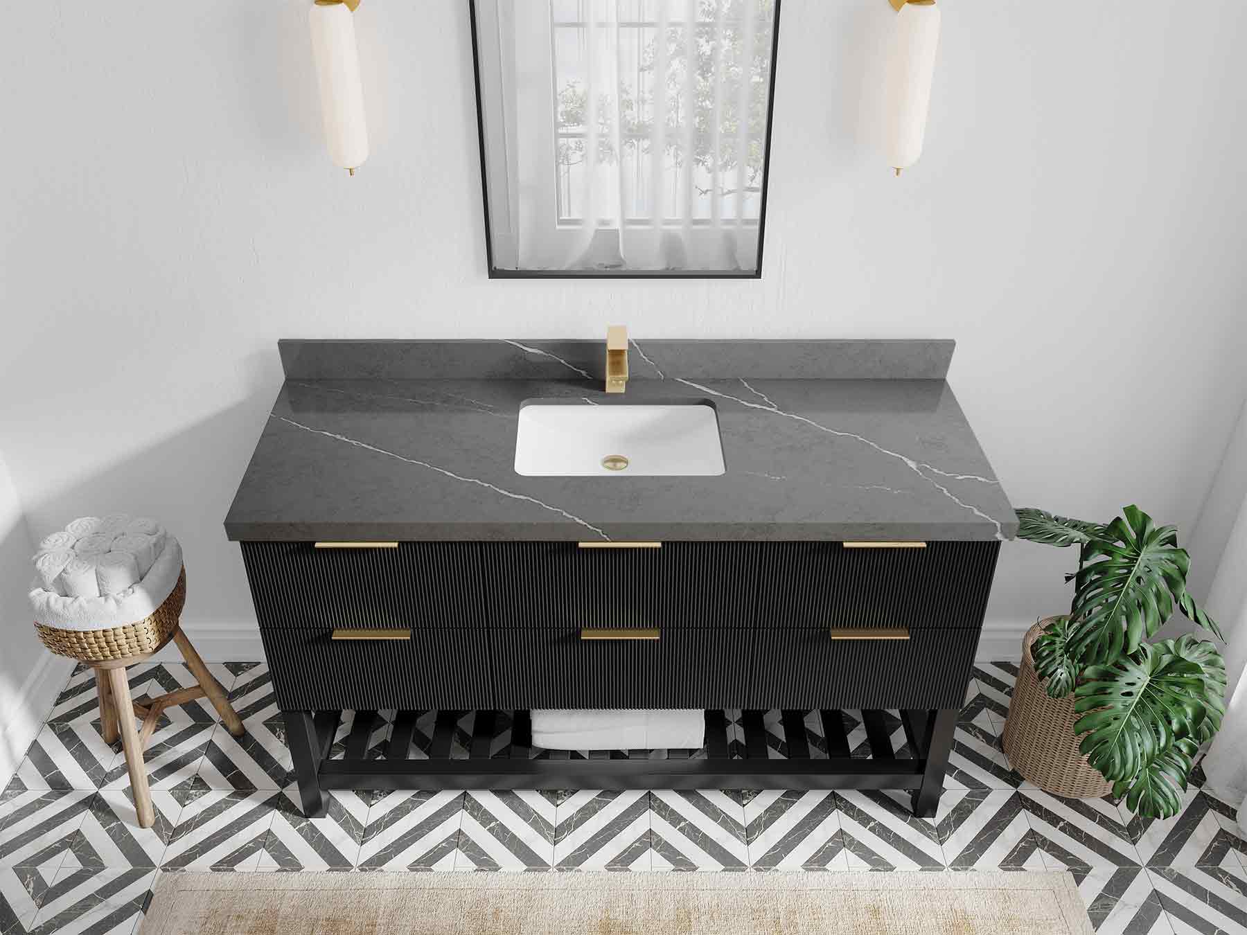 Catalina 60 in. W x 22 in. D Single Sink Bathroom Vanity in Black with Countertop - Full View