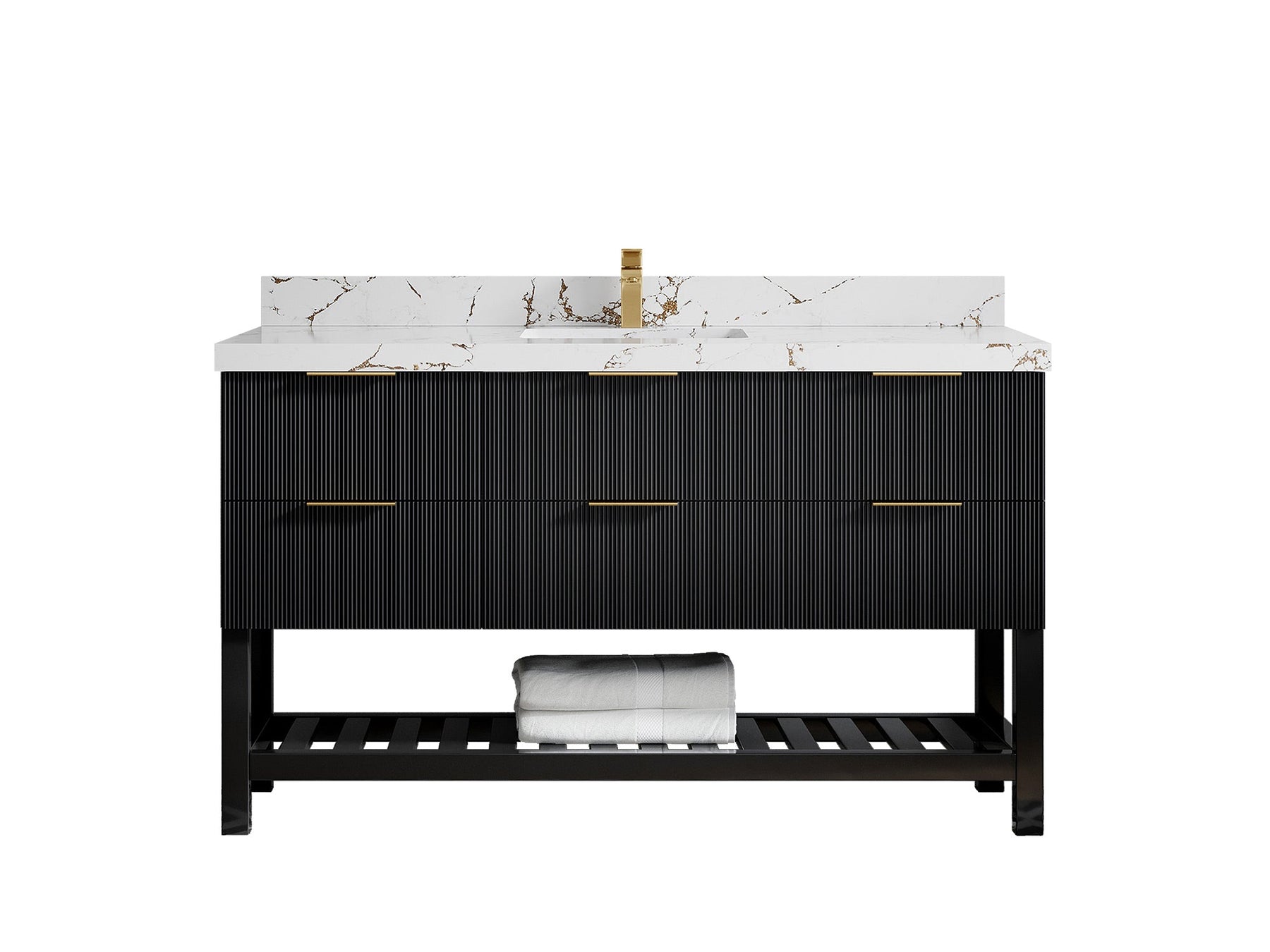 Catalina 60 in. W x 22 in. D Single Sink Bathroom Vanity in Black with 1.5 in Double Cove Edge Calacatta Laza Quartz Countertop