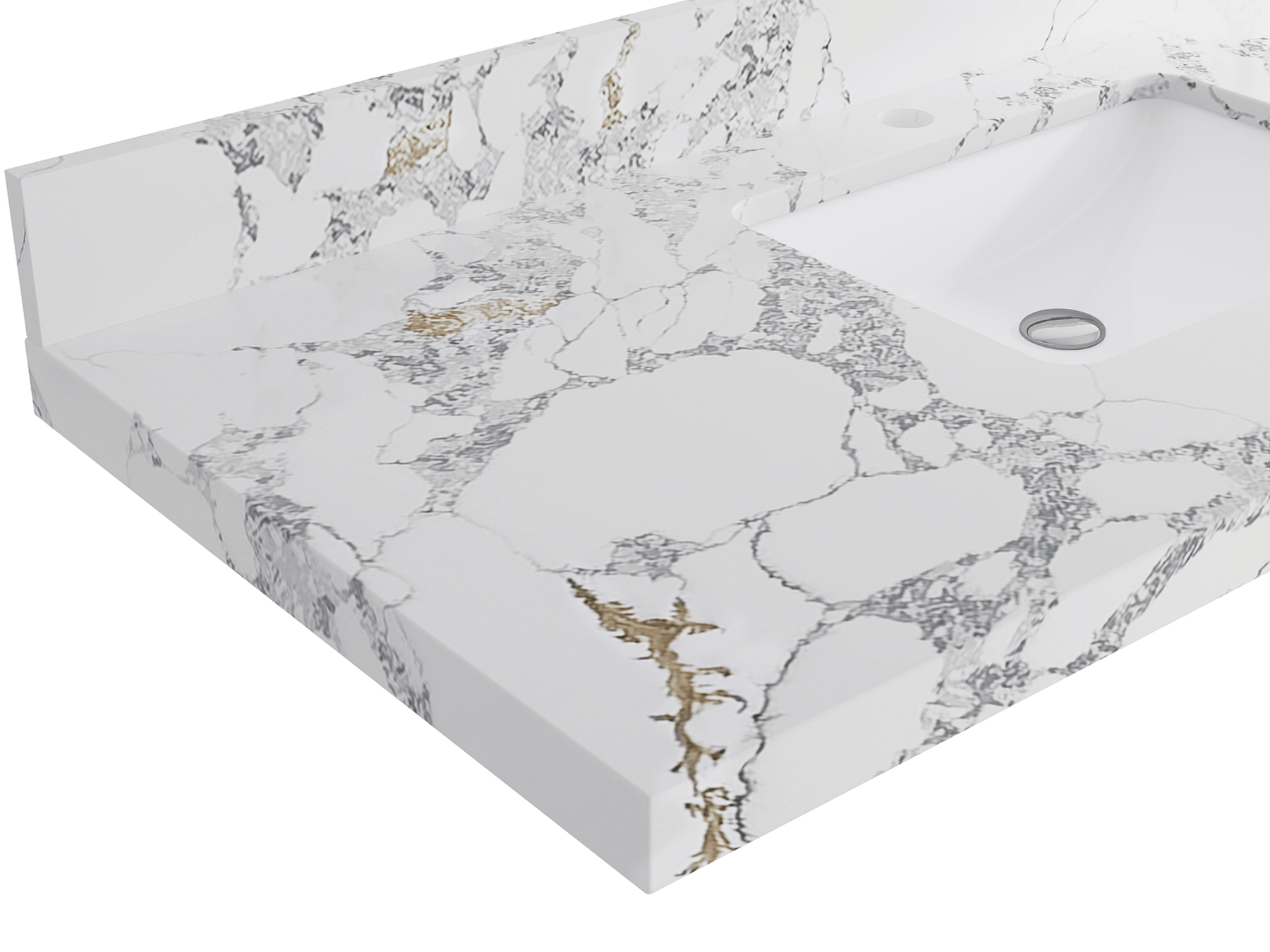 Faucet Hole(S): Comes with Single Faucet, 8 (in.) Widespread Faucet, Wall mount Faucets - Only Available for White Quartz and Carrara Quartz. (PLEASE ADD THIS CONFIGURATION UNDER COUNTERTOPS SECTION )