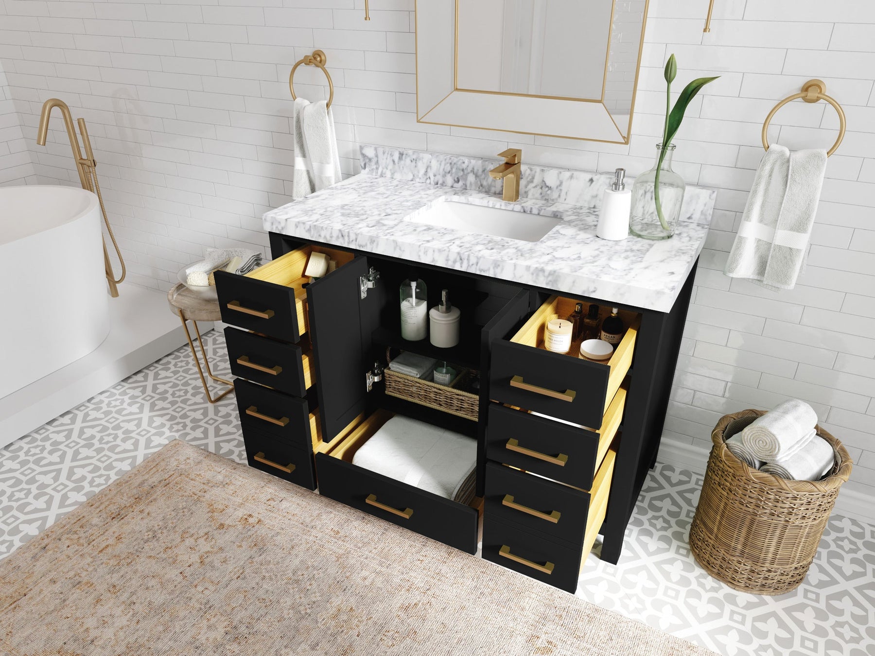 4. Plenty of storage space - this vanity comes with plenty of cabinet space to store all your bathroom essentials.
