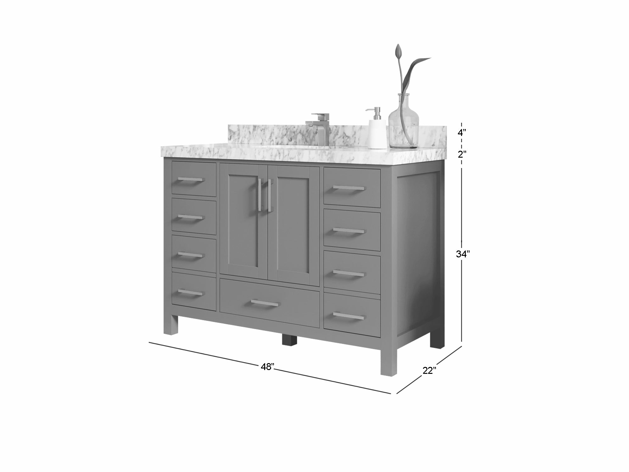 Includes cabinet base only. Countertop, sink, and faucet are not included.