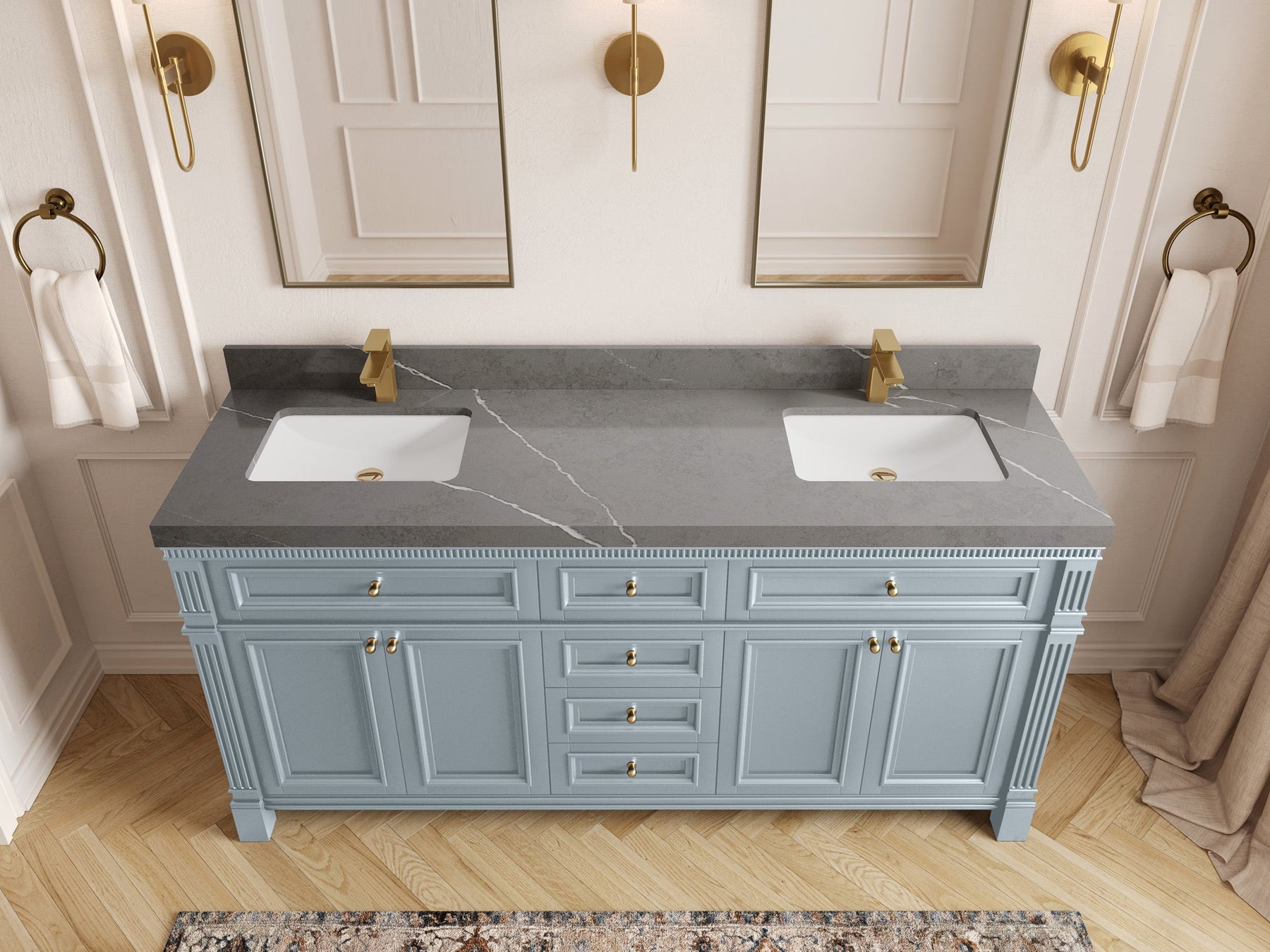 Vanity Countertops options: For Calacatta Laza Quartz, Empira White Quartz, Pure White Quartz, Palissandro Quartz we have 2 options Straight-Mitered Edge and Double Cove Edge; For Calacatta Nuvo Quartz, Carrara Marble, Carrara Quartz, Piatra Gray Quartz, Pearl Light Gray Quartz, Calacatta Black Quartz, Calacatta Gold Quartz, Calacatta Sienna Quartz, Calacatta Poanazzo Quartz, Venatino Quartz, Viola Brown Quartz, Viola Gold Quartz, Viola Night Quartz, Viola Biagio Quartz, Berkshire Brass Quartz, Frosty Carrara Quartz, Onyx Quartz, Terrazzo Golden Dusk we have Straight - Mitered Edge option.