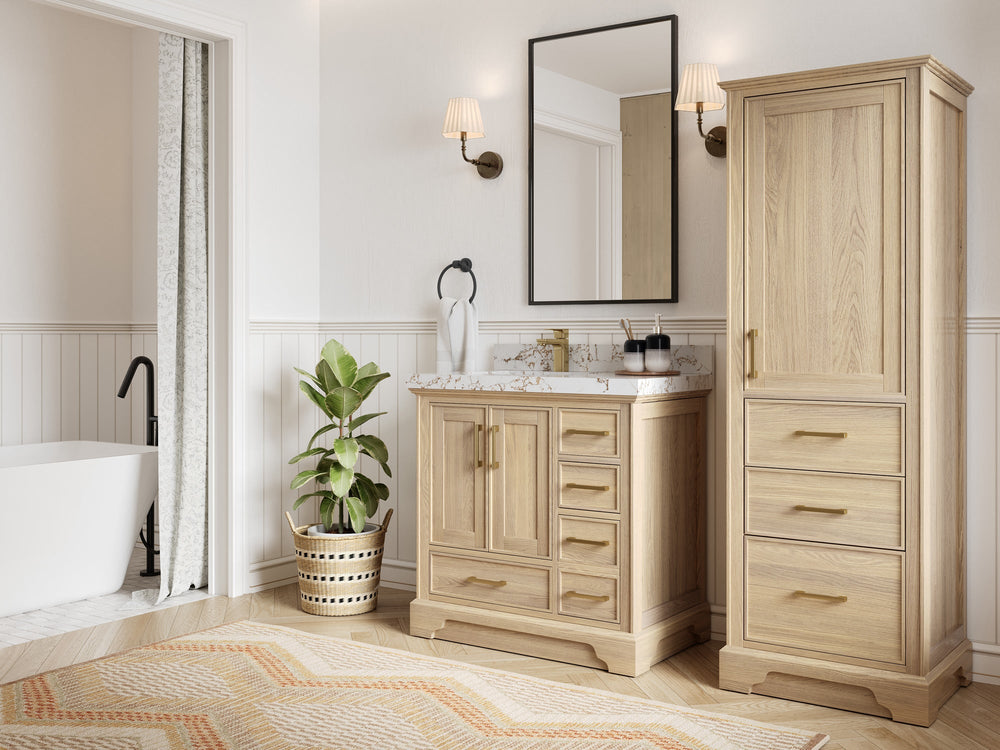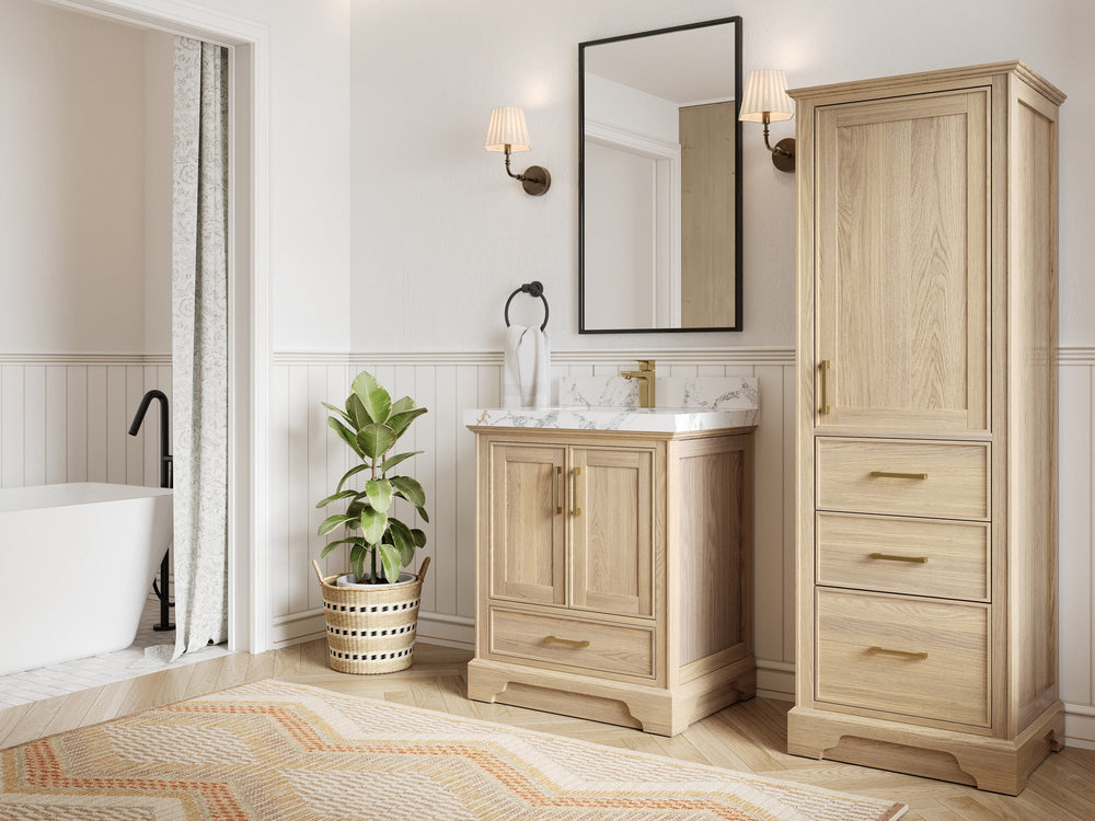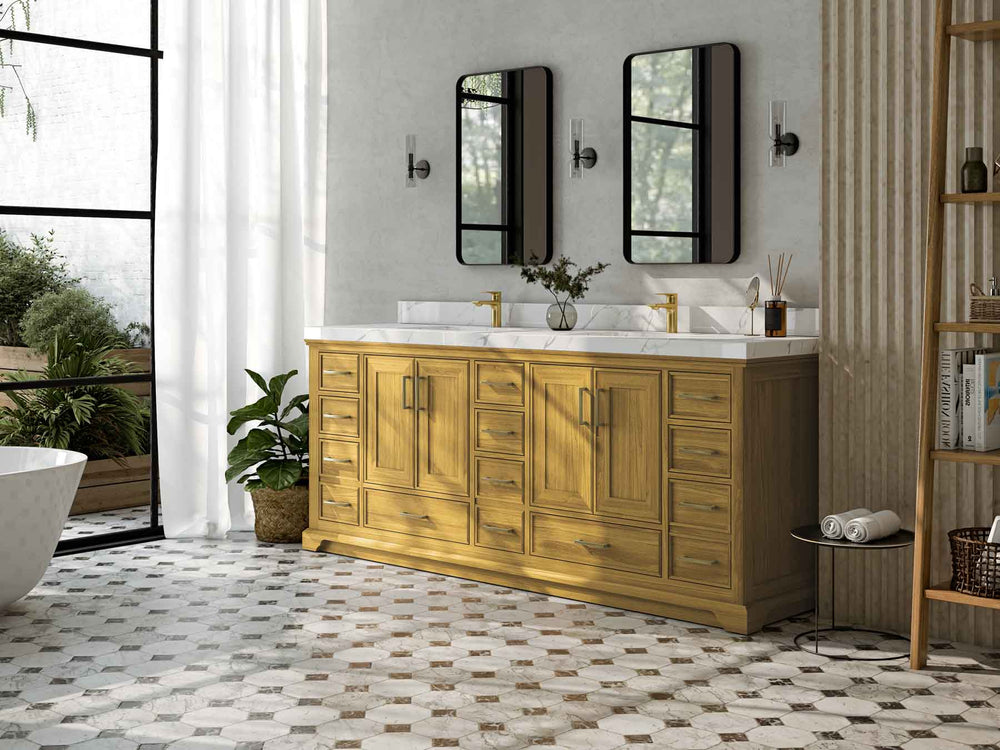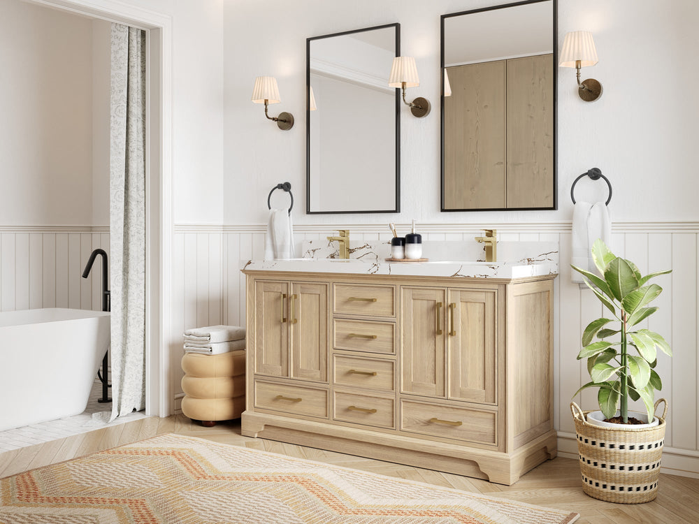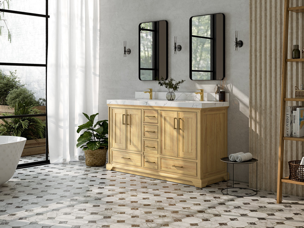 Premium Wood & Finishes – White Oak (natural grain), Teak (warm coastal), or painted hardwood. (White‑oak and teak vanities are strong, high‑intent categories across retailers.)