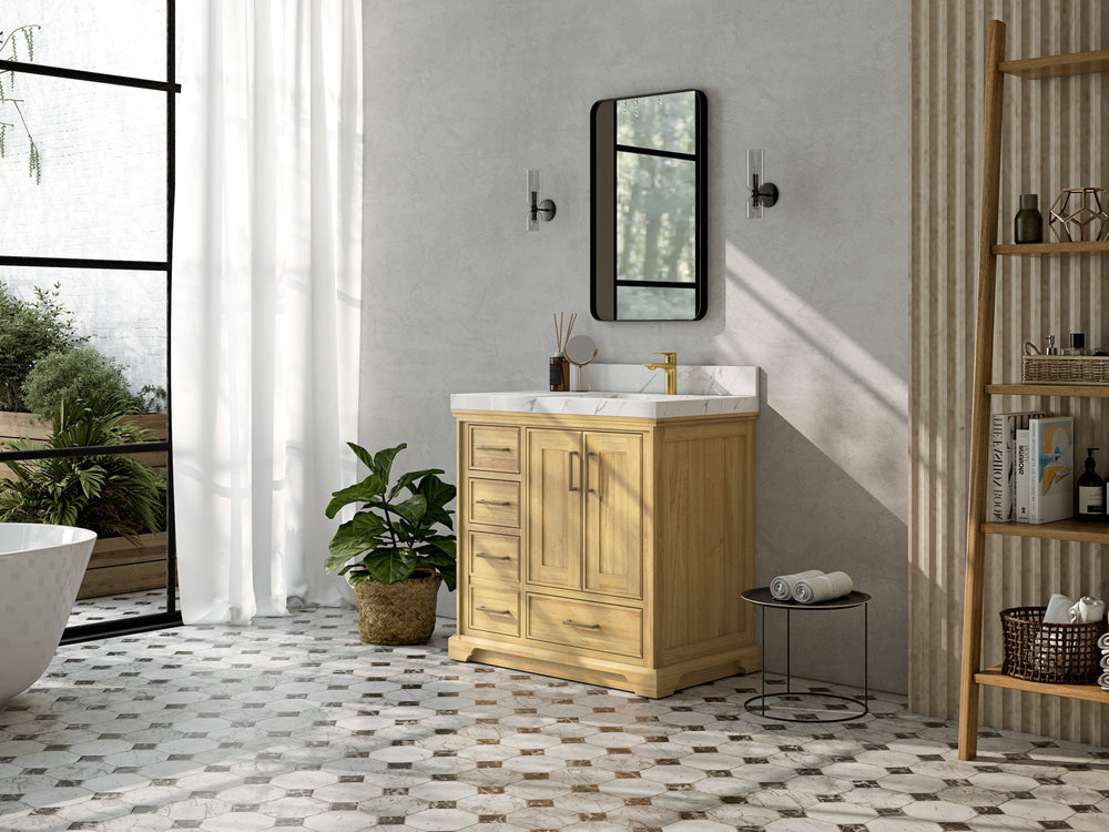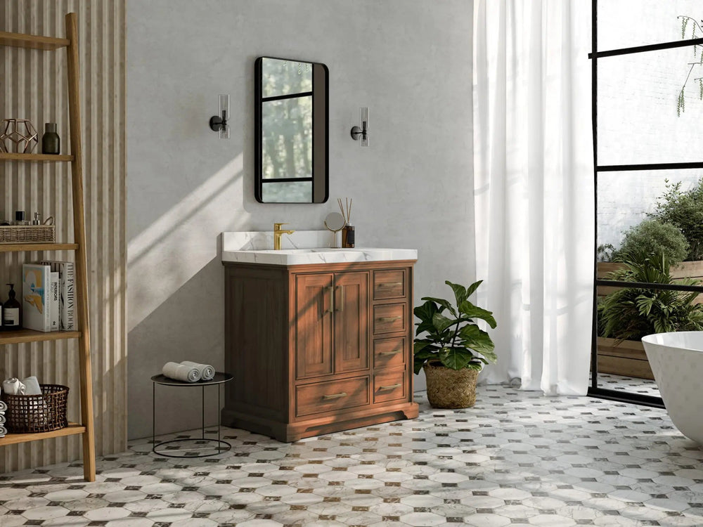 Charlotte 36 in. W x 22 in. D Left Offset Sink Bathroom Teak Wood Vanity
