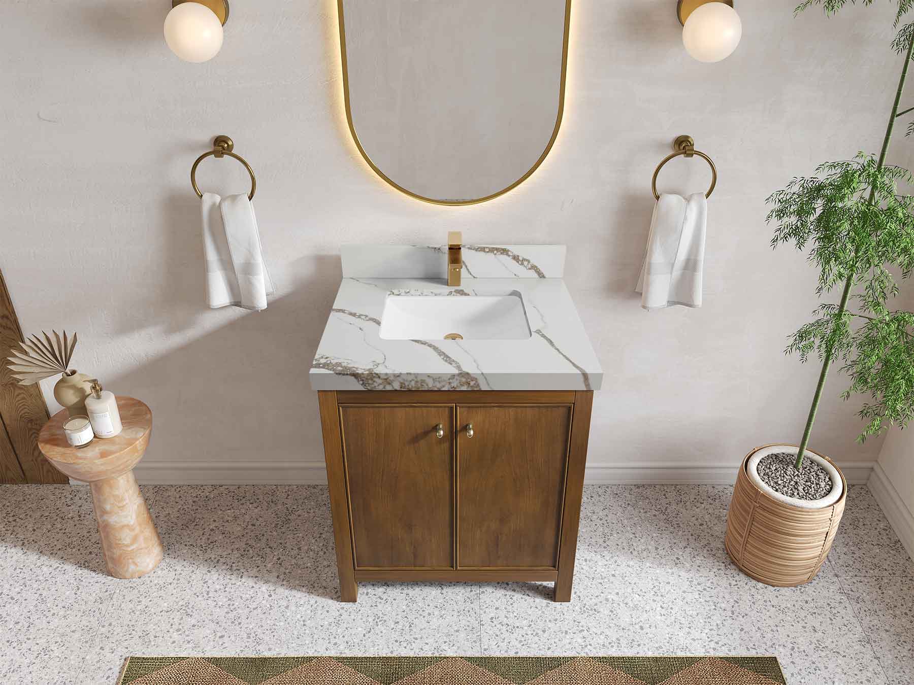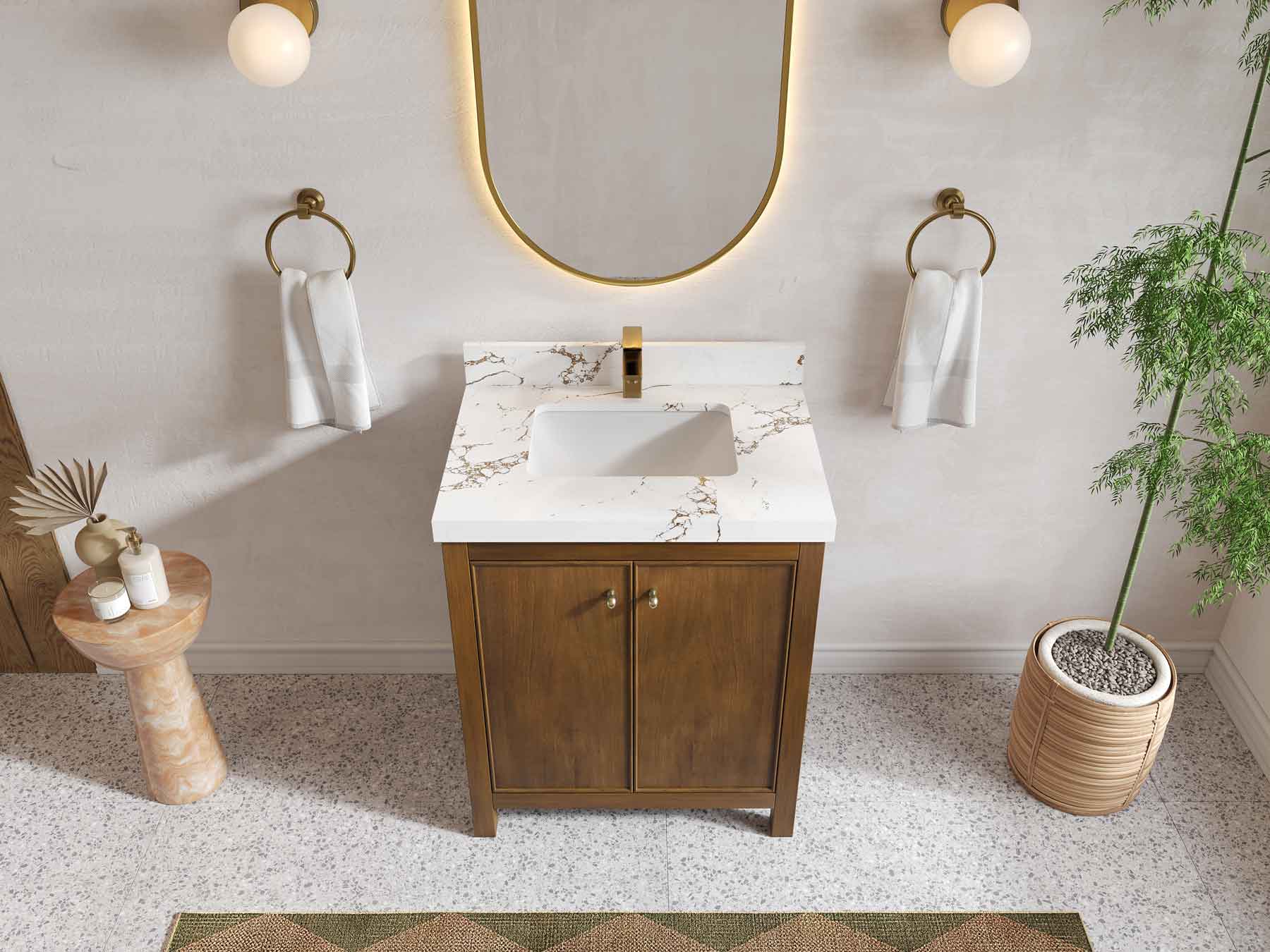 Vanity Countertops options: For Calacatta Laza Quartz, Empira White Quartz, Pure White Quartz, Palissandro Quartz we have 2 options Straight-Mitered Edge and Double Cove Edge; For Calacatta Nuvo Quartz, Carrara Marble, Carrara Quartz, Piatra Gray Quartz, Pearl Light Gray Quartz, Calacatta Black Quartz, Calacatta Gold Quartz, Calacatta Sienna Quartz, Calacatta Poanazzo Quartz, Venatino Quartz, Viola Brown Quartz, Viola Gold Quartz, Viola Night Quartz, Viola Biagio Quartz, Berkshire Brass Quartz, Frosty Carrara Quartz, Onyx Quartz we have Straight - Mitered Edge option.