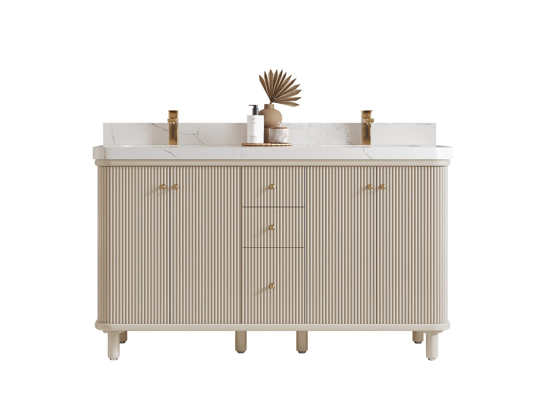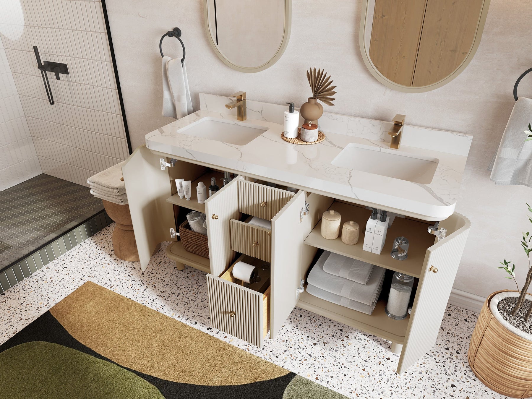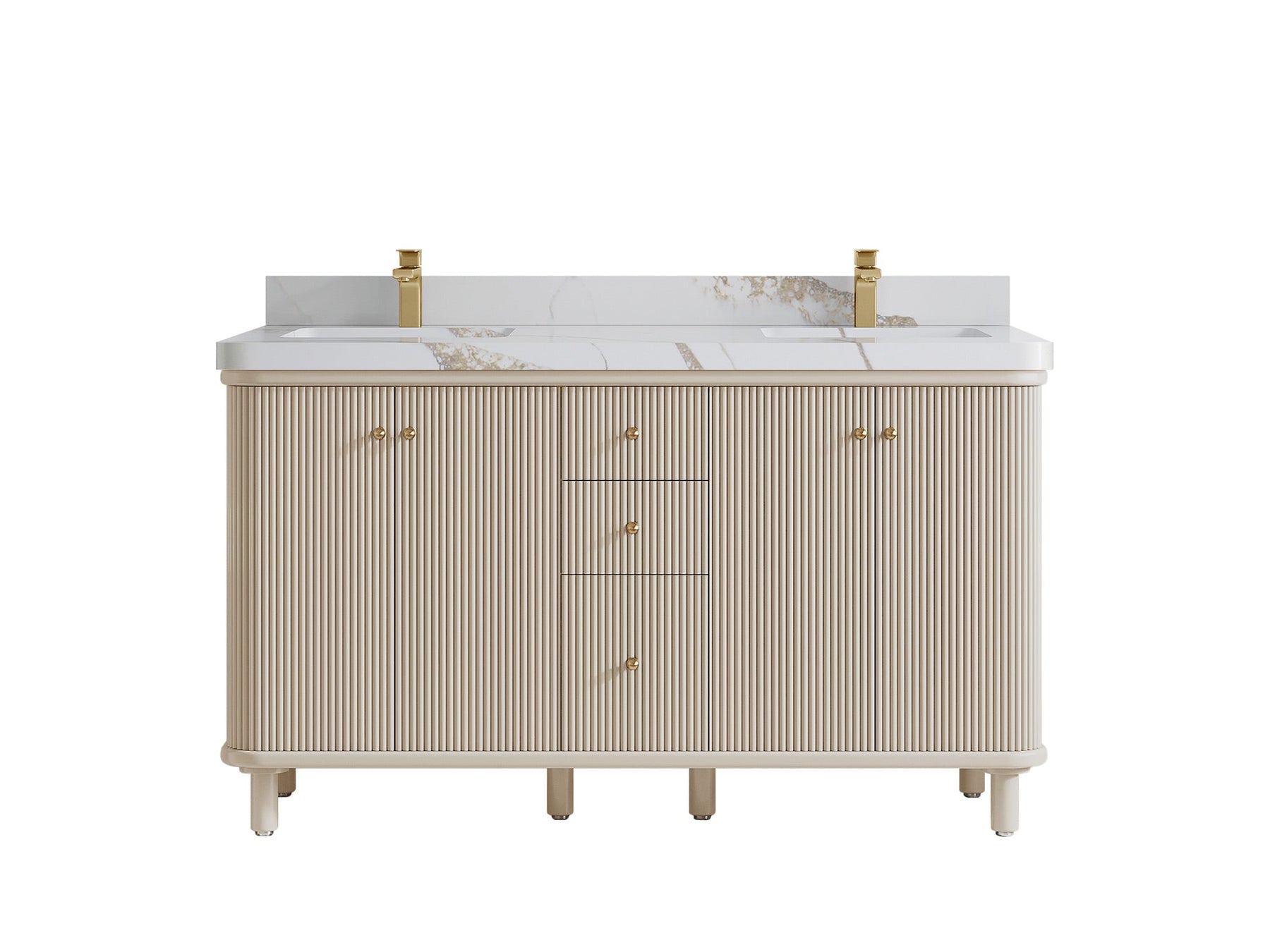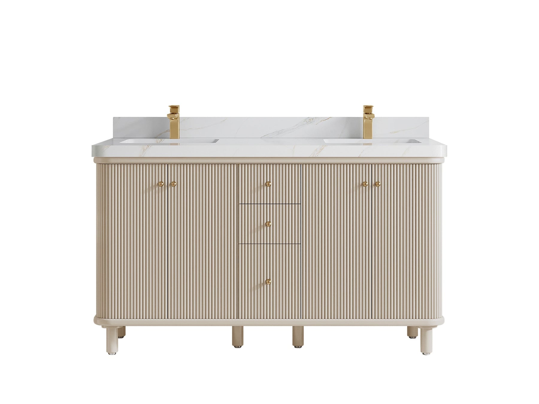 Vanity Countertops options: For Calacatta Laza Quartz, Empira White Quartz, Pure White Quartz, Palissandro Quartz, Calacatta Nuvo Quartz, Carrara Quartz, Carrara Marble, Calacatta Gold Quartz, Calacatta Sienna Quartz we have Straight - Mitered Edge option.