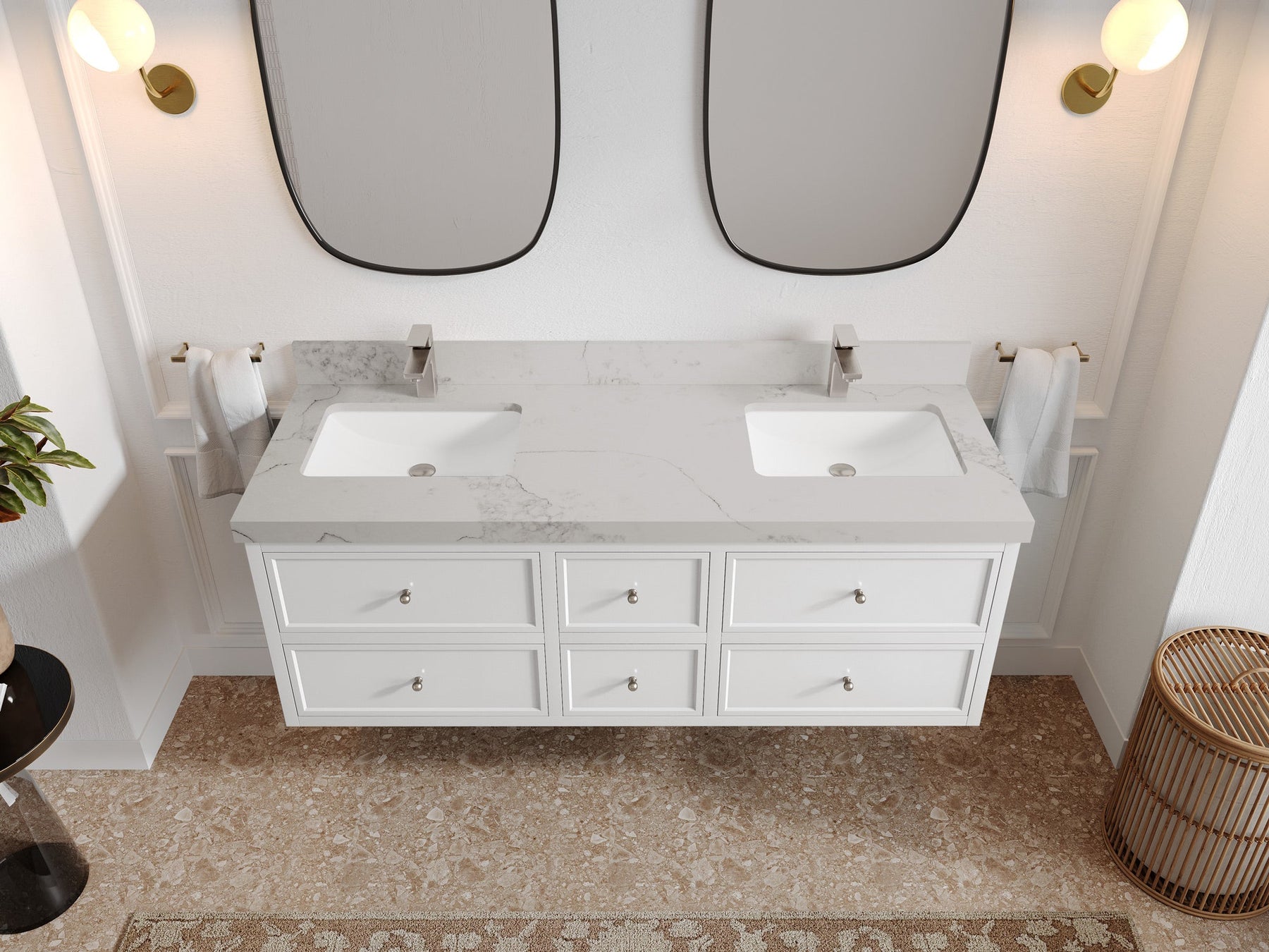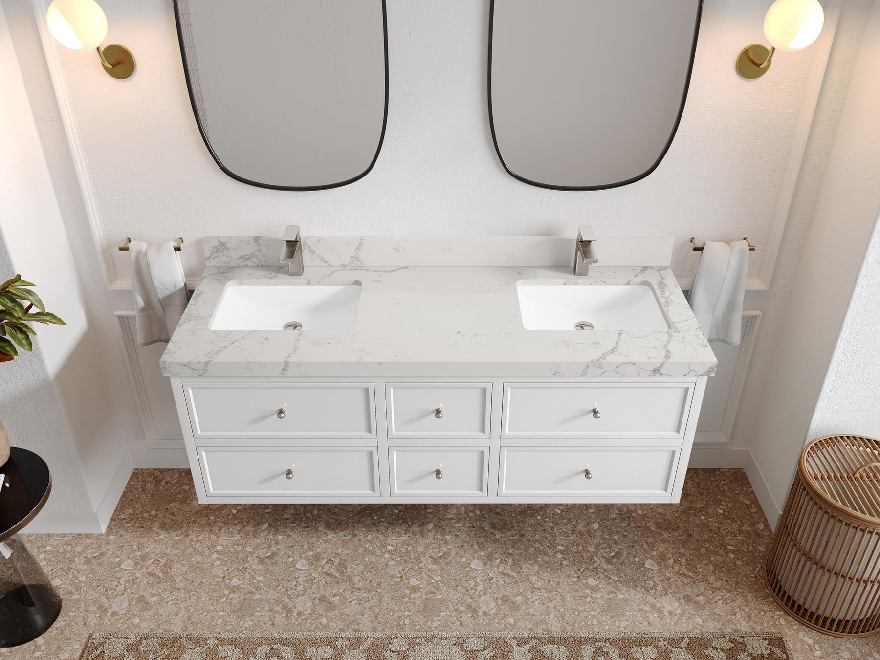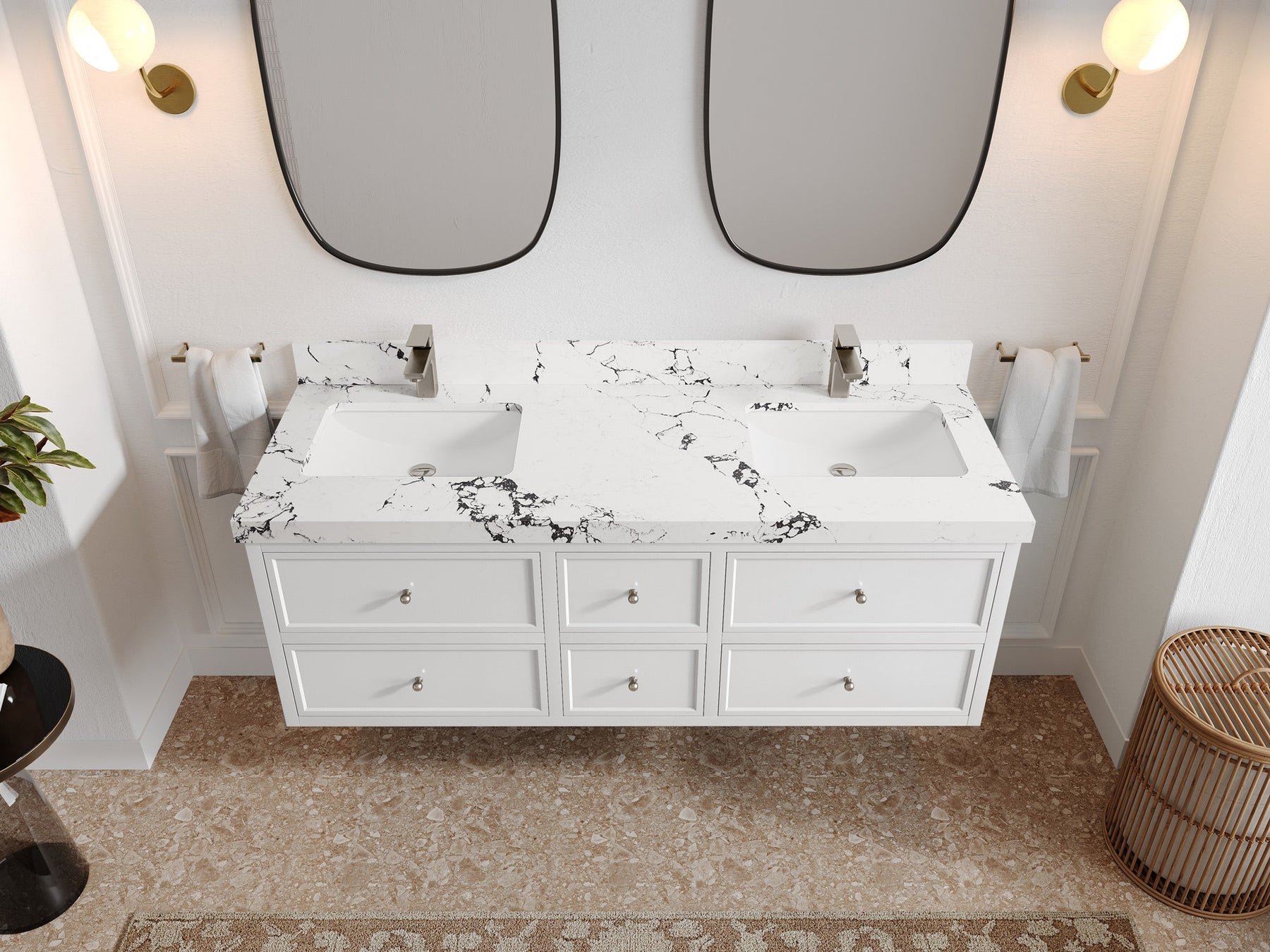 Faucet Hole(S): Comes with Single Faucet, 8 (in.) Widespread Faucet, Wall mount Faucets - Only Available for White Quartz and Carrara Quartz. (PLEASE ADD THIS CONFIGURATION UNDER COUNTERTOPS SECTION )